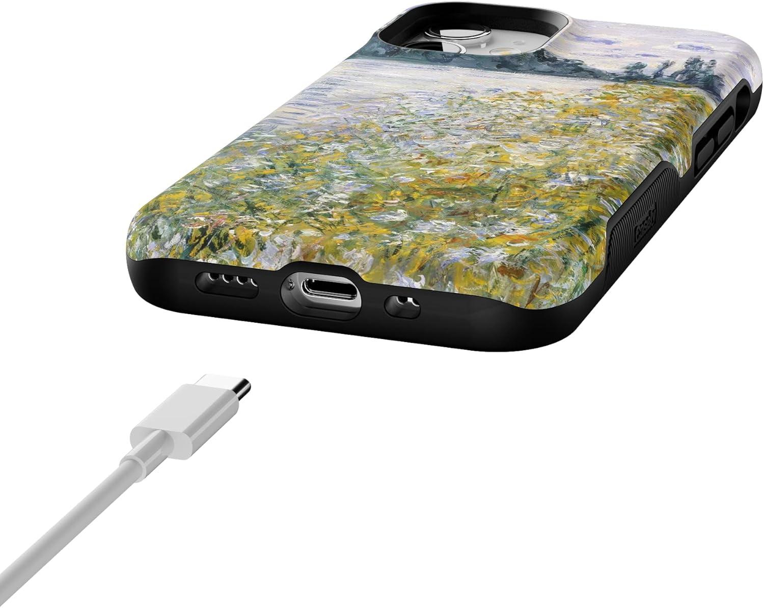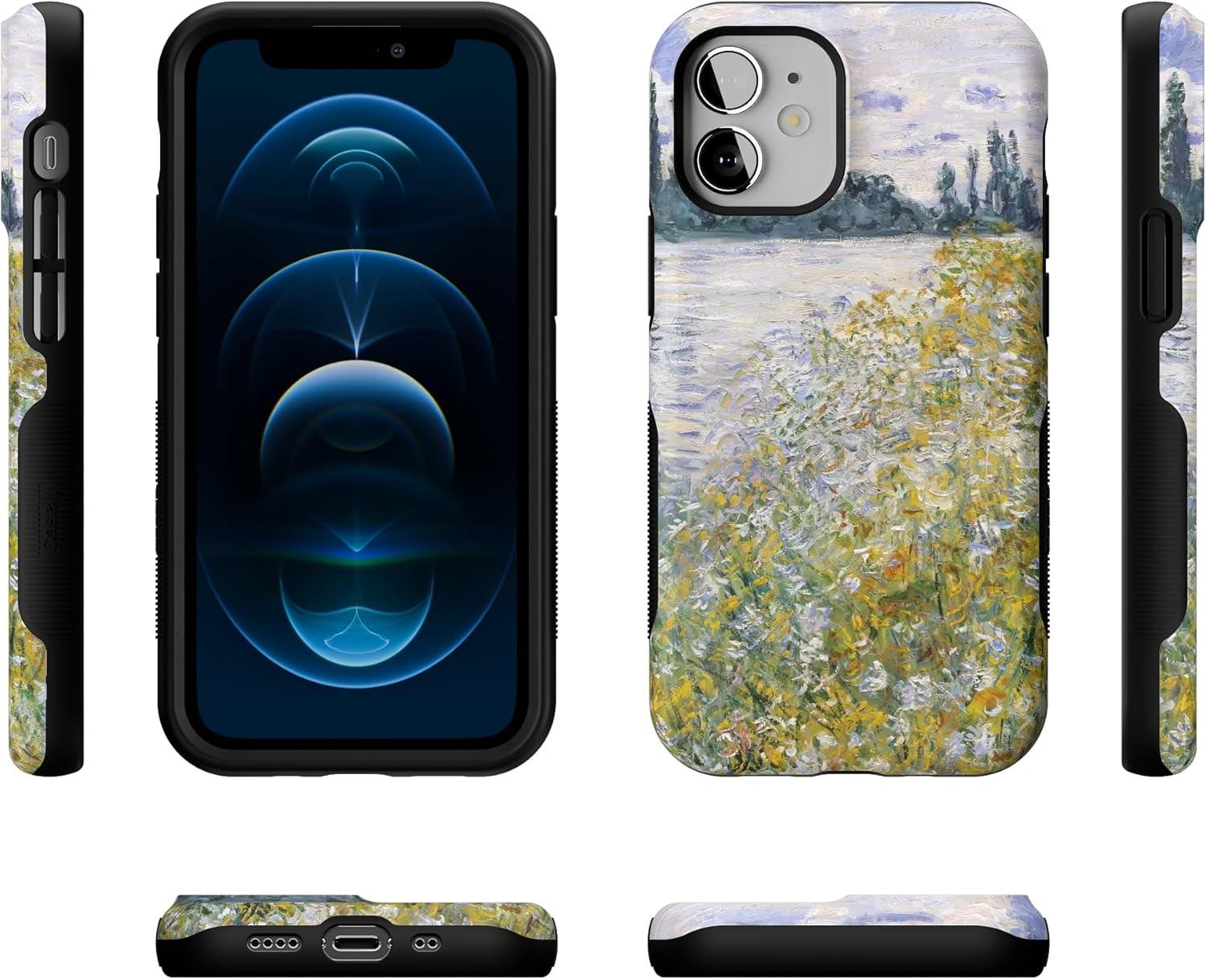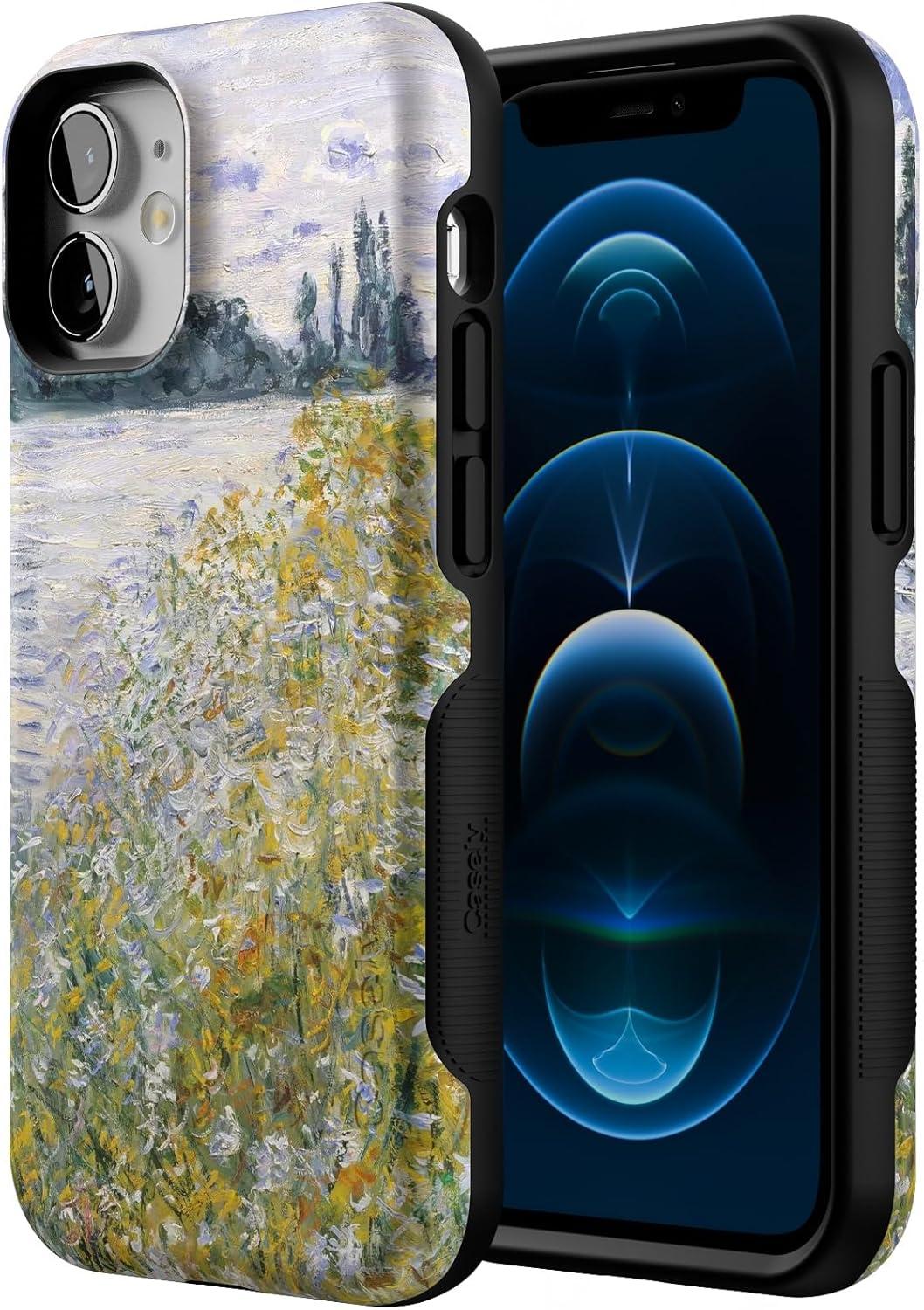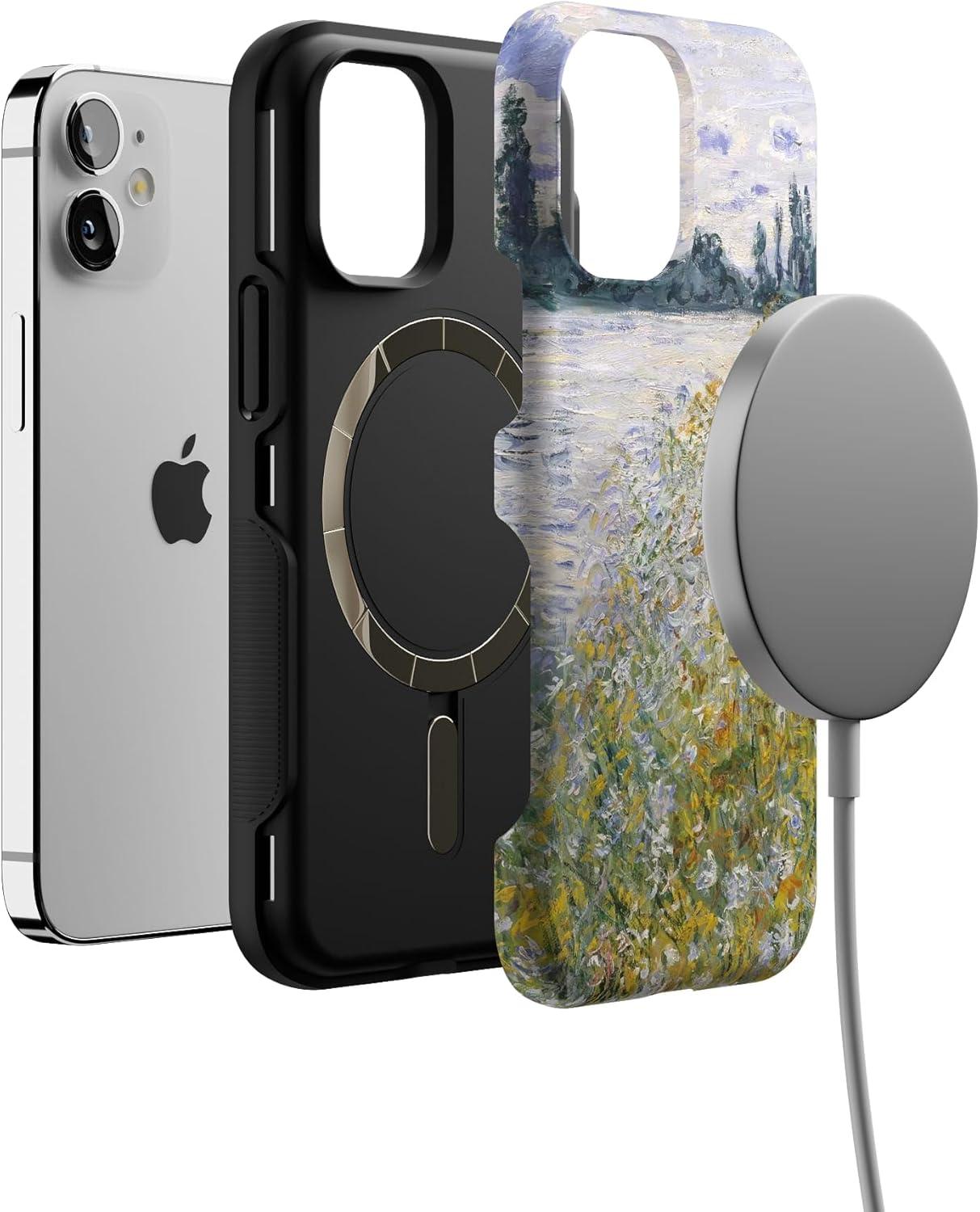 Casely iPhone 12 Mini Case | Dark Fantasy | Contrast Floral | Bold Protective Design | Compatible with MagSafe(Monet’s Summer Landscape | The Met Museum)