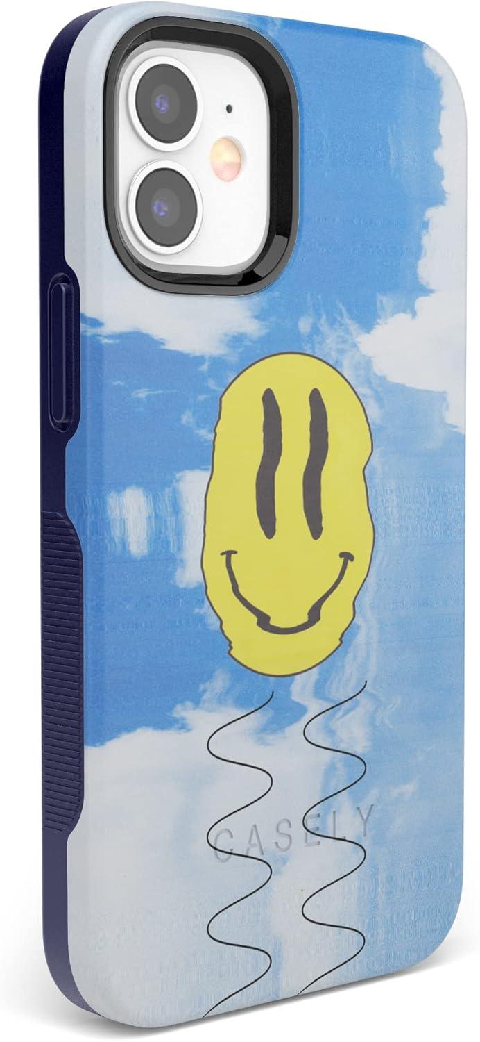 Casely iPhone 12 Mini Case | Dark Fantasy | Contrast Floral | Bold Protective Design | Compatible with MagSafe(On Cloud Nine | Glitch Smiley Face)