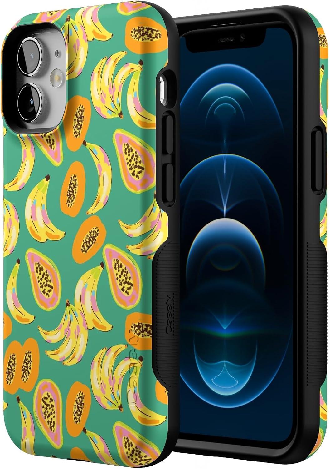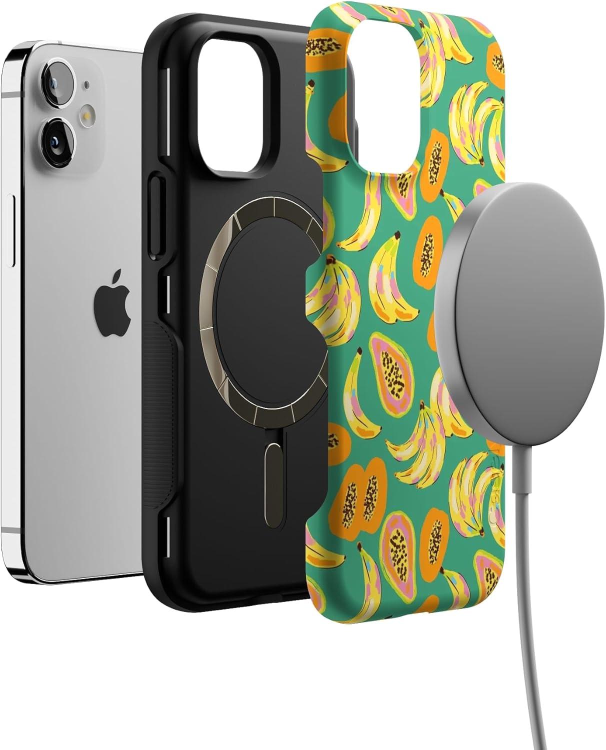Casely iPhone 12 Mini Case | Dark Fantasy | Contrast Floral | Bold Protective Design | Compatible with MagSafe(Papaya Palms | Dippin’ Daisy’s Tropical Vacation)