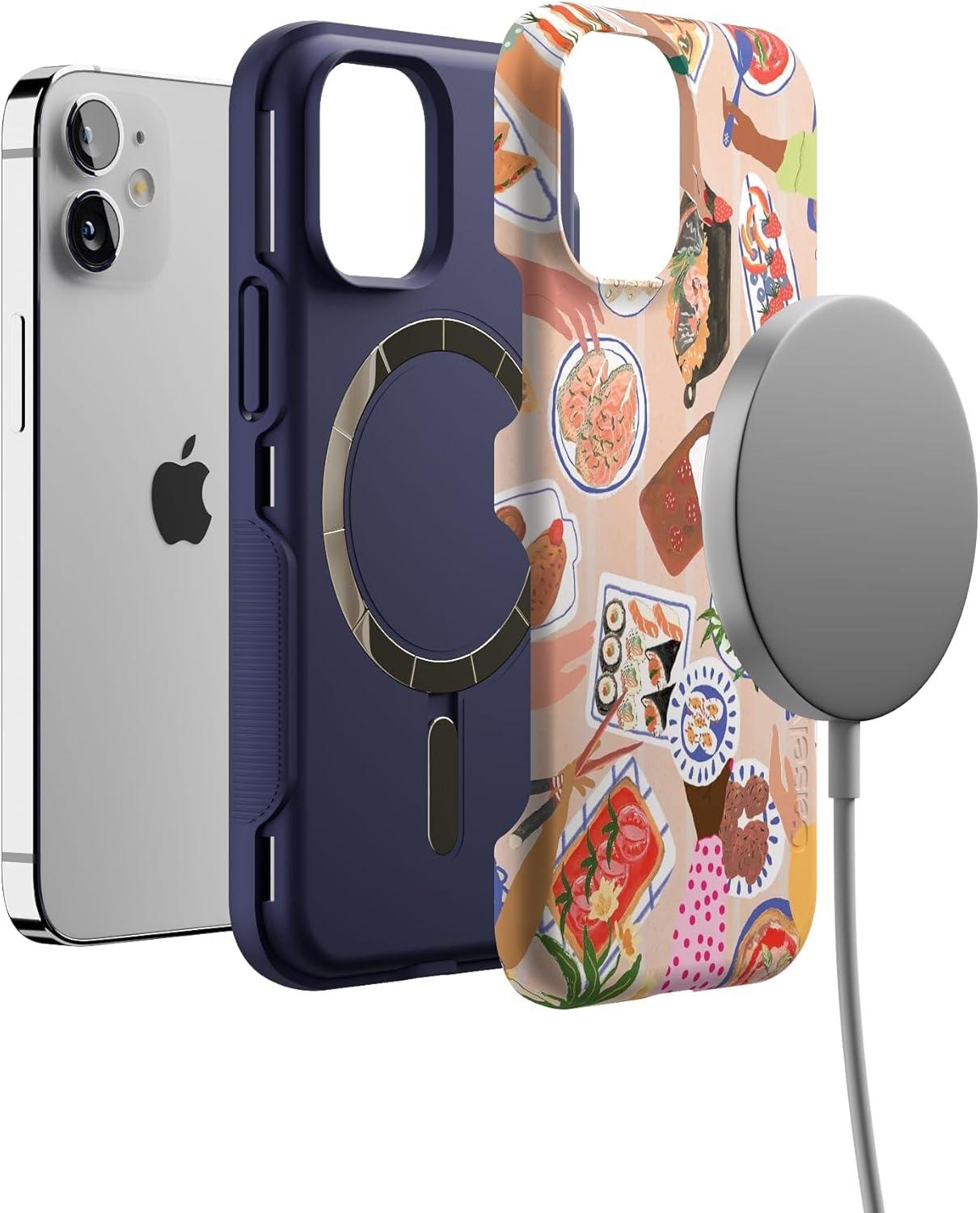 Casely iPhone 12 Mini Case | Dark Fantasy | Contrast Floral | Bold Protective Design | Compatible with MagSafe(Picnic Party | Painted Collage)