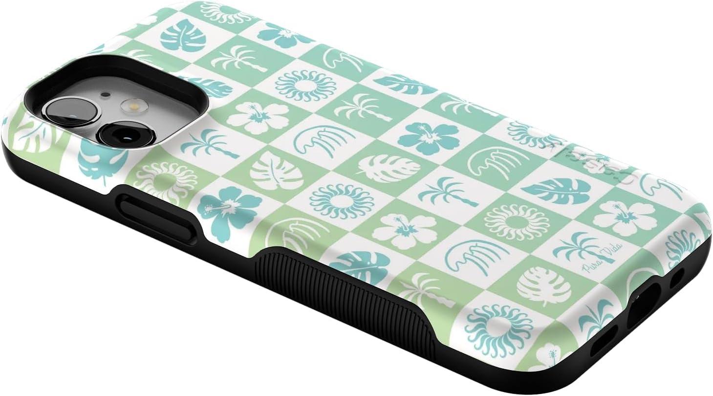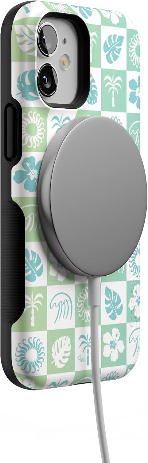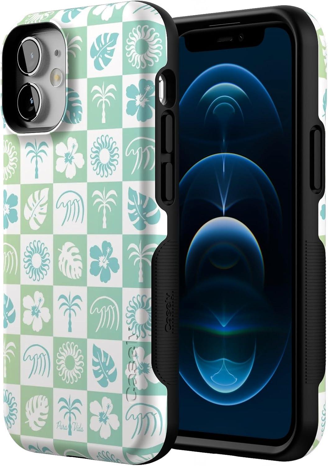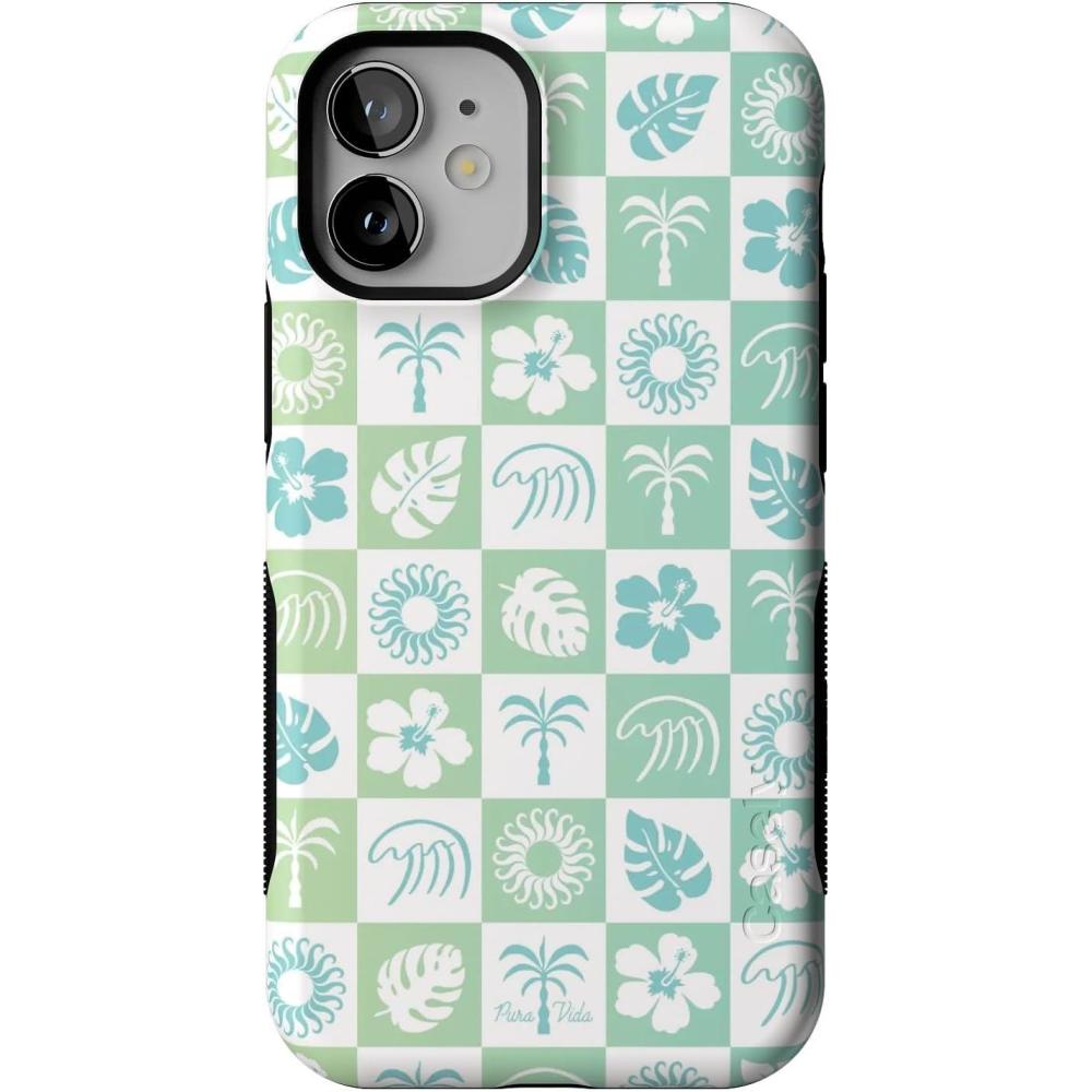 Casely iPhone 12 Mini Case | Dark Fantasy | Contrast Floral | Bold Protective Design | Compatible with MagSafe(Pura Vida | Coastal Checkers)