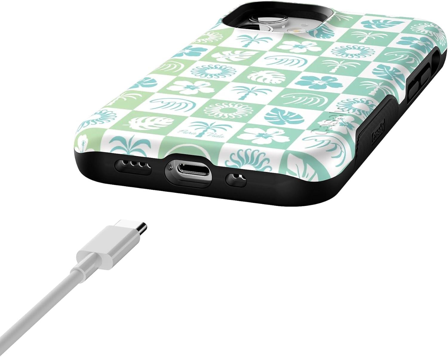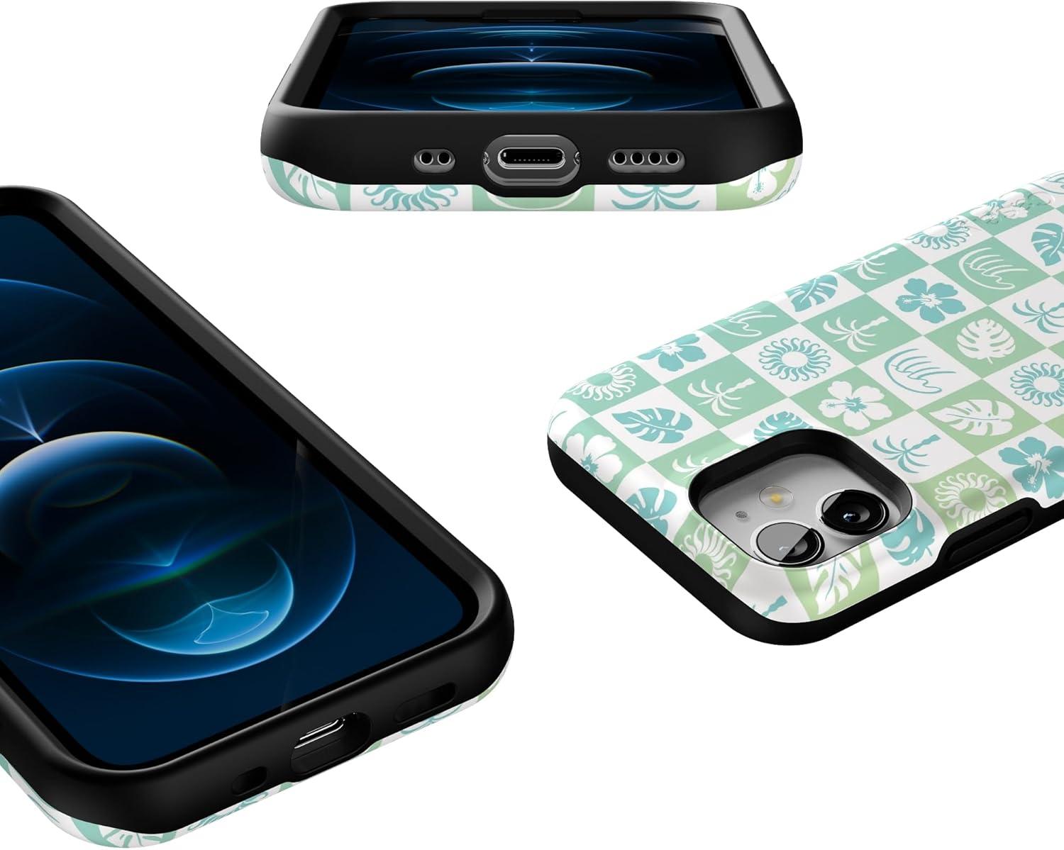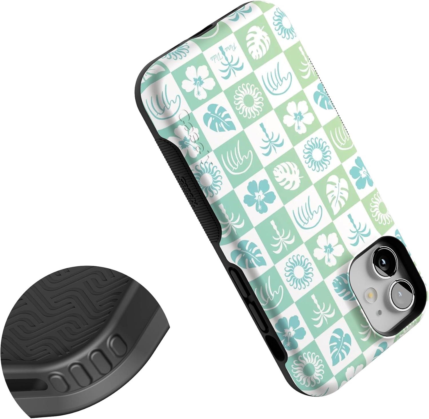 Casely iPhone 12 Mini Case | Dark Fantasy | Contrast Floral | Bold Protective Design | Compatible with MagSafe(Pura Vida | Coastal Checkers)