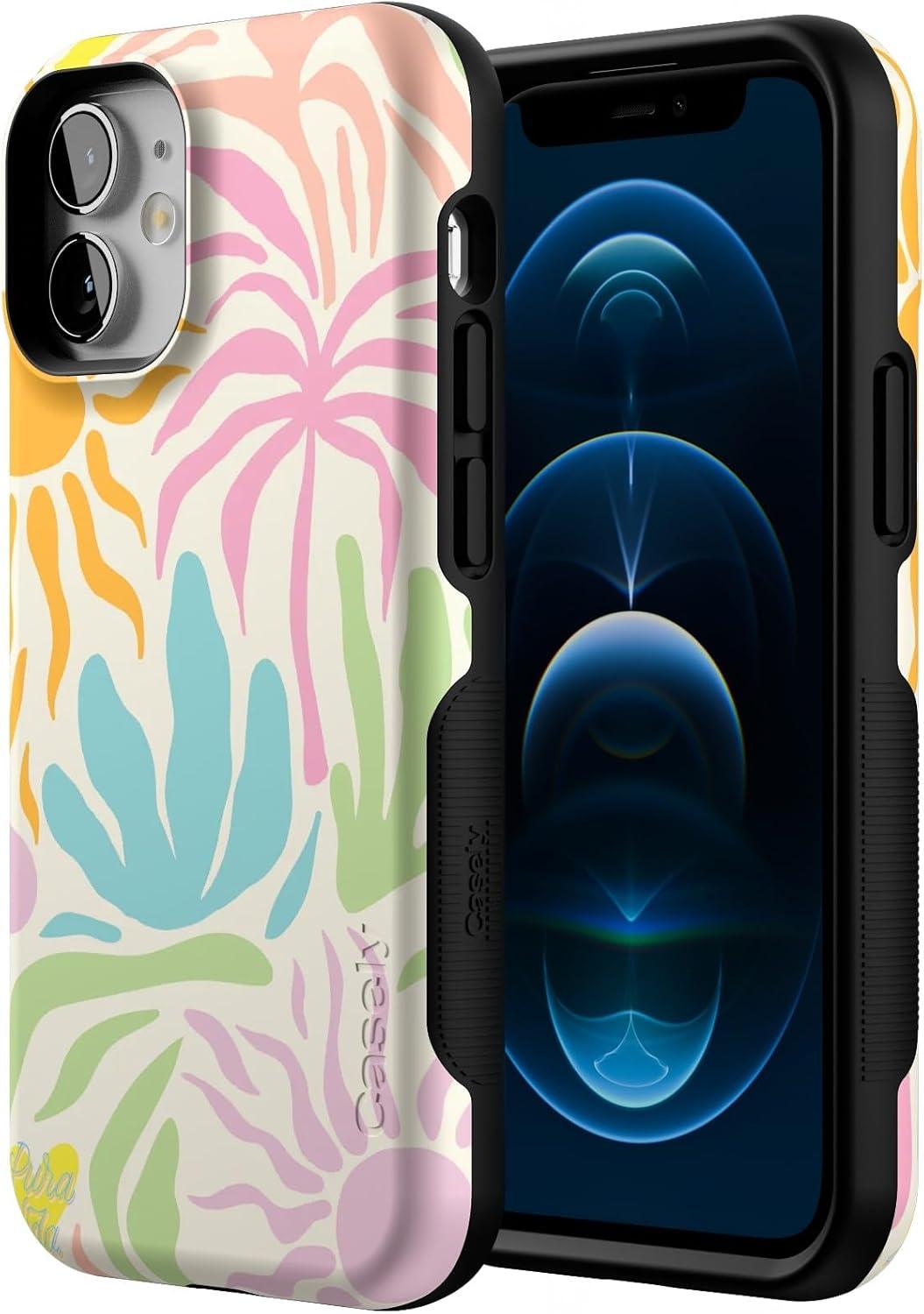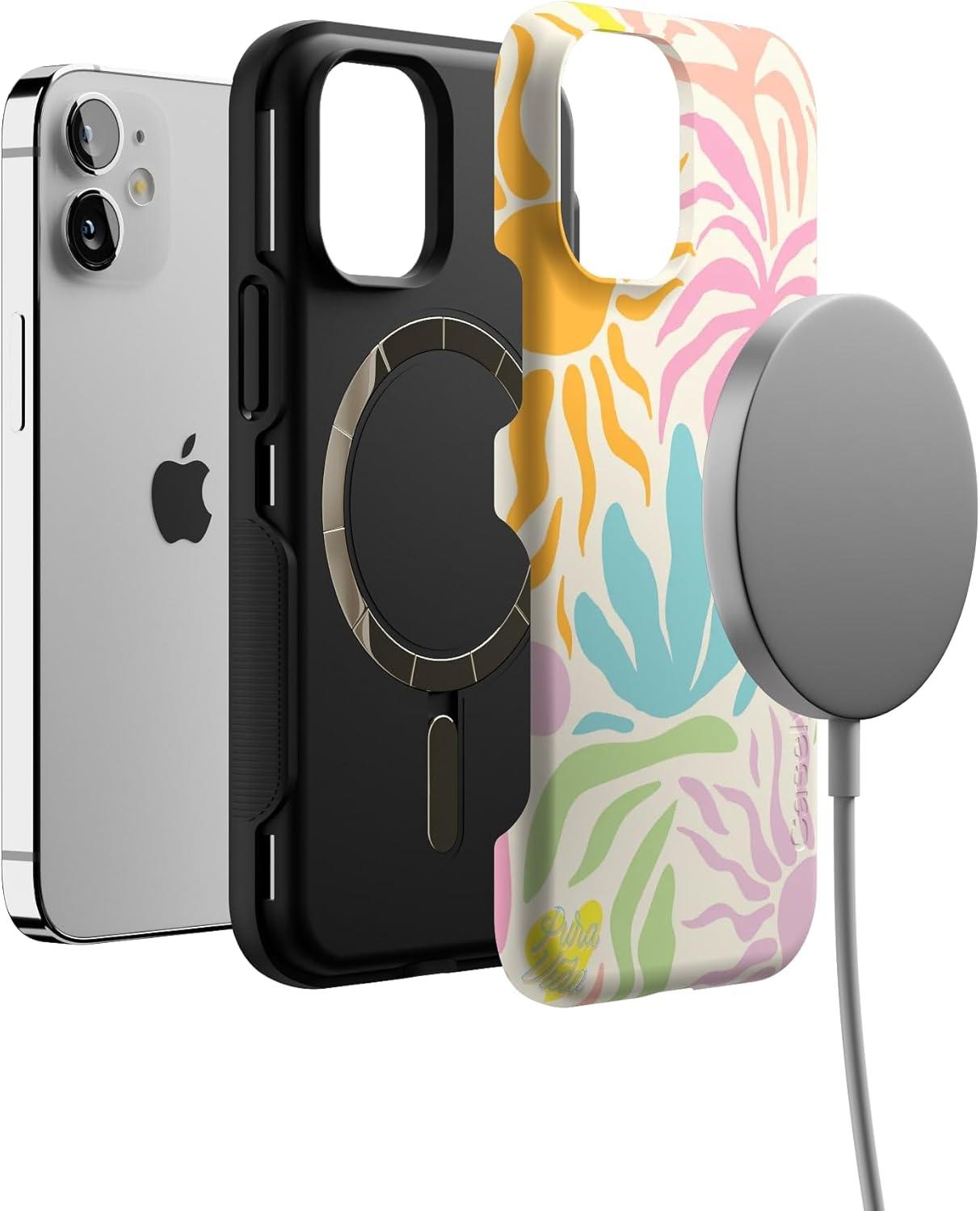 Casely iPhone 12 Mini Case | Dark Fantasy | Contrast Floral | Bold Protective Design | Compatible with MagSafe(Pura Vida | Oasis)