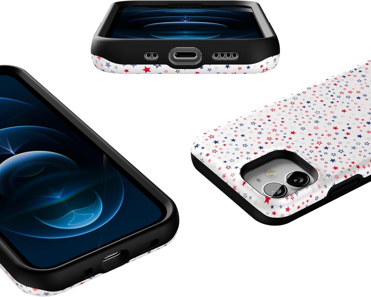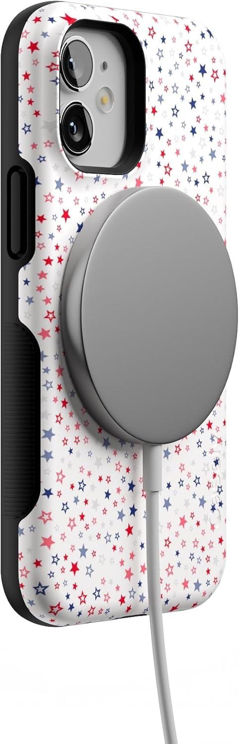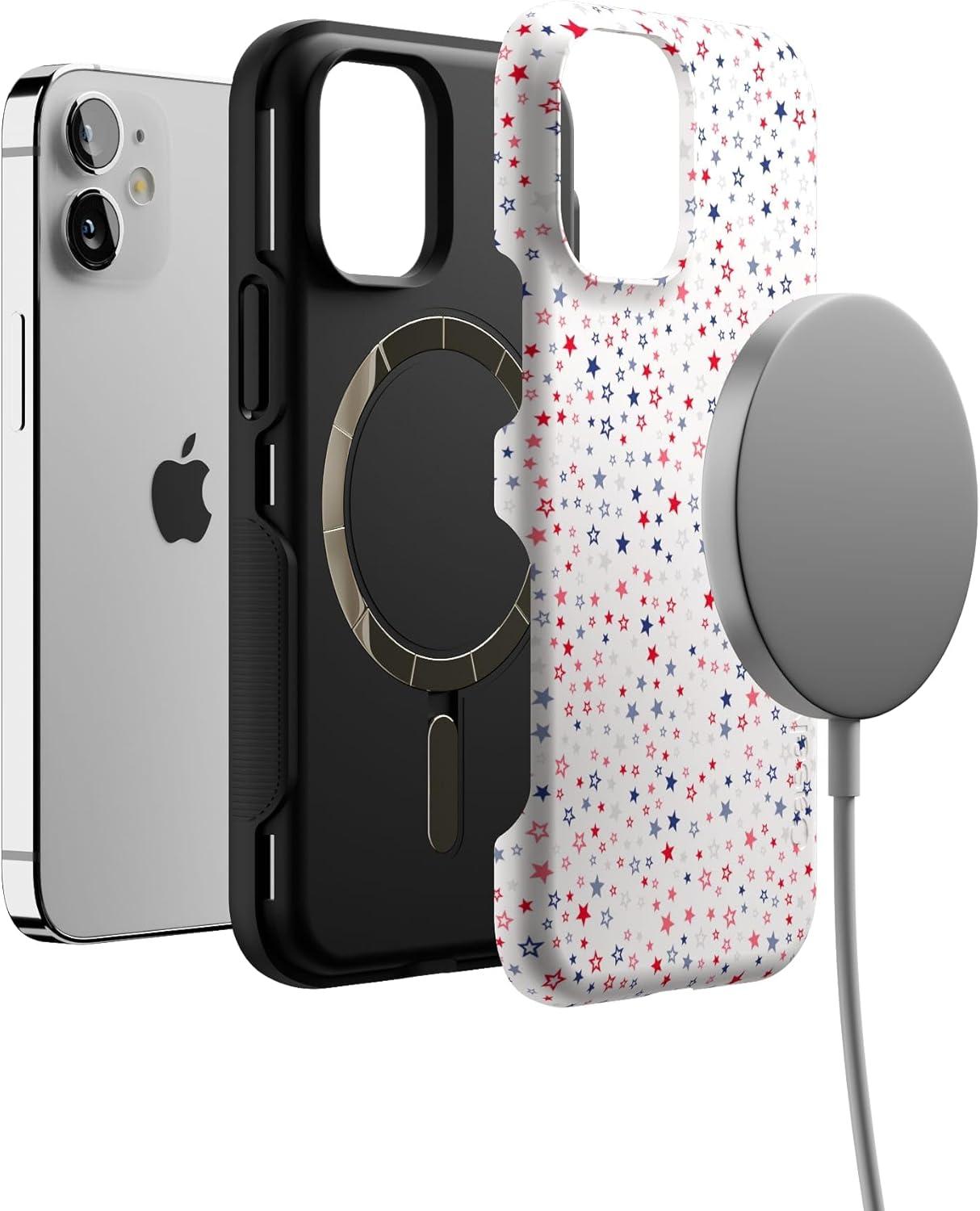 Casely iPhone 12 Mini Case | Dark Fantasy | Contrast Floral | Bold Protective Design | Compatible with MagSafe(Seeing Stars | Red White & Blue)