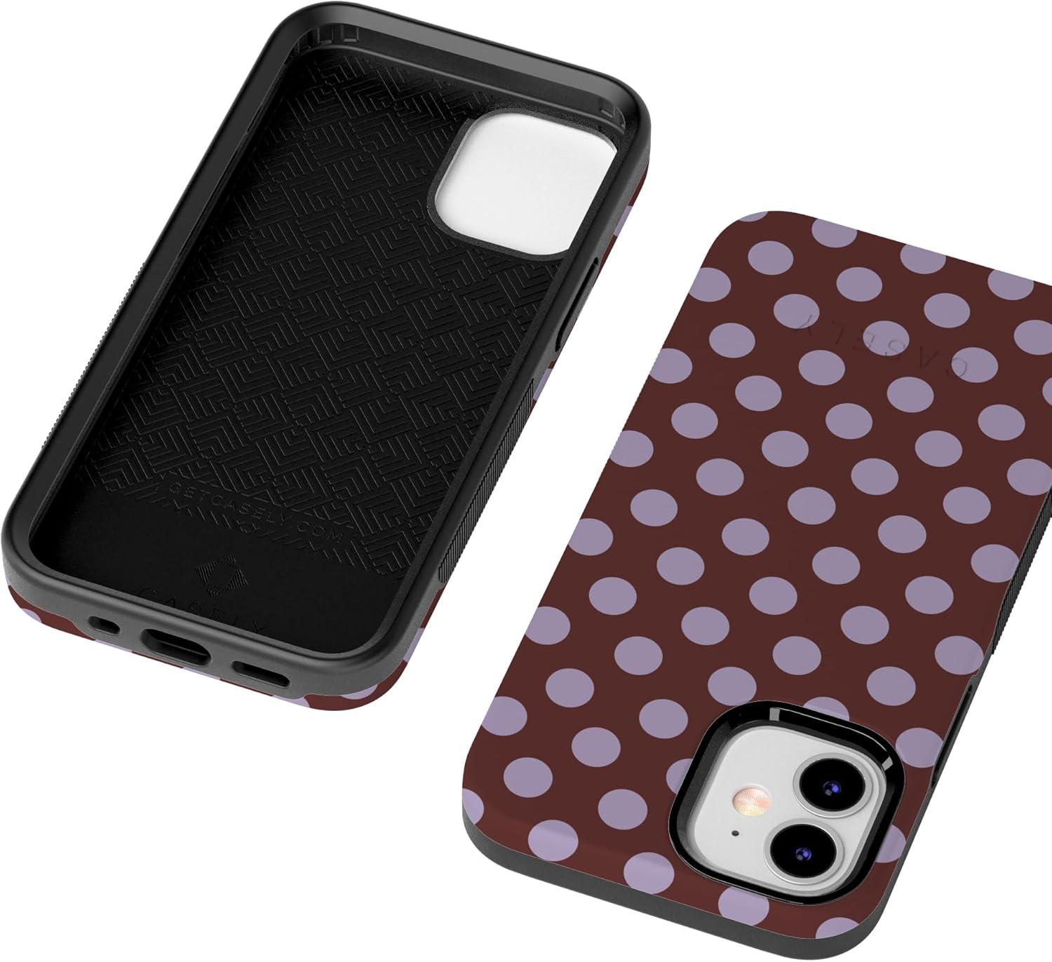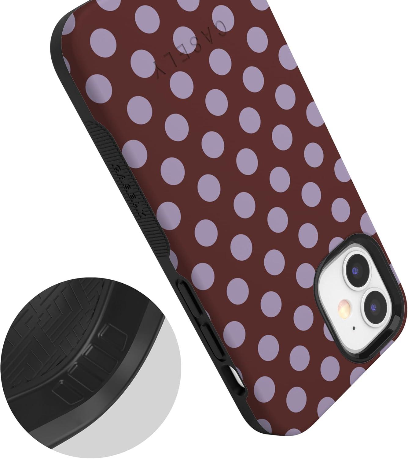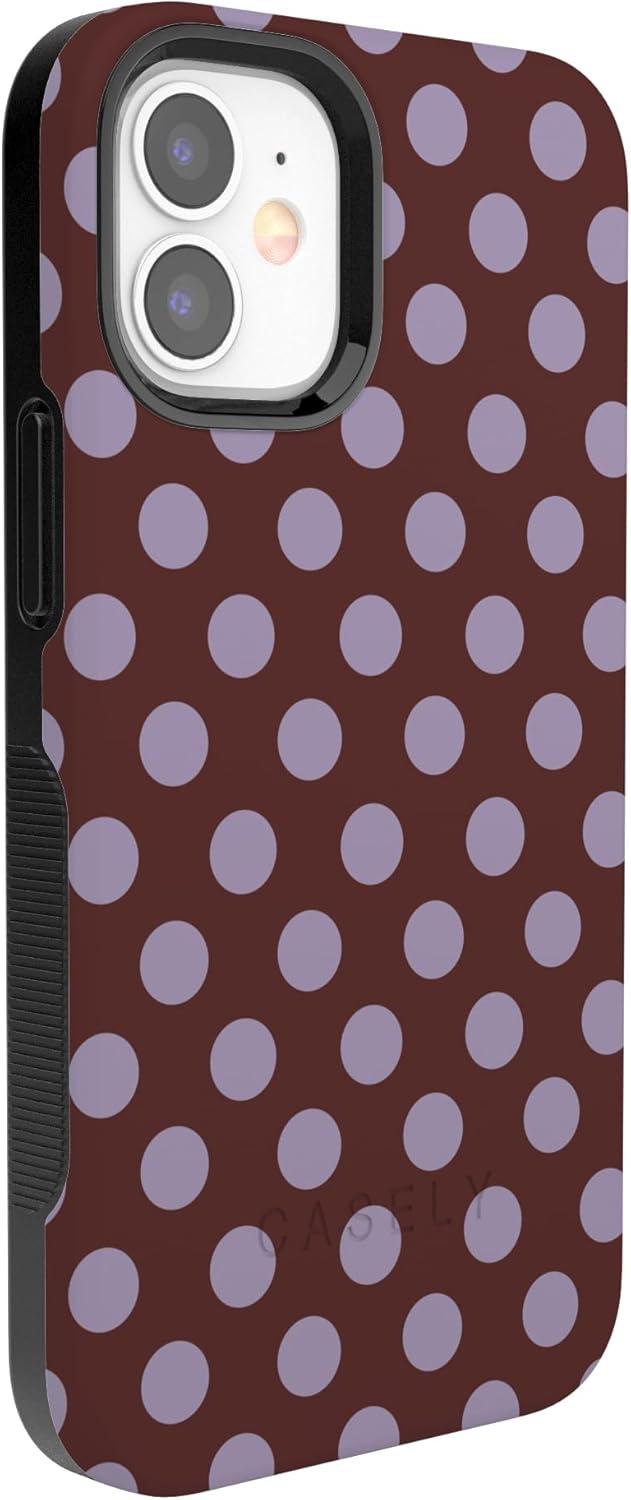 Casely iPhone 12 Mini Case | Dark Fantasy | Contrast Floral | Bold Protective Design | Compatible with MagSafe(Spotted in SoHo | Burgundy Polka Dot)