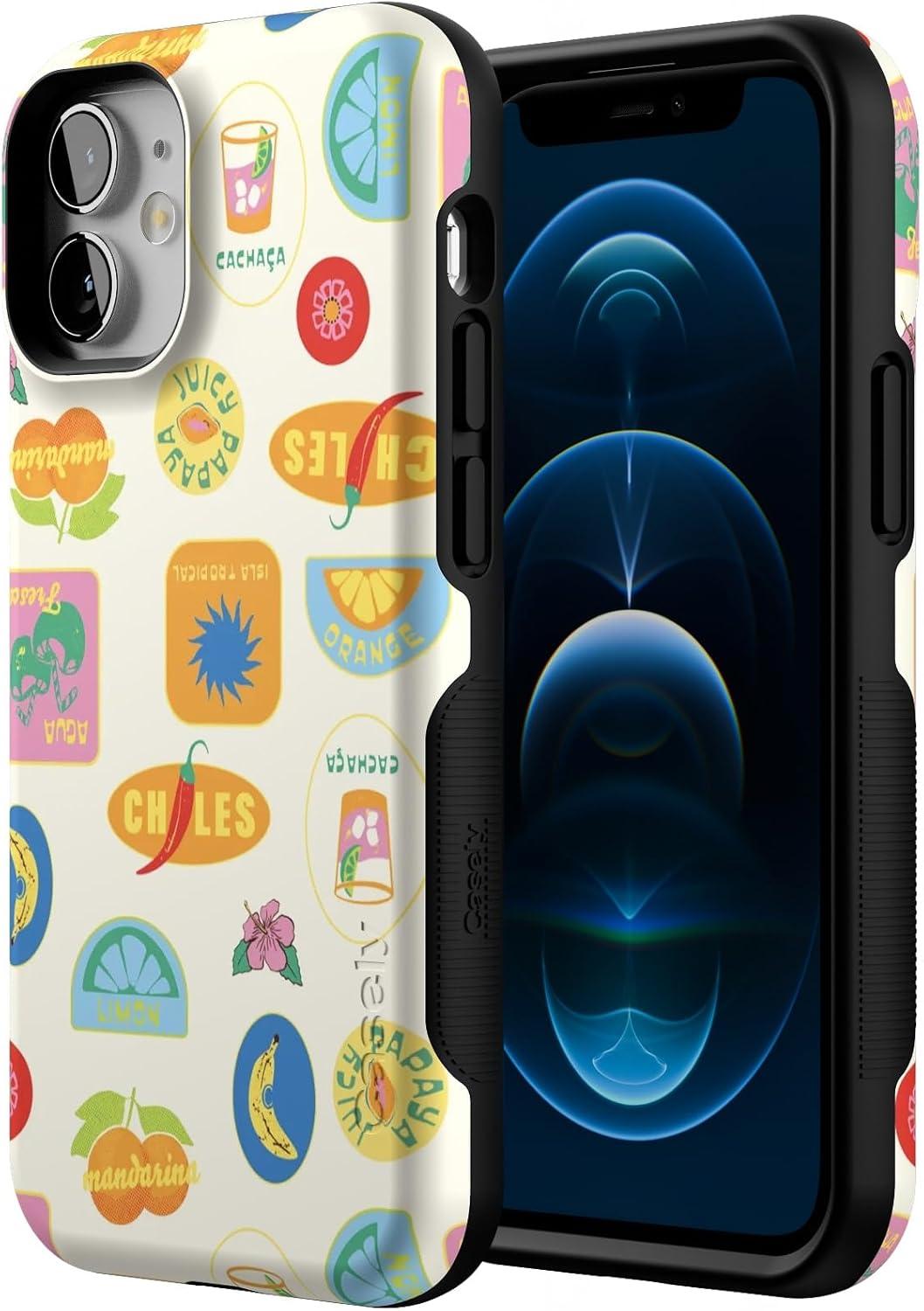Casely iPhone 12 Mini Case | Dark Fantasy | Contrast Floral | Bold Protective Design | Compatible with MagSafe(Stuck in Paradise | Dippin’ Daisy’s Tropical Vaca)