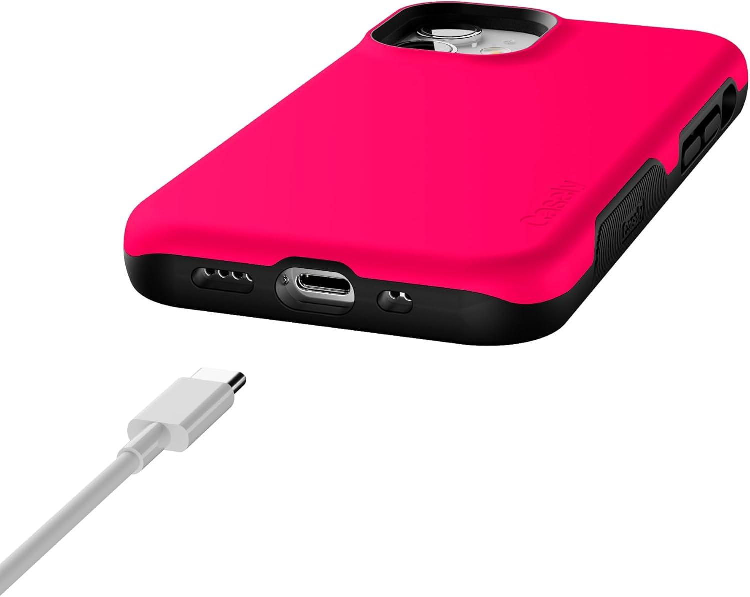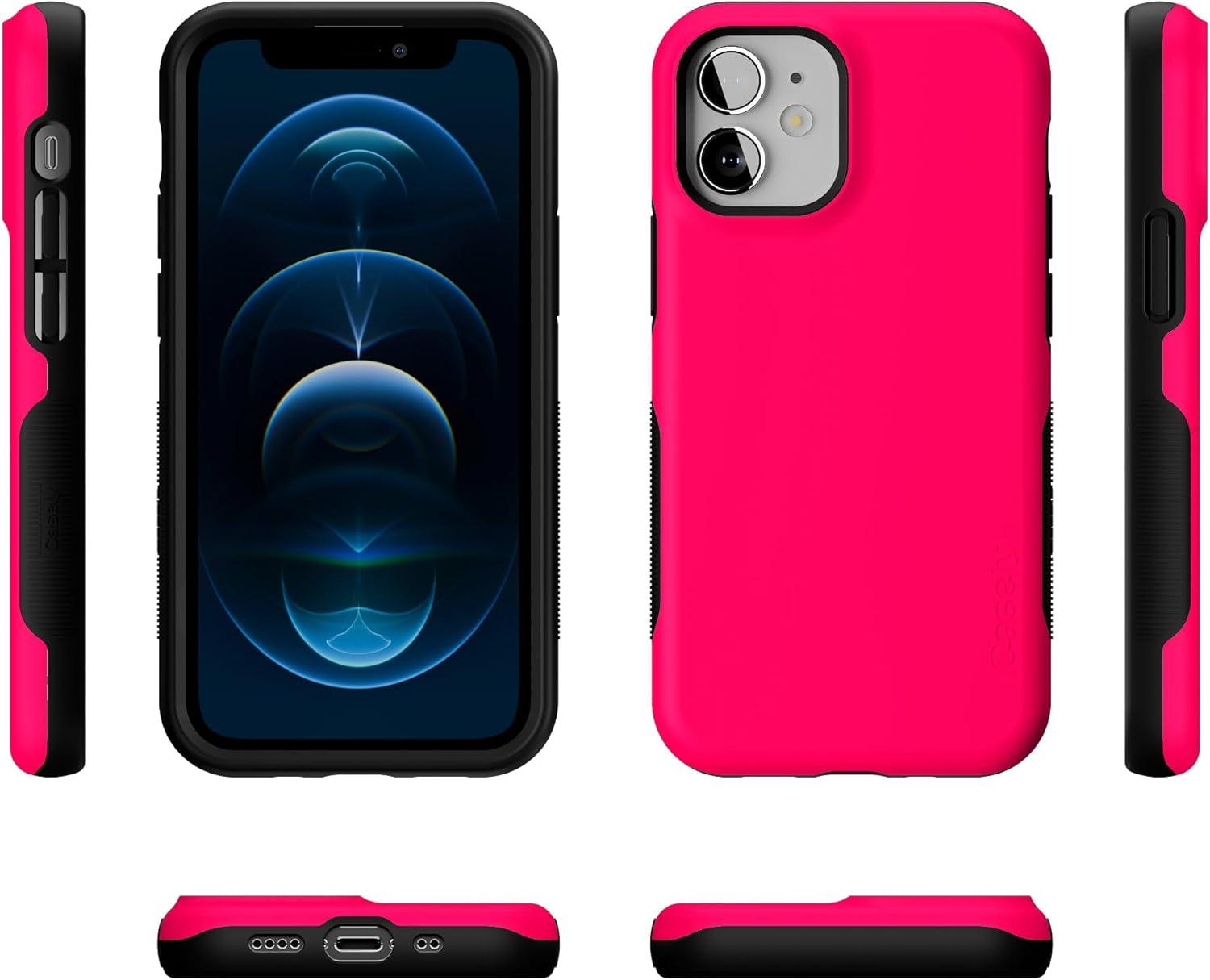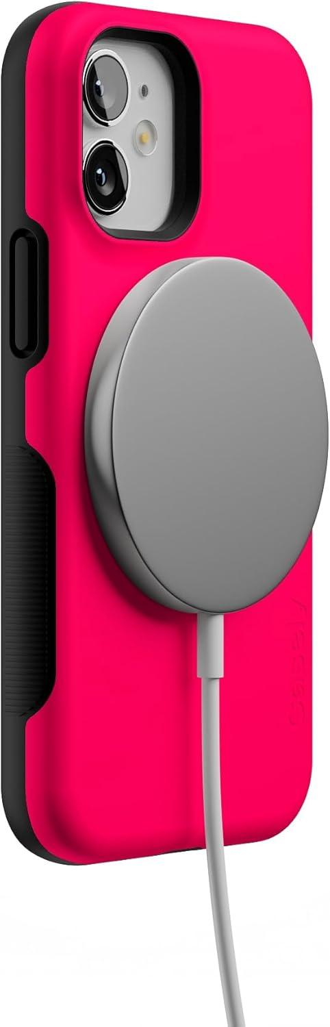 Casely iPhone 12 Mini Case | Dark Fantasy | Contrast Floral | Bold Protective Design | Compatible with MagSafe(Think Pink | Solid Neon Pink)
