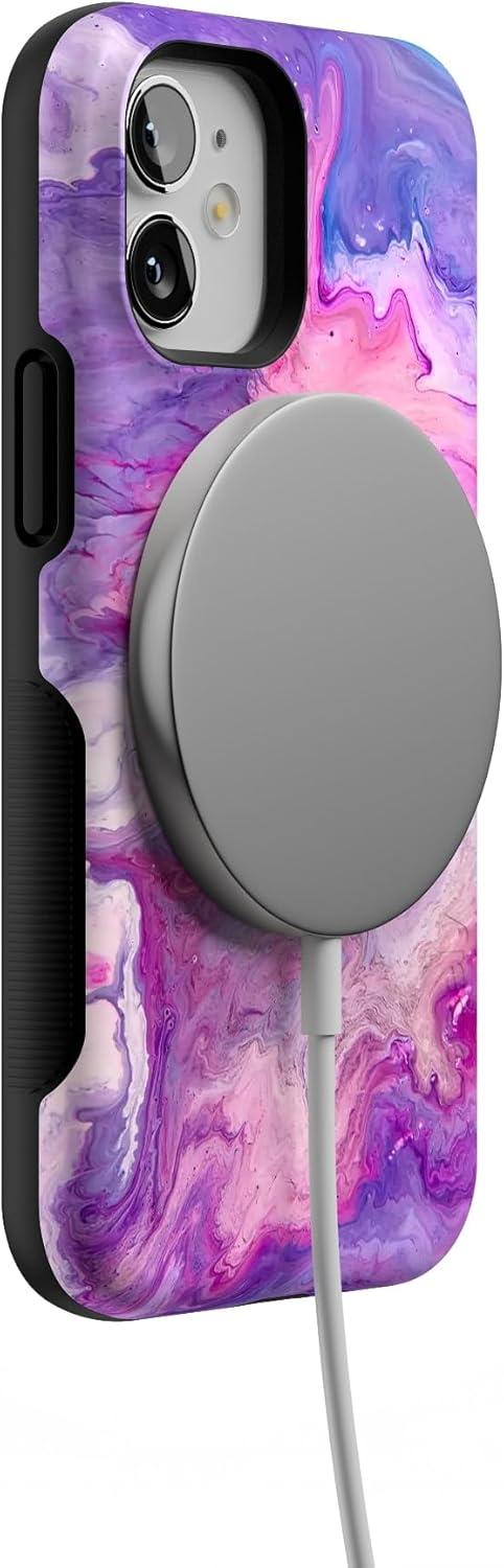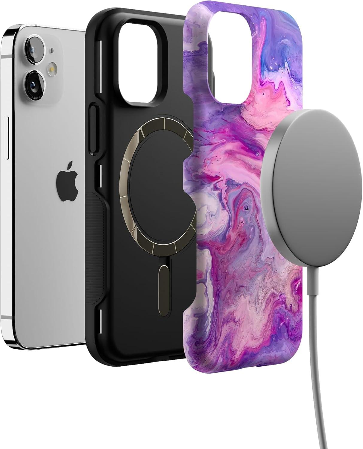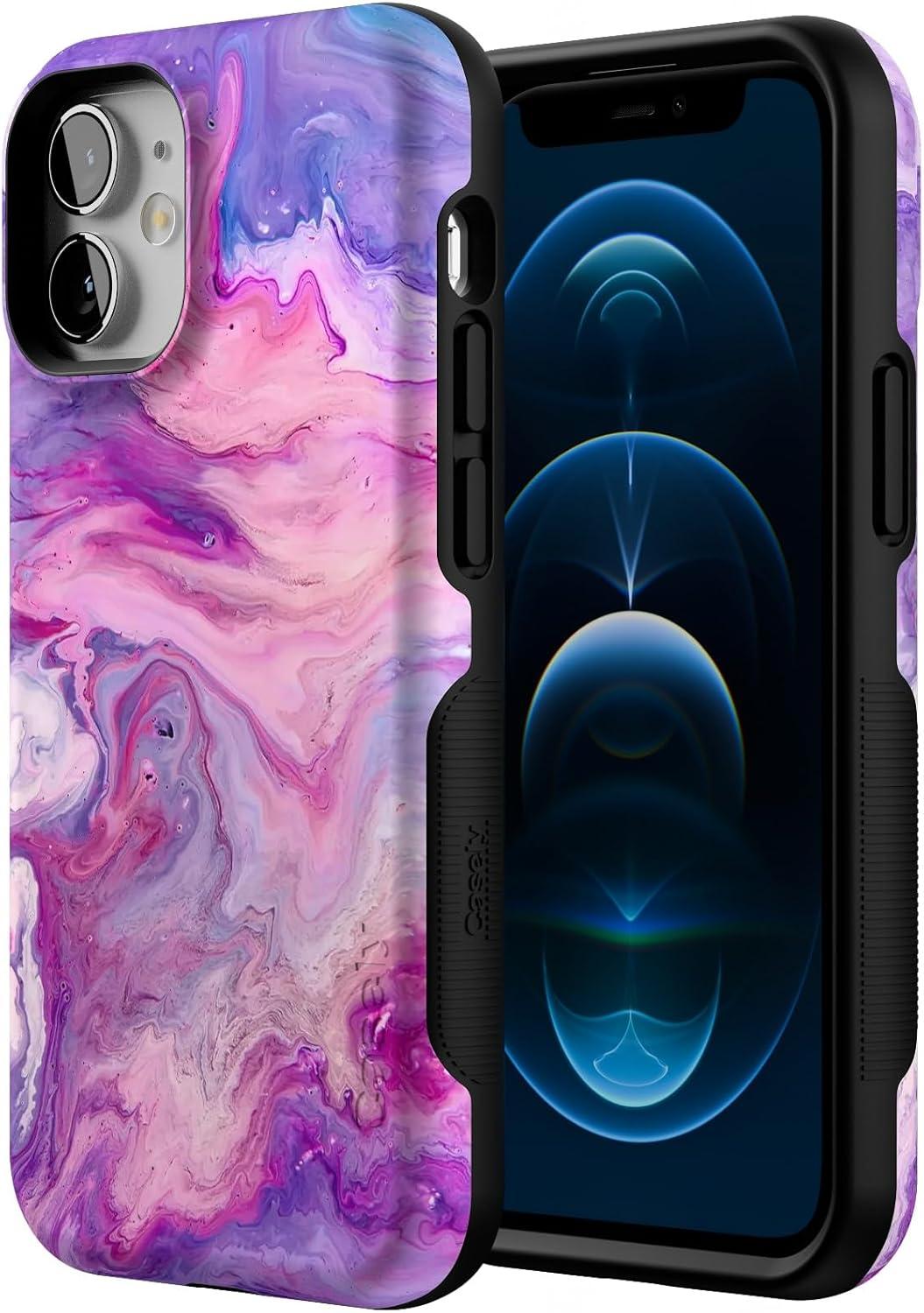 Casely iPhone 12 Mini Case | Dark Fantasy | Contrast Floral | Bold Protective Design | Compatible with MagSafe(Tie Dying Over You | Purple Marble iPhone)