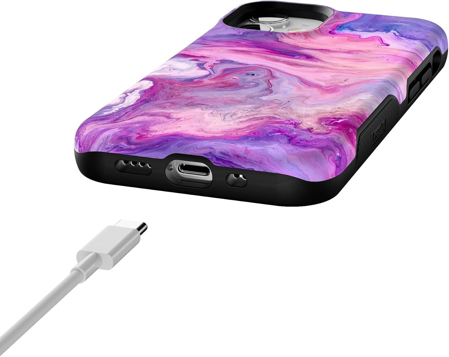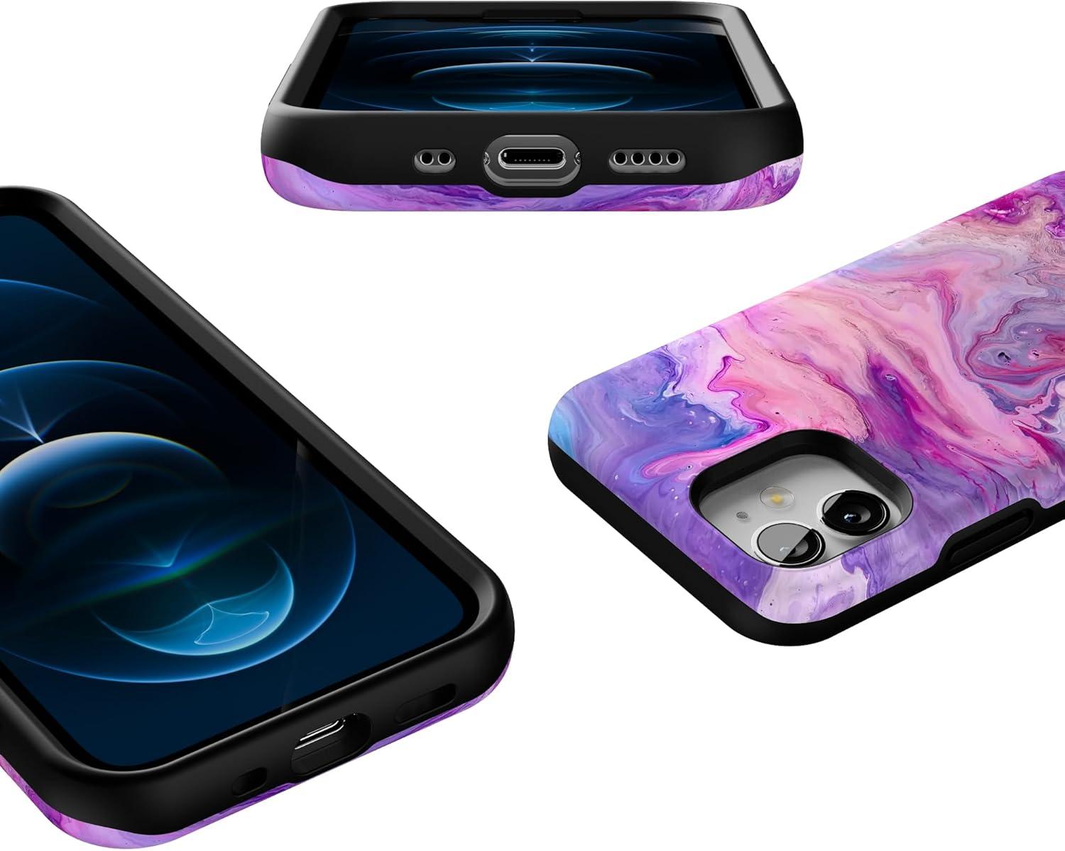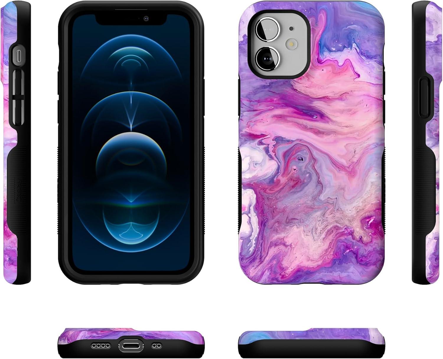 Casely iPhone 12 Mini Case | Dark Fantasy | Contrast Floral | Bold Protective Design | Compatible with MagSafe(Tie Dying Over You | Purple Marble iPhone)