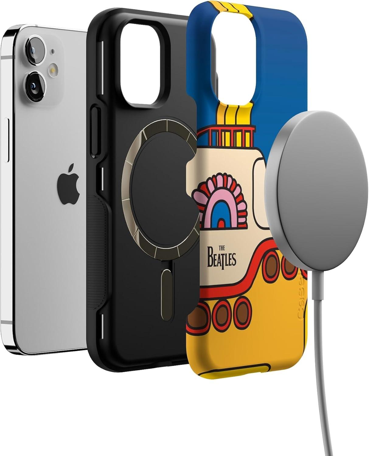 Casely iPhone 12 Mini Case | Dark Fantasy | Contrast Floral | Bold Protective Design | Compatible with MagSafe(Yellow Submarine | Beatles)