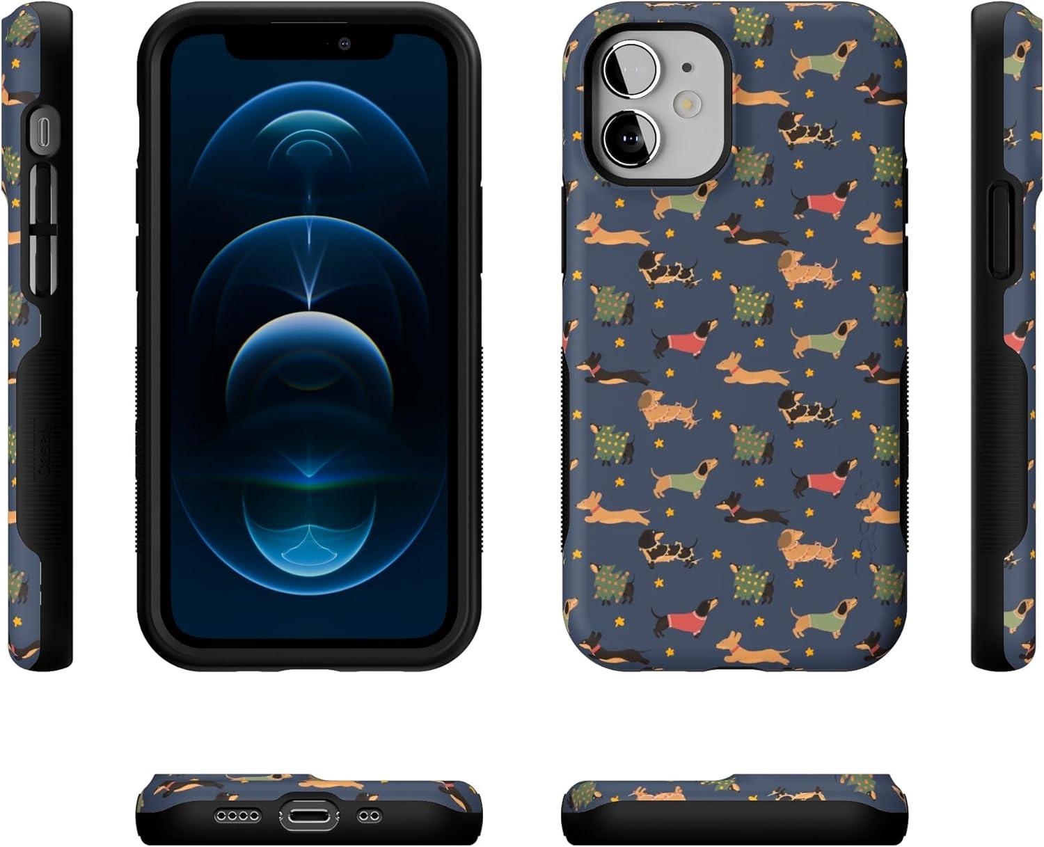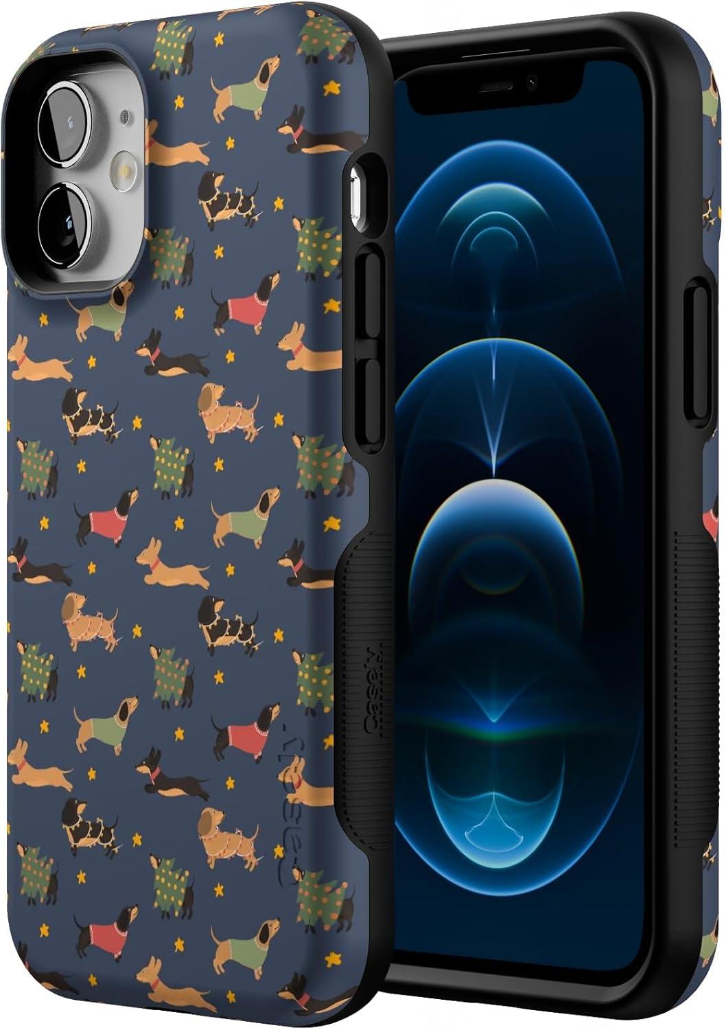 Casely iPhone 12 Mini Case | Dashing Doxies | Dachshund Dog | Compatible with MagSafe | Bold Protective Case Design