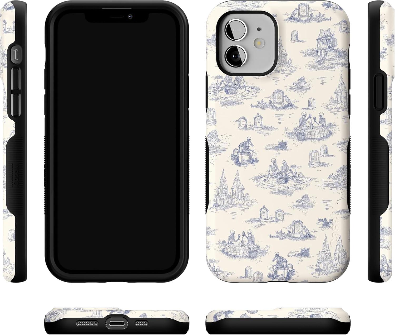 Meet the spookiest toile you’ve ever seen—the Graveyard Gathering | Skeleton Picnic Case. With skeletons lounging in picnic scenes among gravestones, this Halloween phone case is gothic, witty, and stylishly eerie.