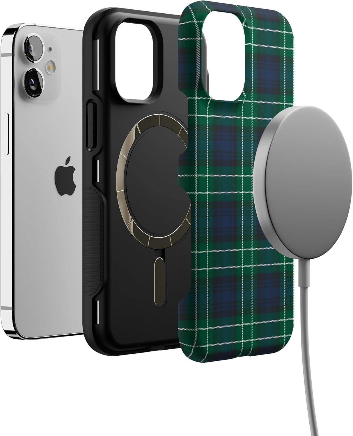 Casely iPhone 12 Mini Case | Spruce | Kitty and Vibe Holiday | Bold Protective Design | MagSafe Compatible Design