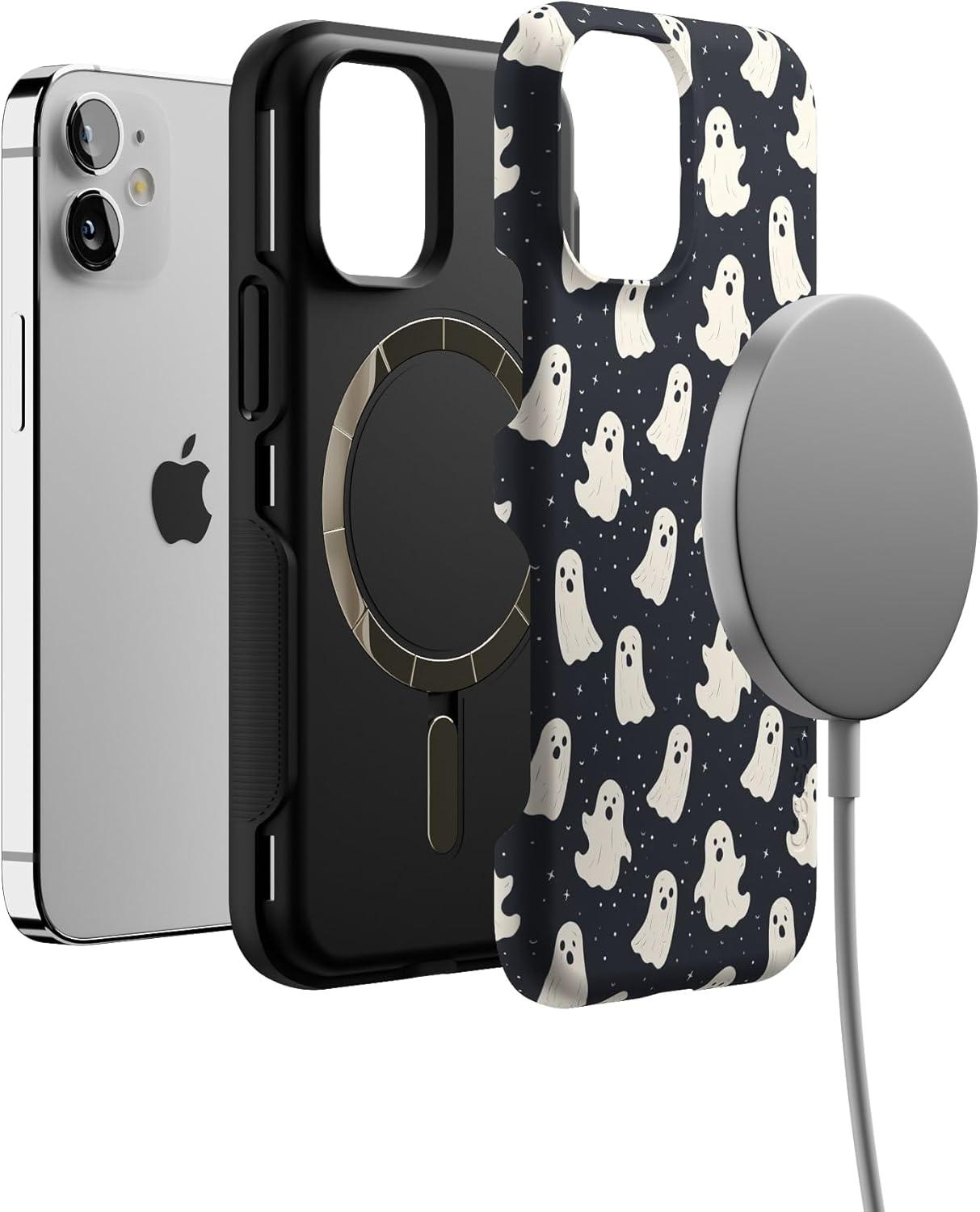 Casely iPhone 12 Mini Case | Viva La Vida | Frida Kahlo Collage | Compatible with MagSafe | Bold Protective Design(All Boos No Bite | Friendly Ghost)