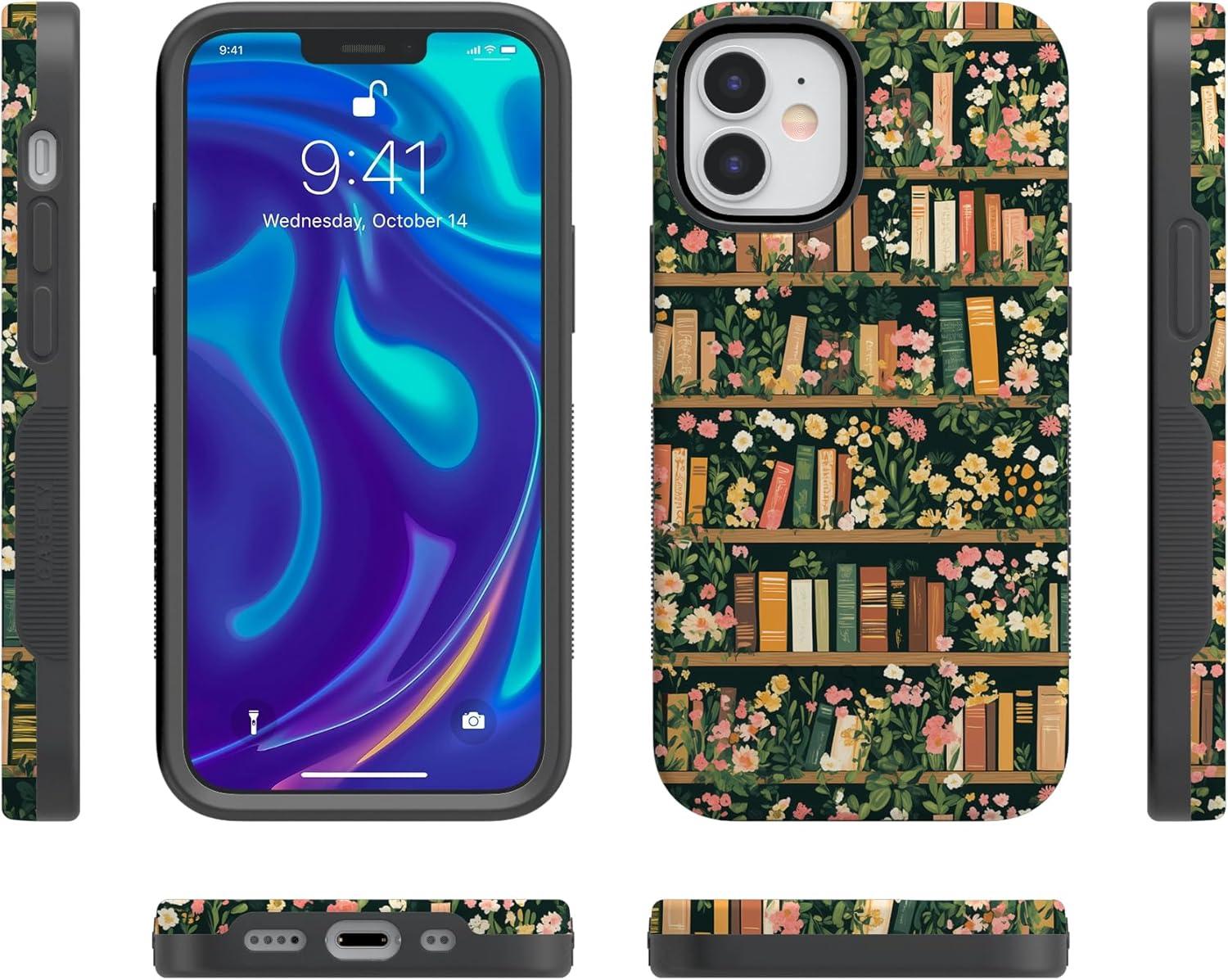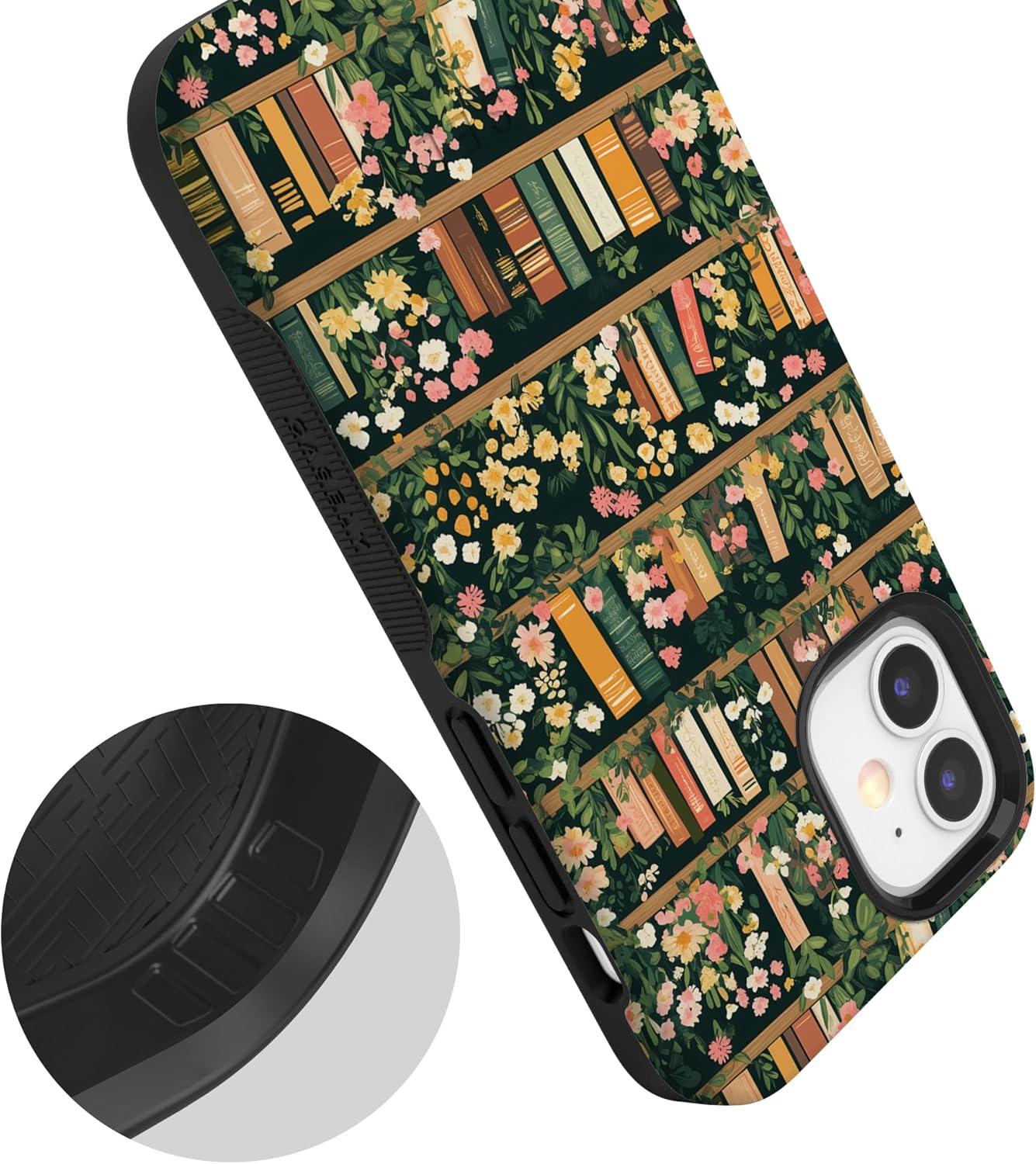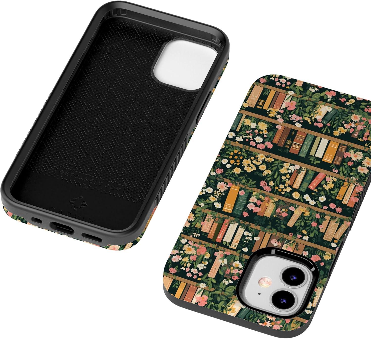 Casely iPhone 12 Mini Case | Viva La Vida | Frida Kahlo Collage | Compatible with MagSafe | Bold Protective Design(Book Nook | Floral Library)
