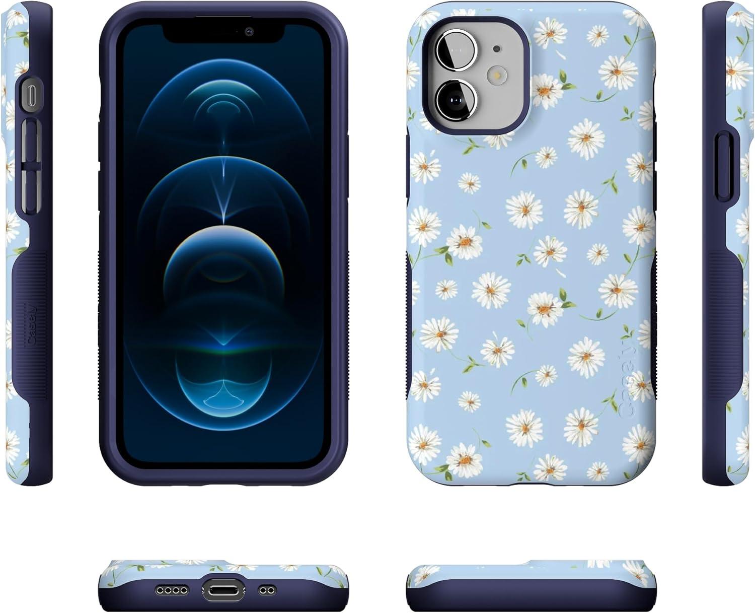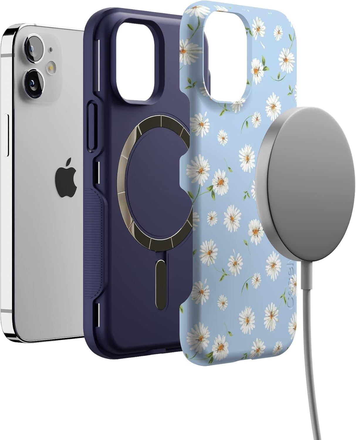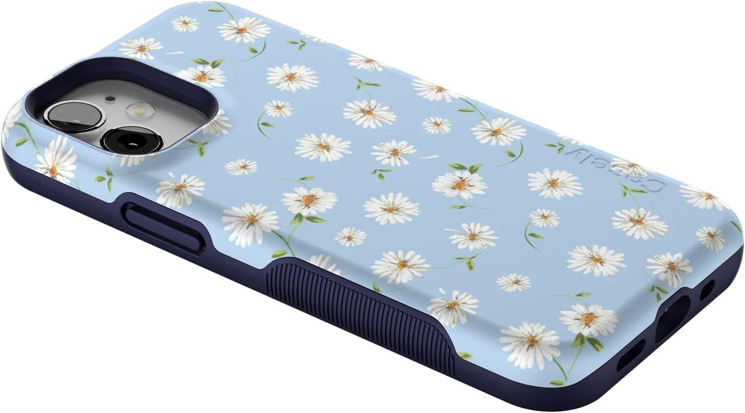 Casely iPhone 12 Mini Case | Viva La Vida | Frida Kahlo Collage | Compatible with MagSafe | Bold Protective Design(Daisy Daydream | Baby Blue Floral)