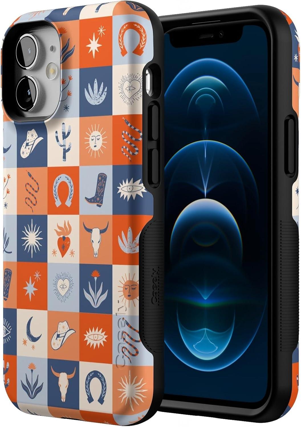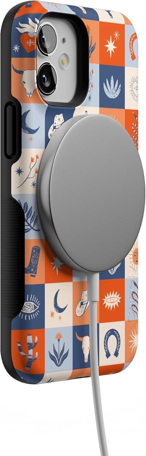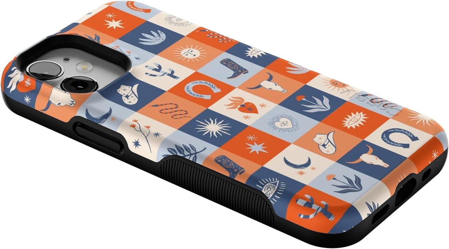 Casely iPhone 12 Mini Case | Viva La Vida | Frida Kahlo Collage | Compatible with MagSafe | Bold Protective Design(Dirt Road Chic | Western Squares)