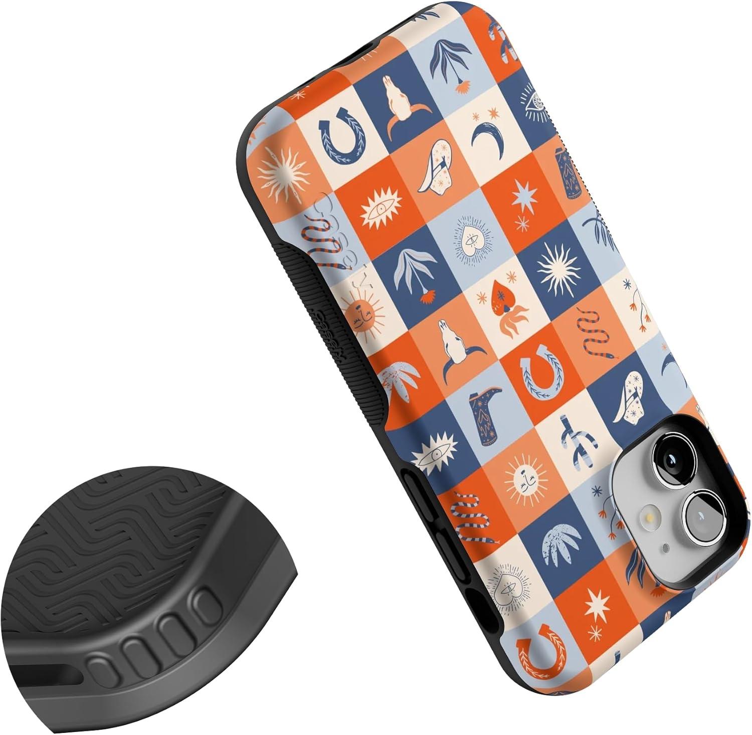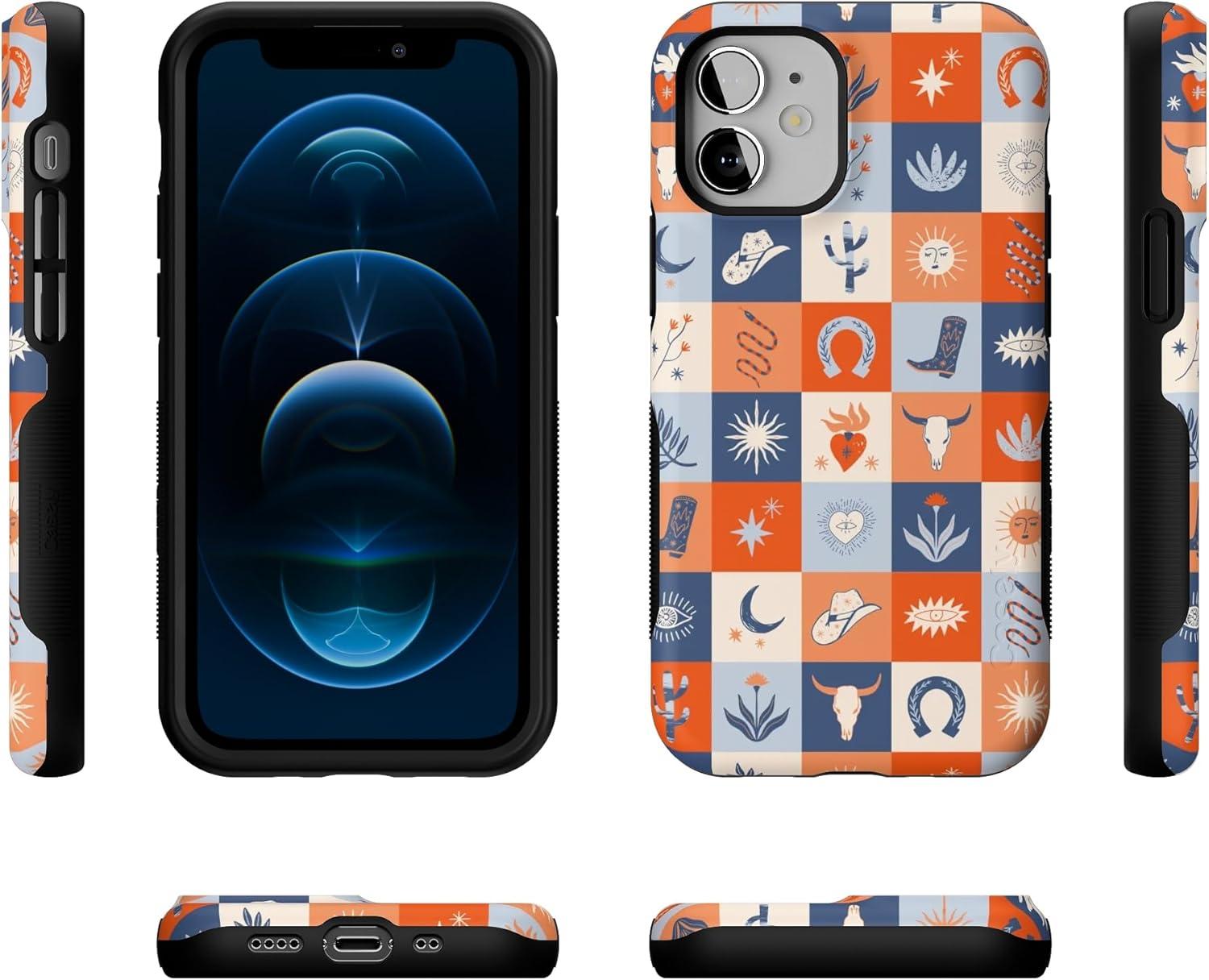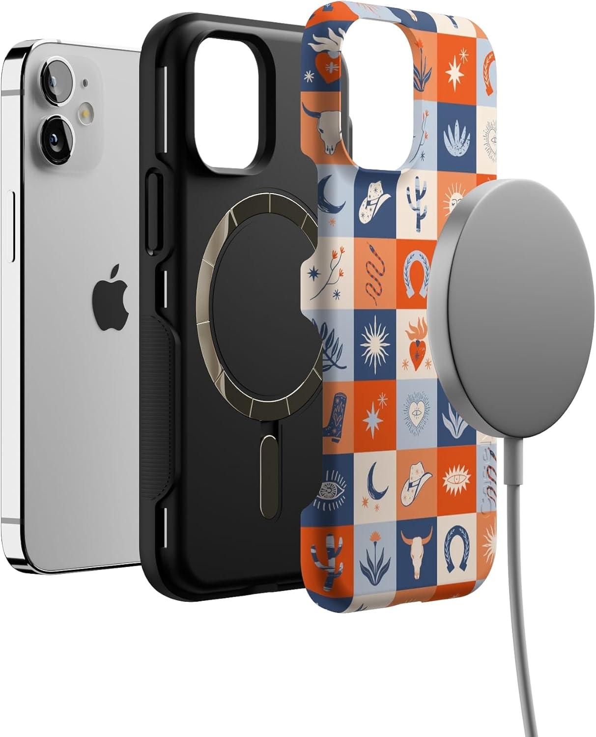 Casely iPhone 12 Mini Case | Viva La Vida | Frida Kahlo Collage | Compatible with MagSafe | Bold Protective Design(Dirt Road Chic | Western Squares)