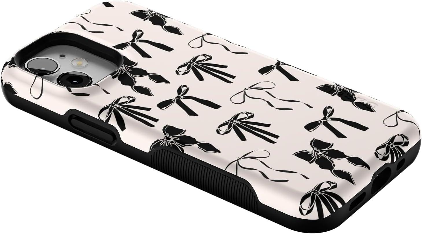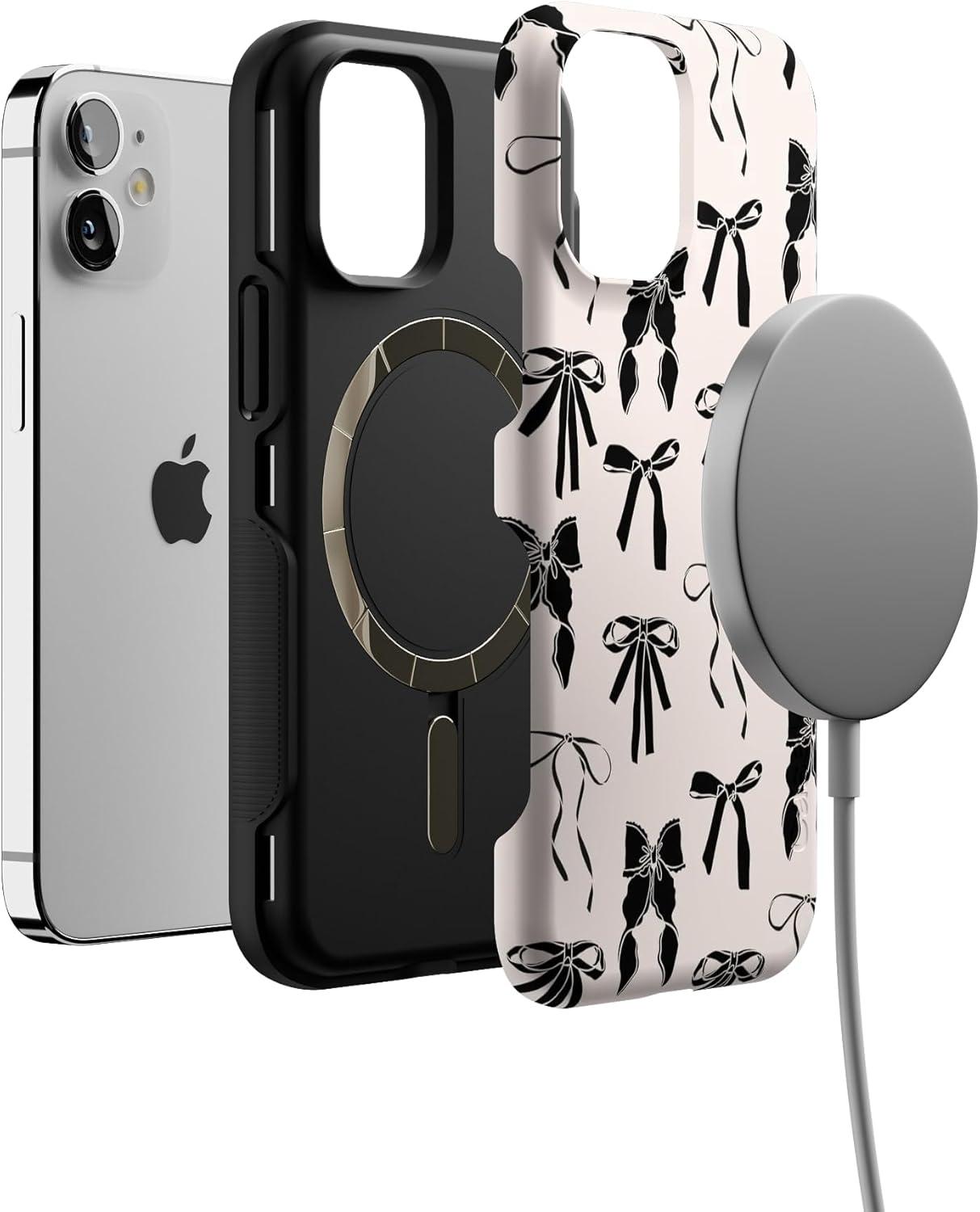 Casely iPhone 12 Mini Case | Viva La Vida | Frida Kahlo Collage | Compatible with MagSafe | Bold Protective Design(Goth Girlie | Black Bows)