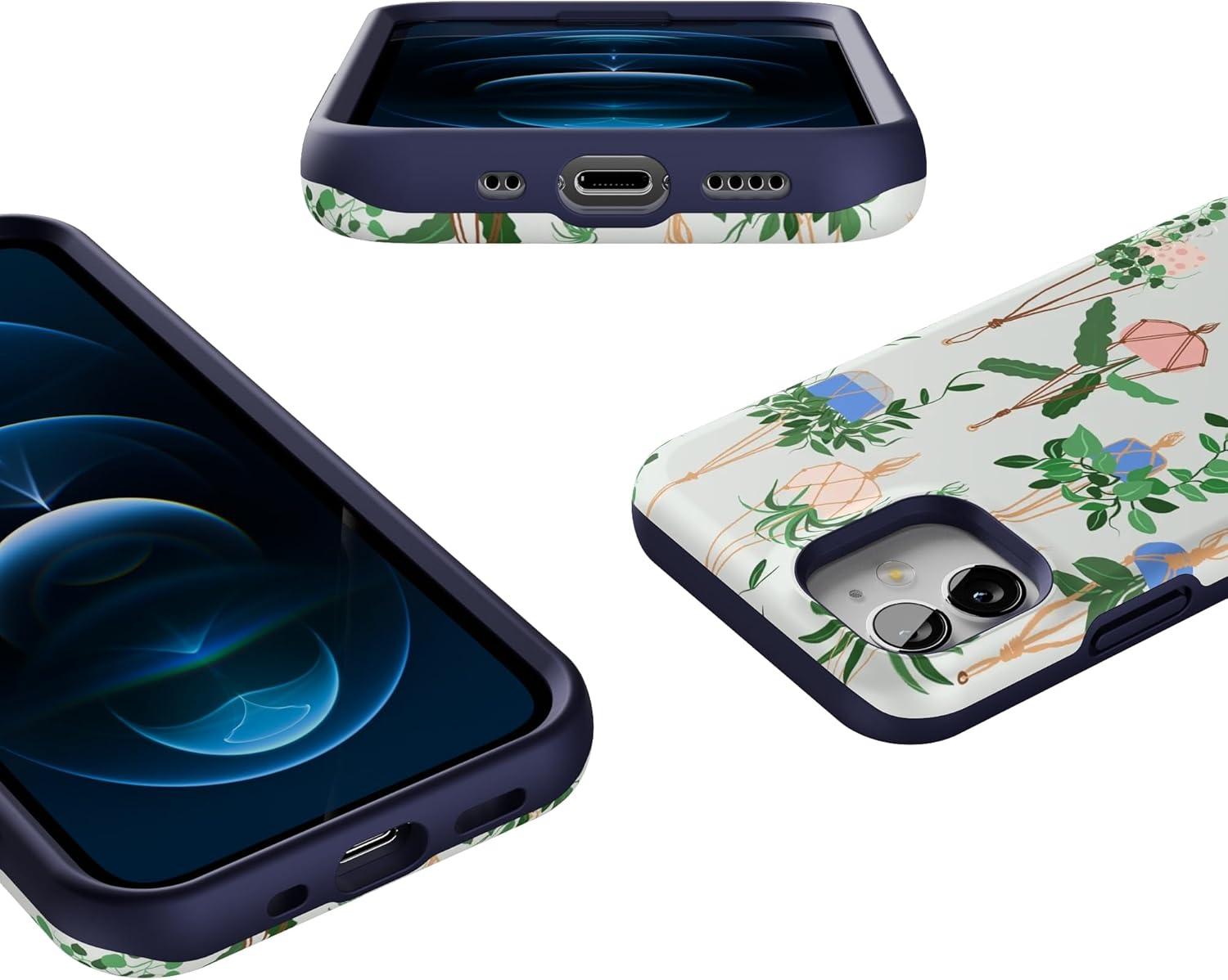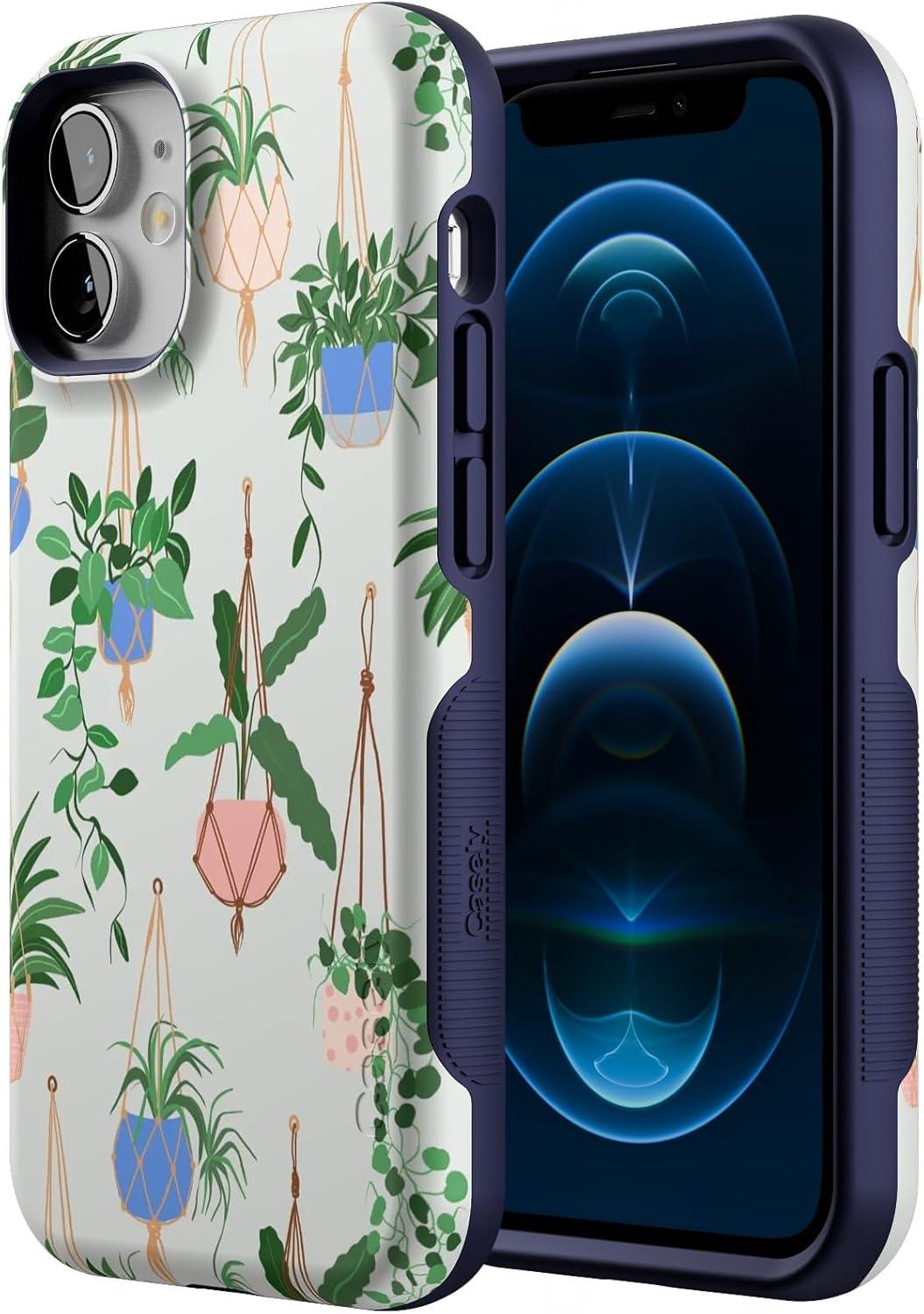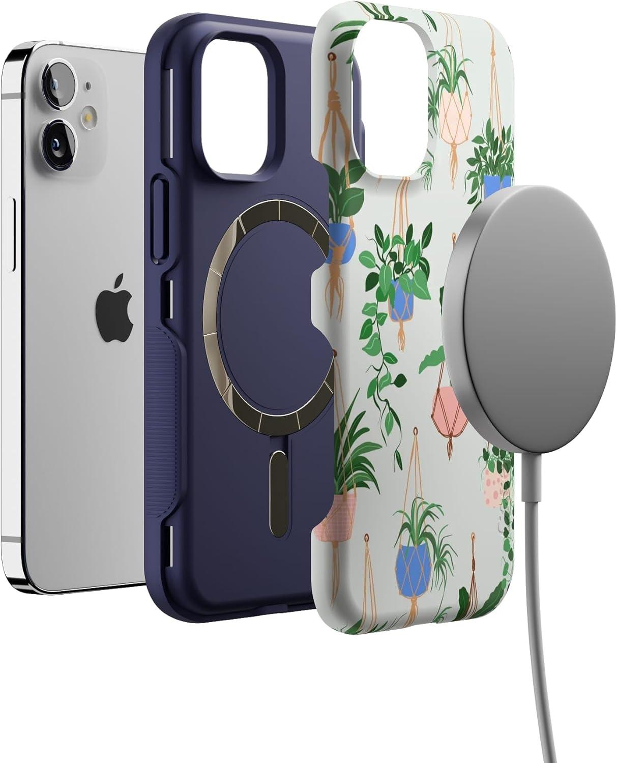 Casely iPhone 12 Mini Case | Viva La Vida | Frida Kahlo Collage | Compatible with MagSafe | Bold Protective Design(Hanging Around | Potted Plants Floral)