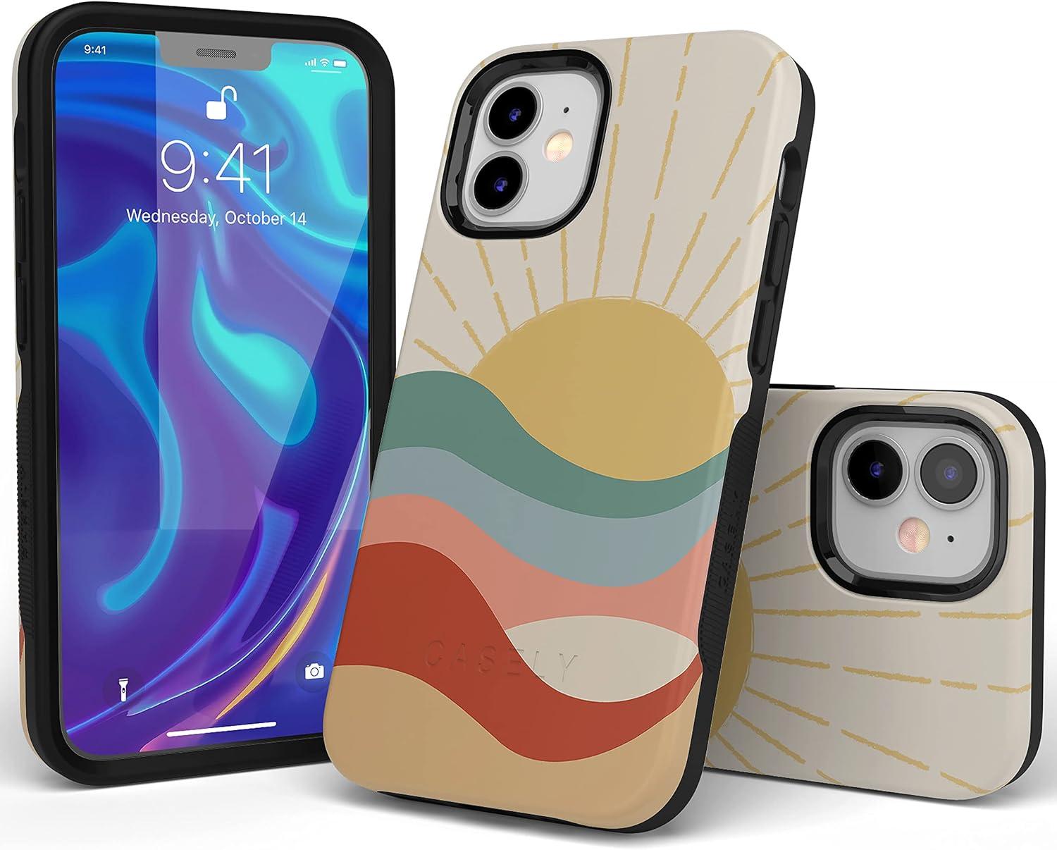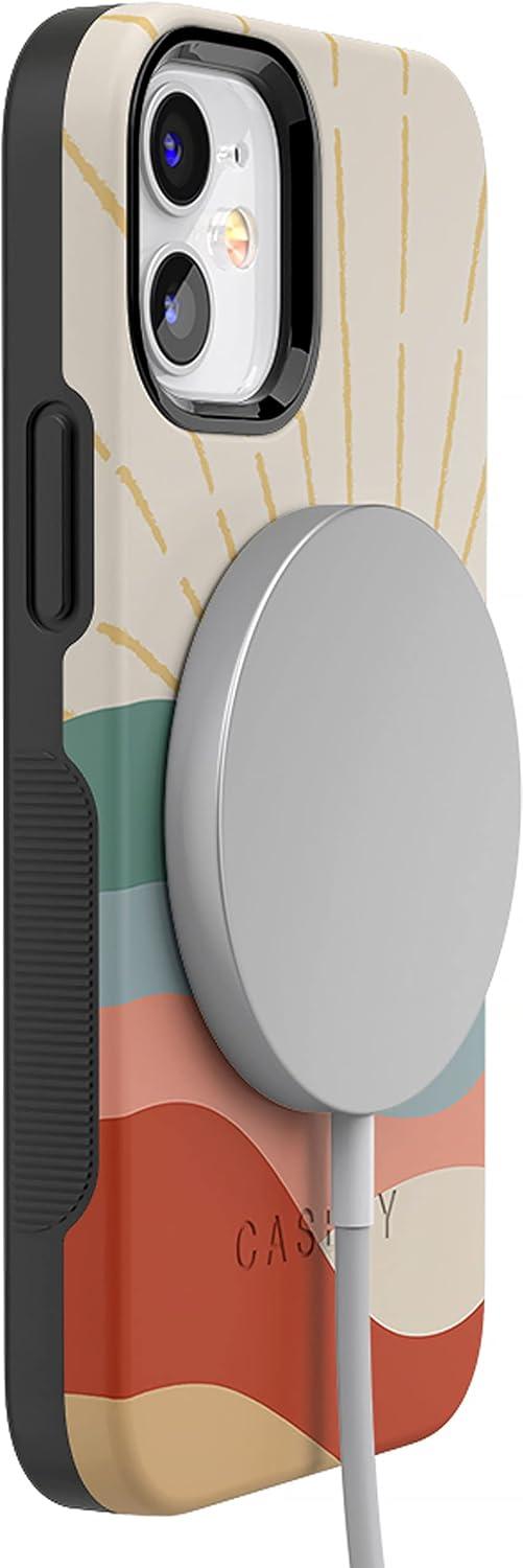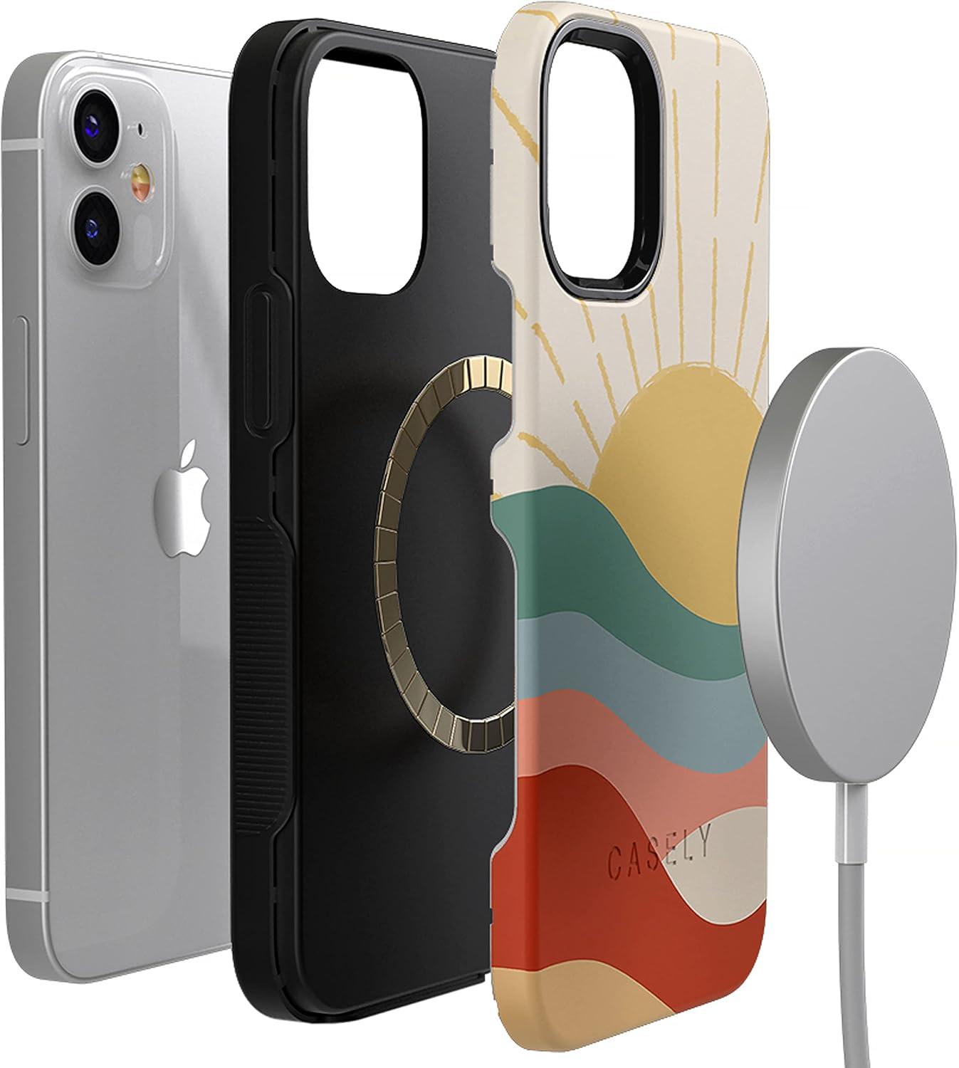 Casely iPhone 12 Mini Case | Viva La Vida | Frida Kahlo Collage | Compatible with MagSafe | Bold Protective Design(Here Comes the Sun | Colorblock Sunset)