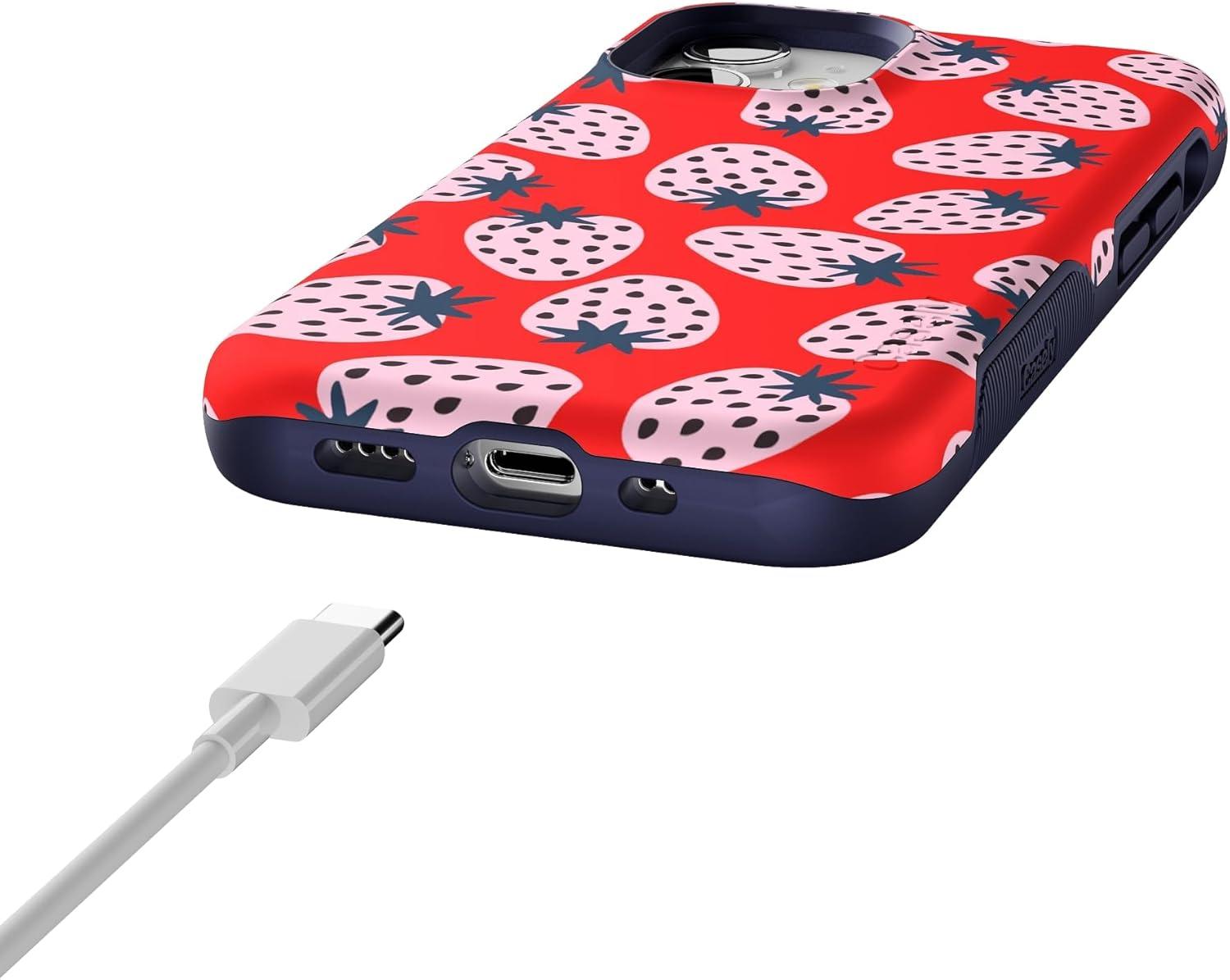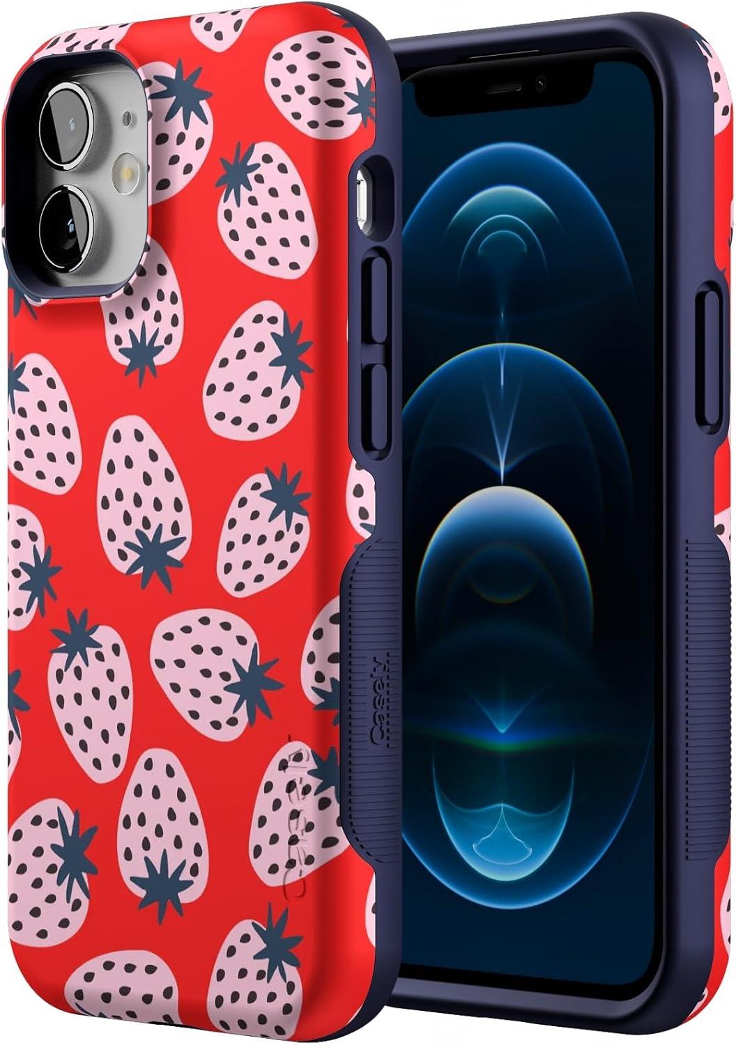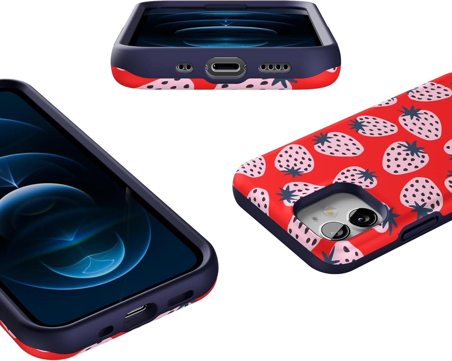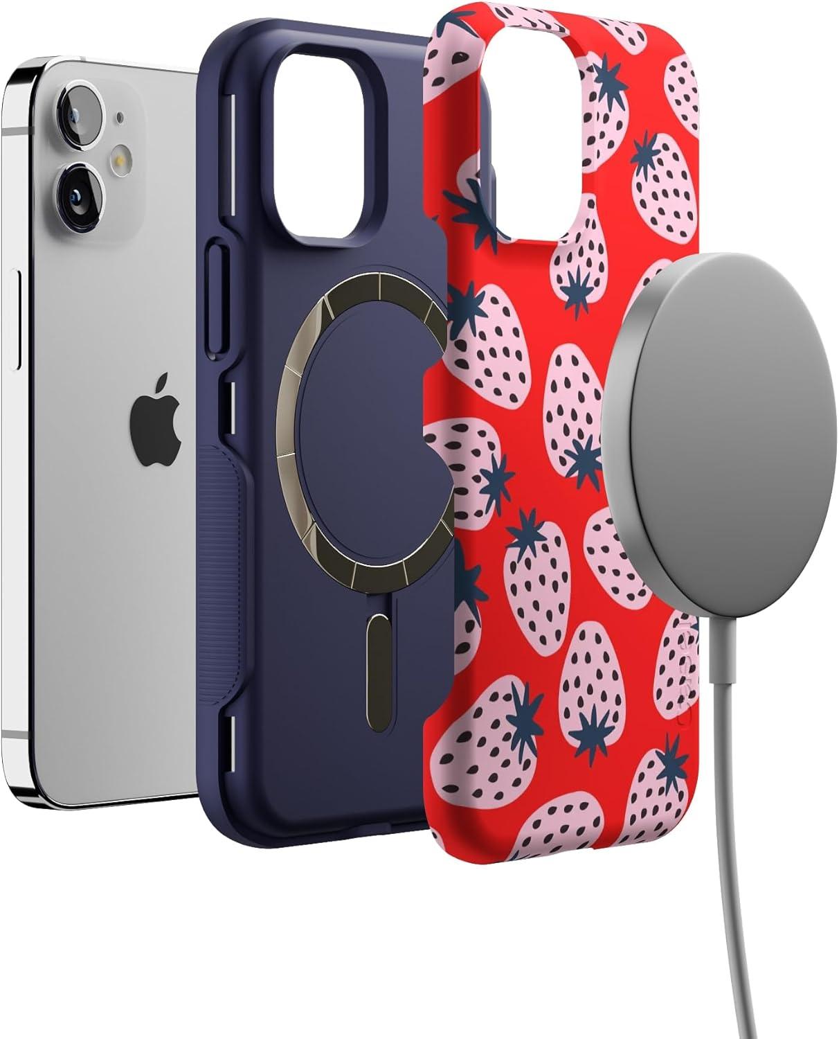 Casely iPhone 12 Mini Case | Viva La Vida | Frida Kahlo Collage | Compatible with MagSafe | Bold Protective Design(I’d Pick You | Red Strawberry)