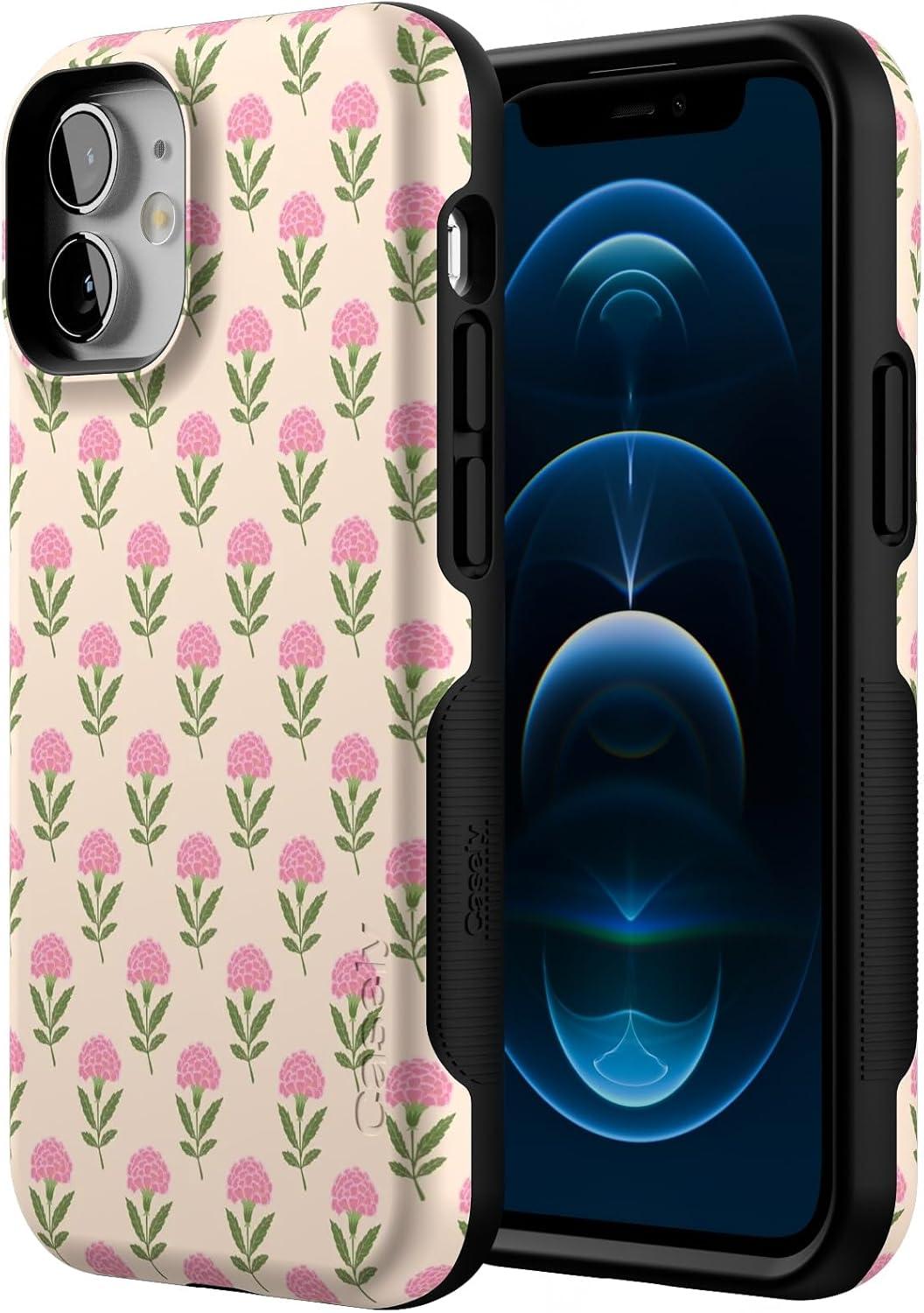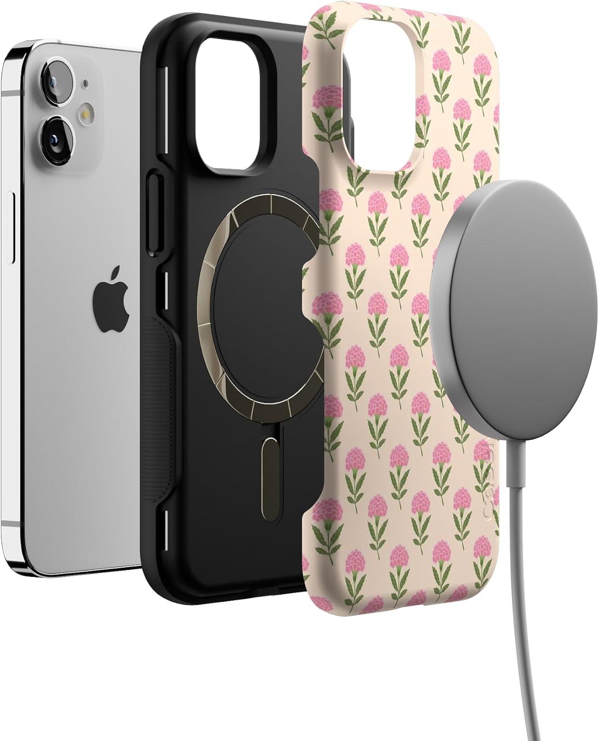 Casely iPhone 12 Mini Case | Viva La Vida | Frida Kahlo Collage | Compatible with MagSafe | Bold Protective Design(Jenna’s Flowers | Fun on Weekdays)