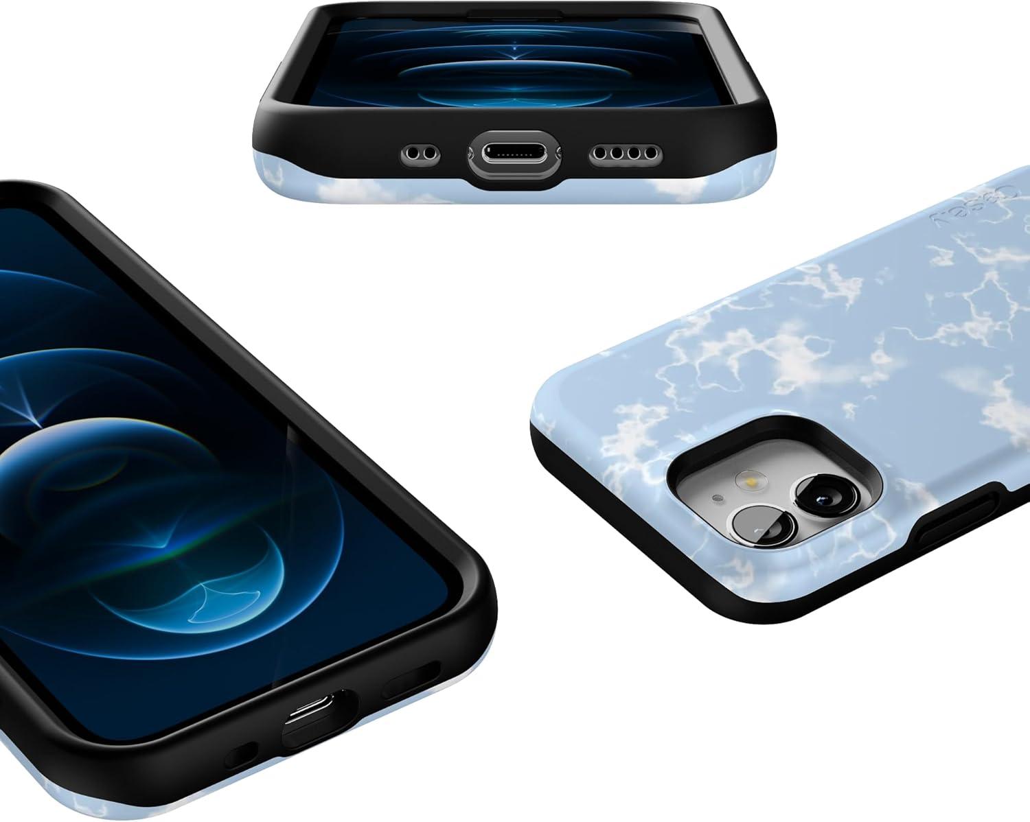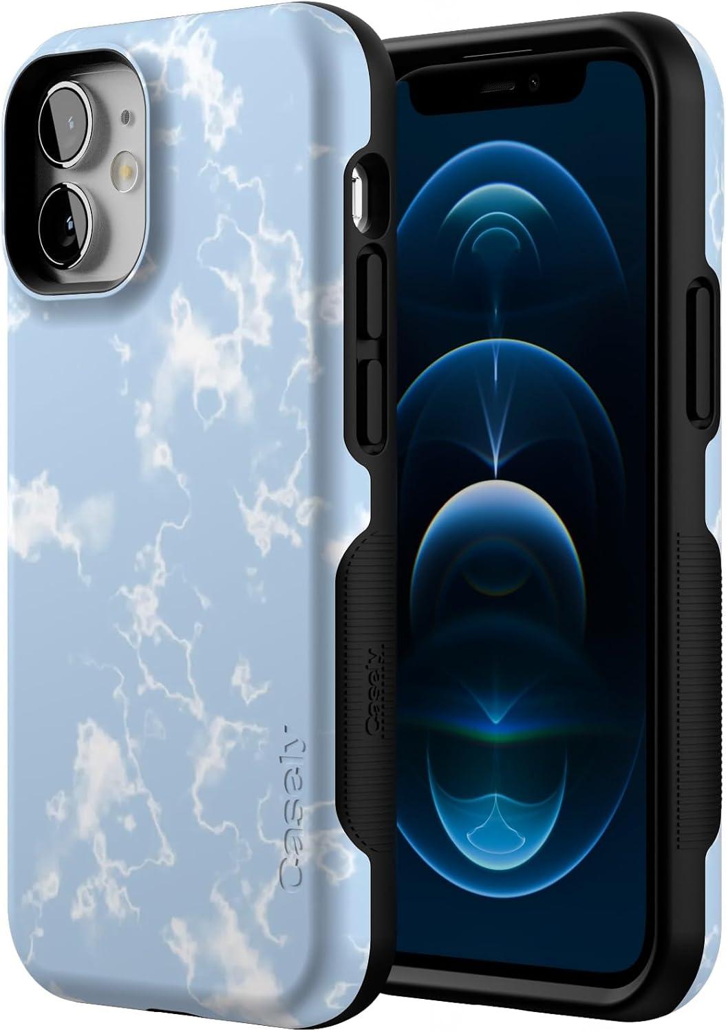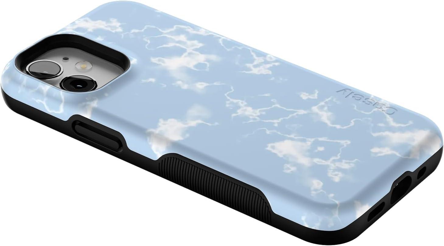 Casely iPhone 12 Mini Case | Viva La Vida | Frida Kahlo Collage | Compatible with MagSafe | Bold Protective Design(Light Blue Skies | Marble Clouds)