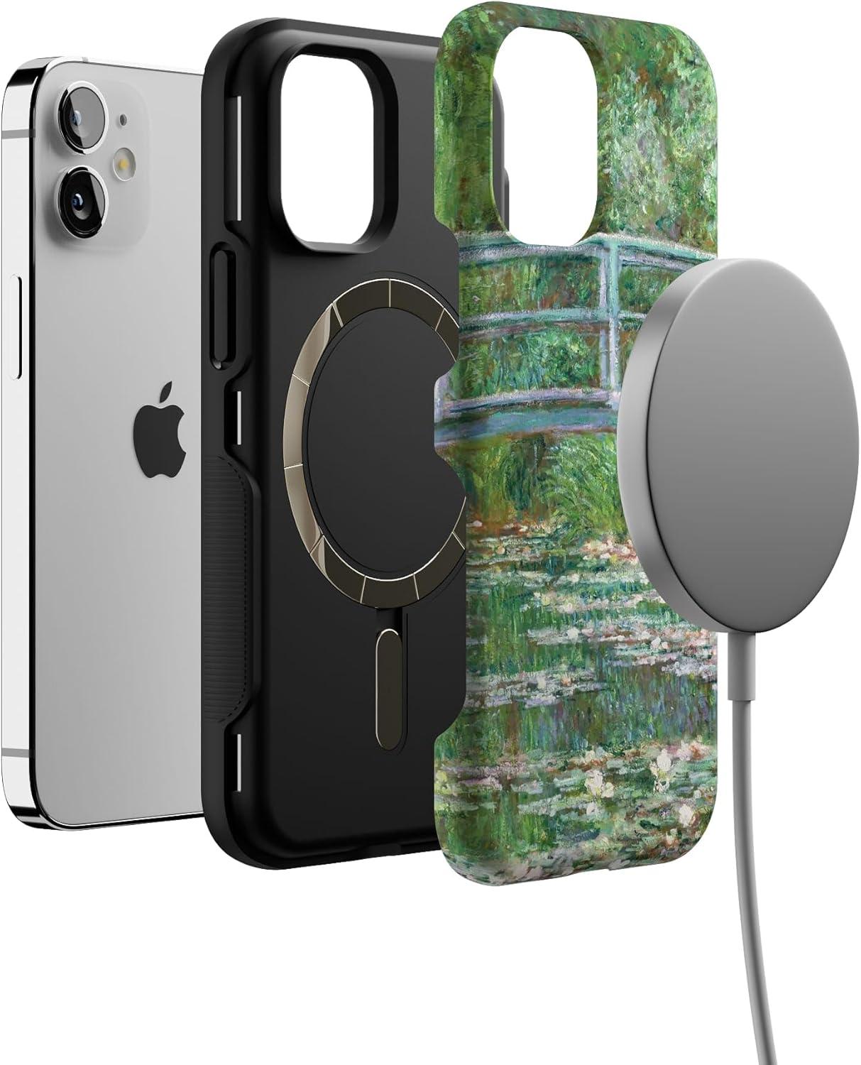 Casely iPhone 12 Mini Case | Viva La Vida | Frida Kahlo Collage | Compatible with MagSafe | Bold Protective Design(Monet’s Bridge)