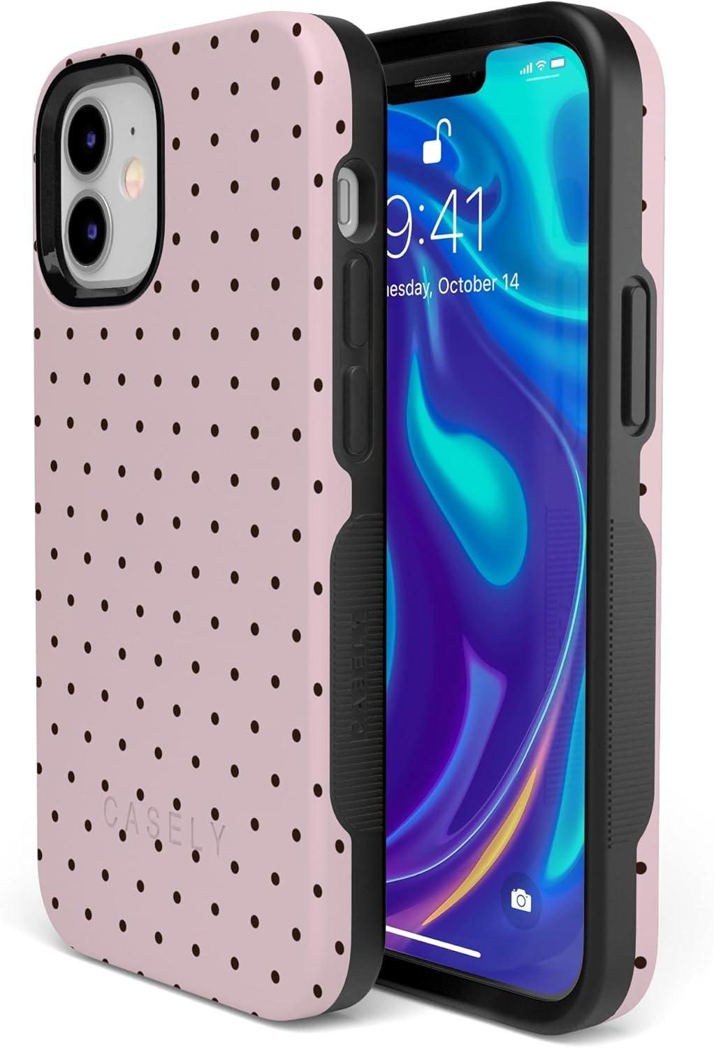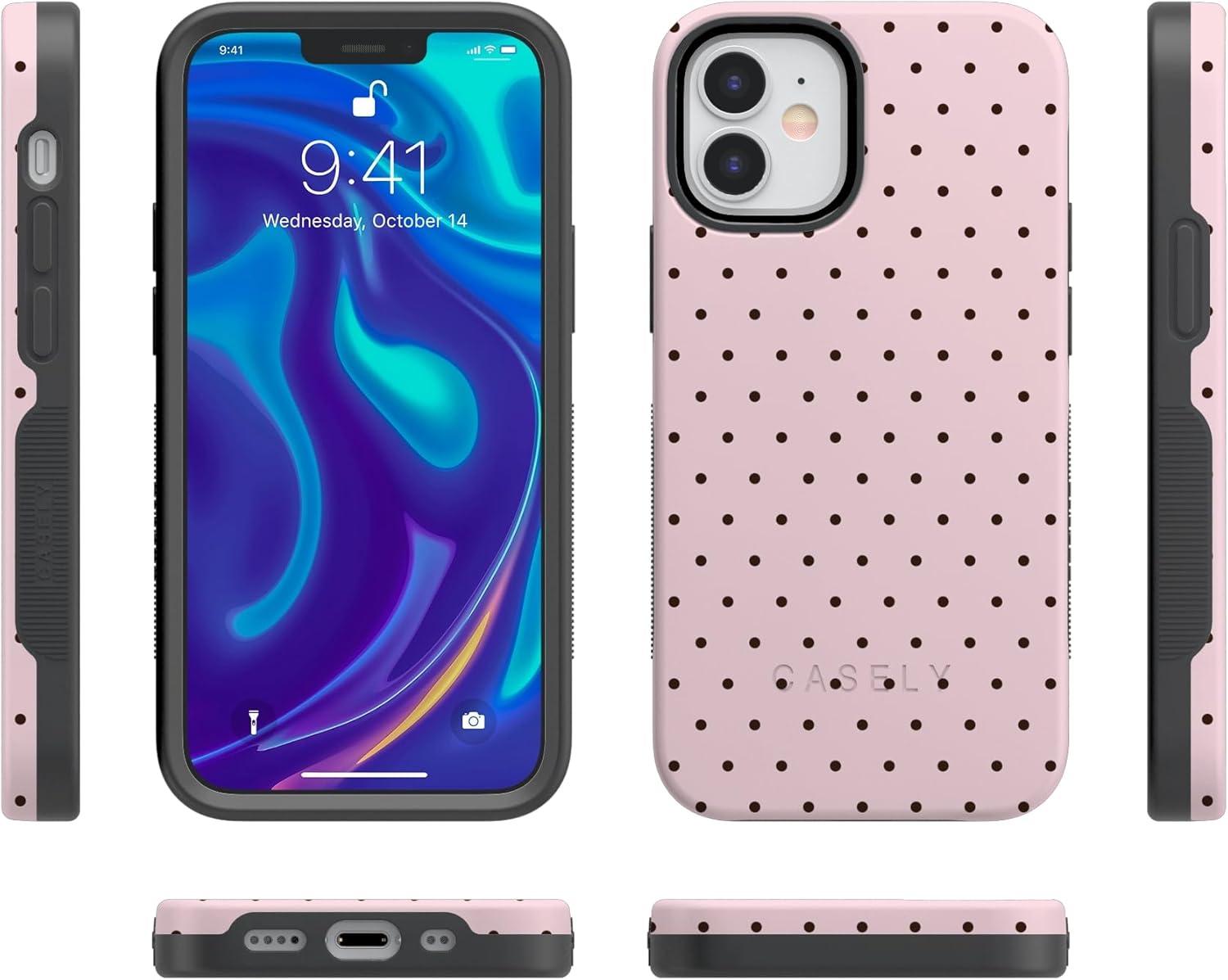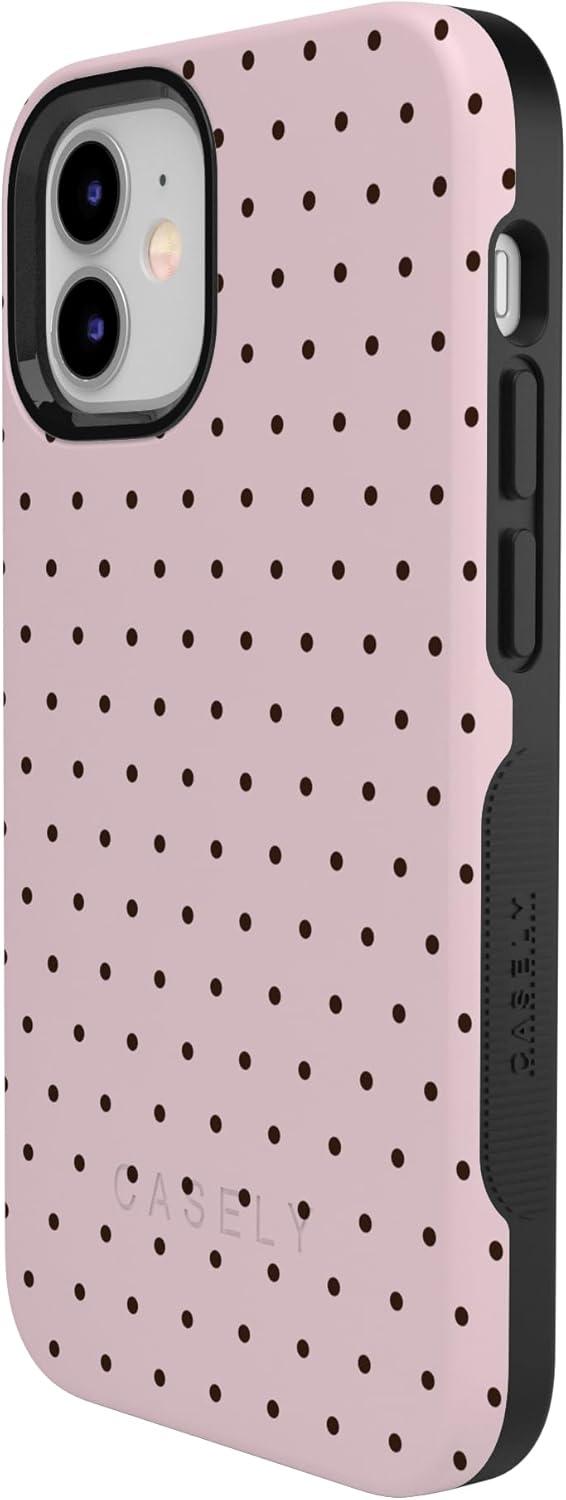 Casely iPhone 12 Mini Case | Viva La Vida | Frida Kahlo Collage | Compatible with MagSafe | Bold Protective Design(On the Dot | Pink Polka Dot)