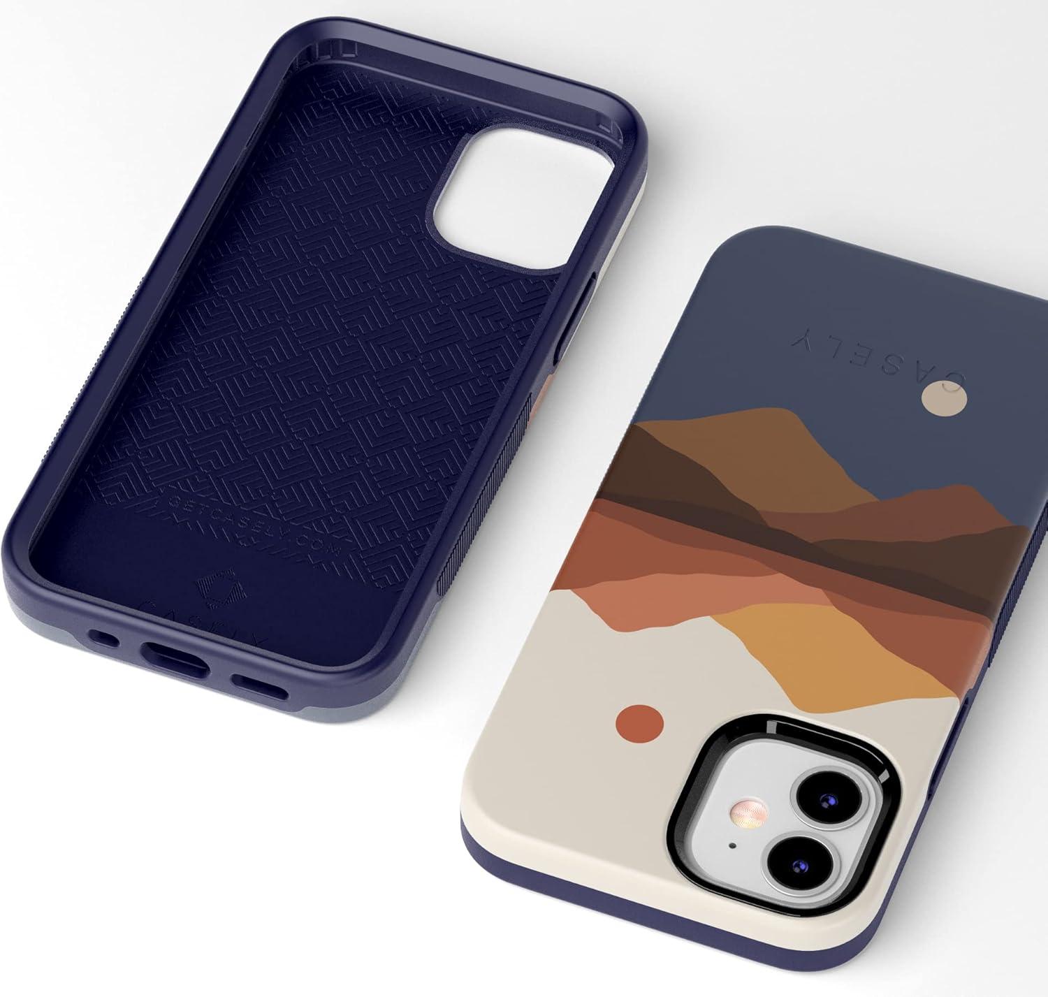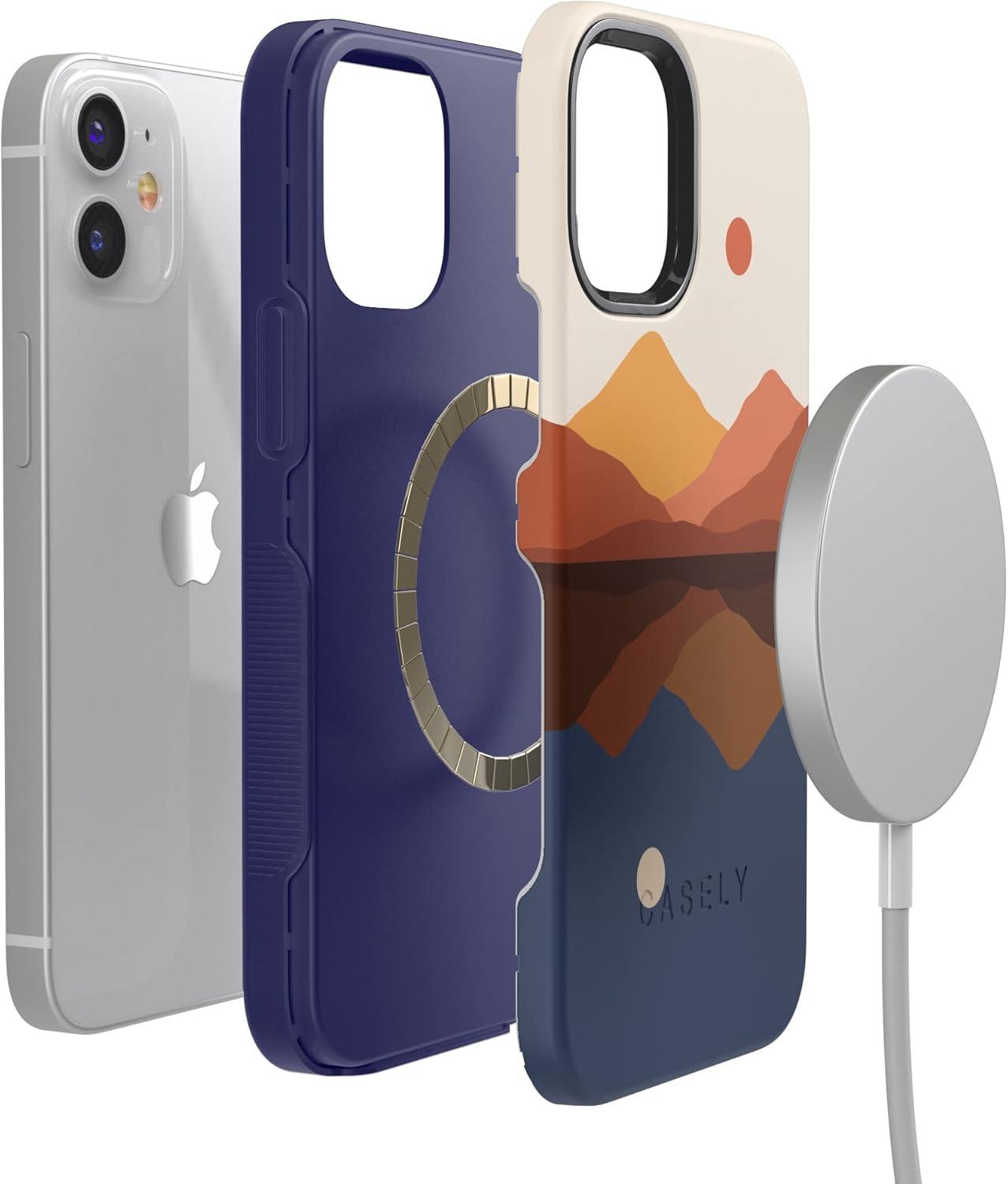 Casely iPhone 12 Mini Case | Viva La Vida | Frida Kahlo Collage | Compatible with MagSafe | Bold Protective Design(Opposites Attract | Day & Night Mountains)