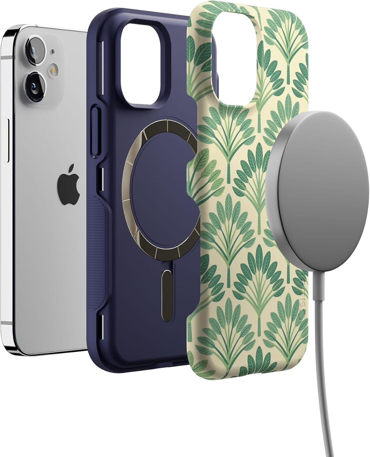 Casely iPhone 12 Mini Case | Viva La Vida | Frida Kahlo Collage | Compatible with MagSafe | Bold Protective Design(Palm Beach | Palm Royale)