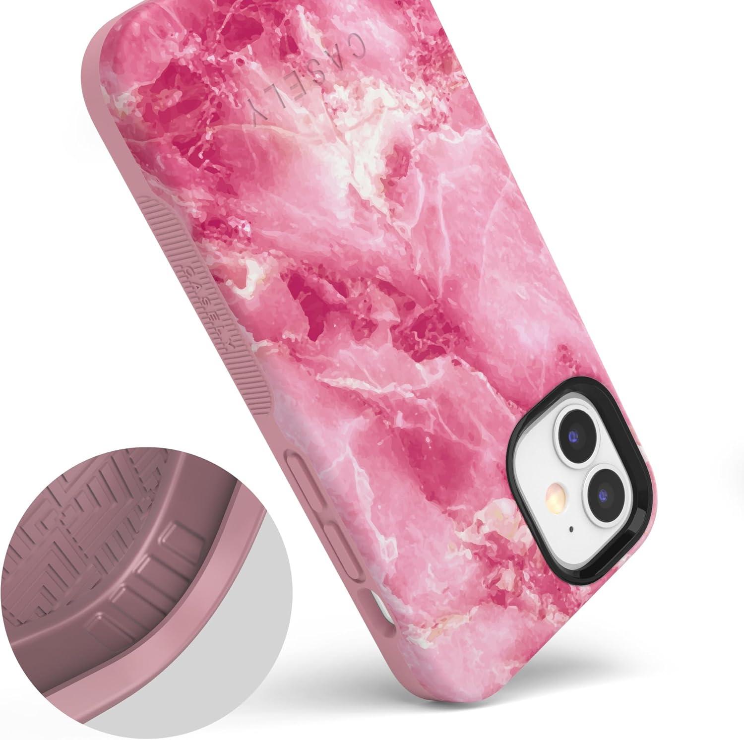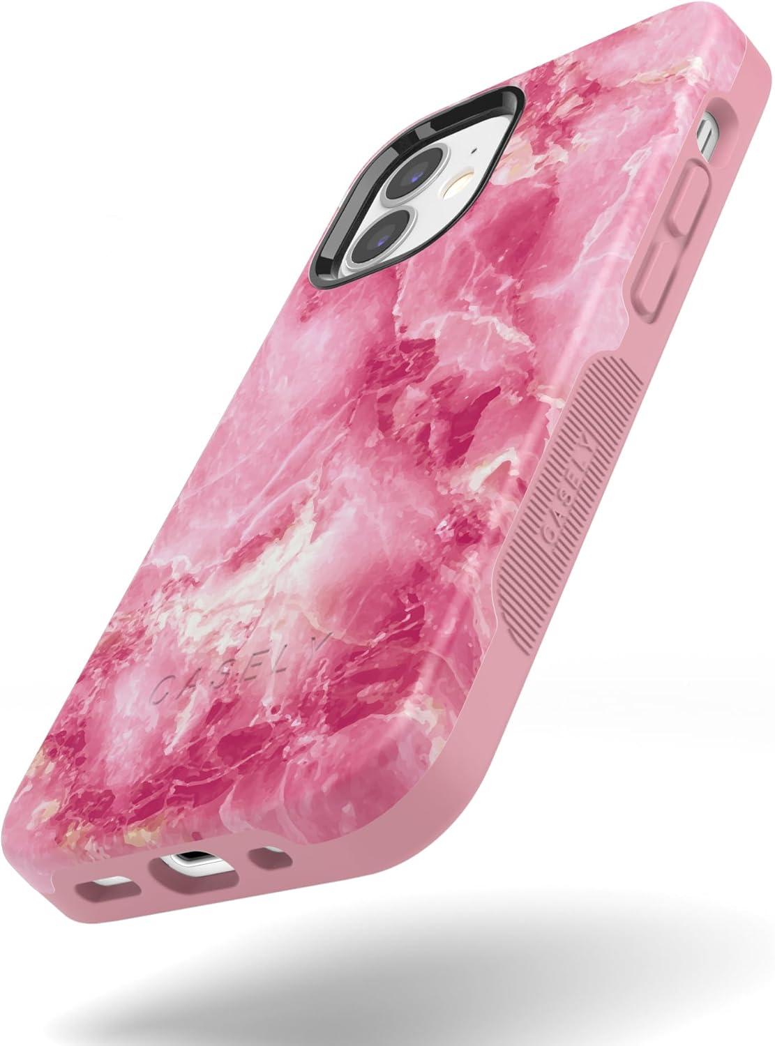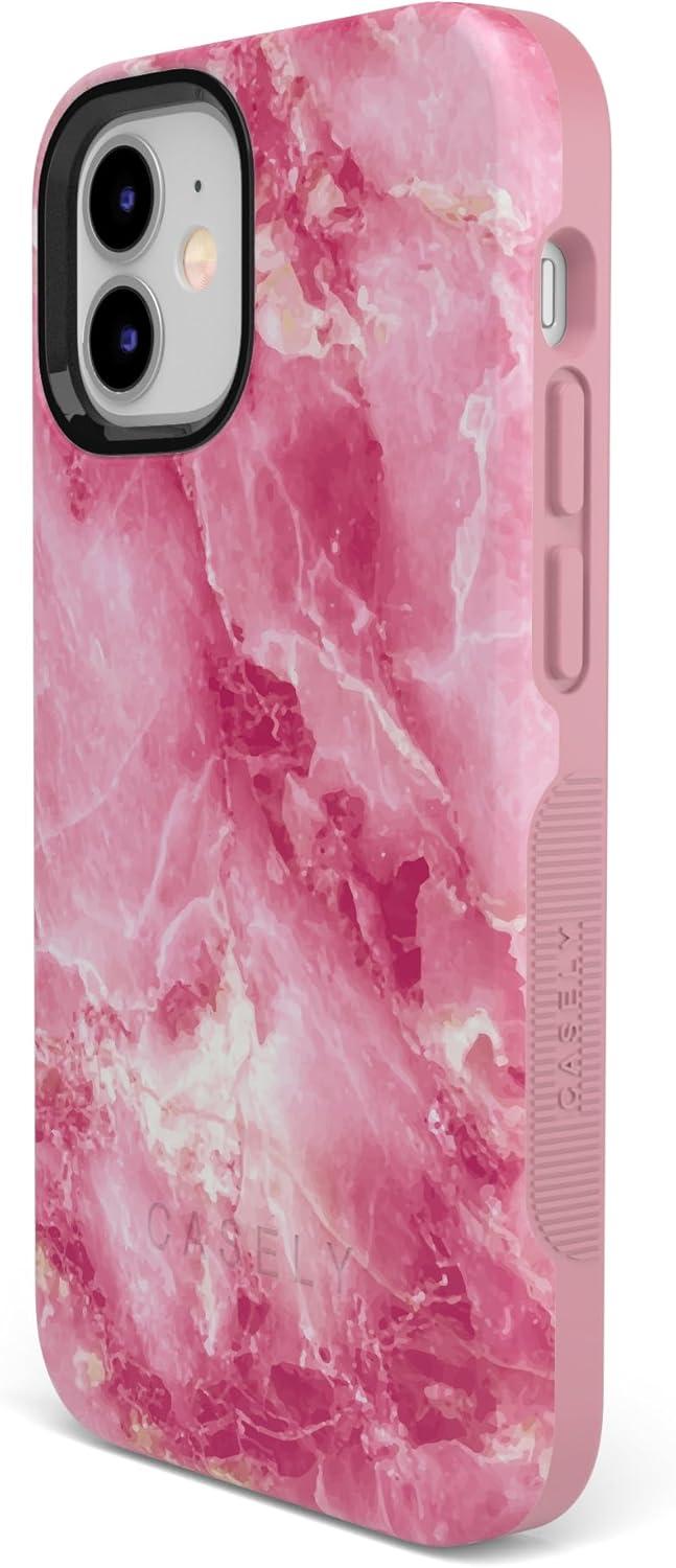 Casely iPhone 12 Mini Case | Viva La Vida | Frida Kahlo Collage | Compatible with MagSafe | Bold Protective Design(Pretty in Pink | Hot Pink Marble)