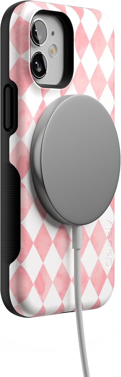 Casely iPhone 12 Mini Case | Viva La Vida | Frida Kahlo Collage | Compatible with MagSafe | Bold Protective Design(Queen of Diamonds | Pink Watercolor)