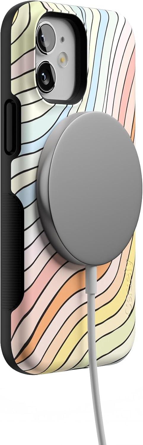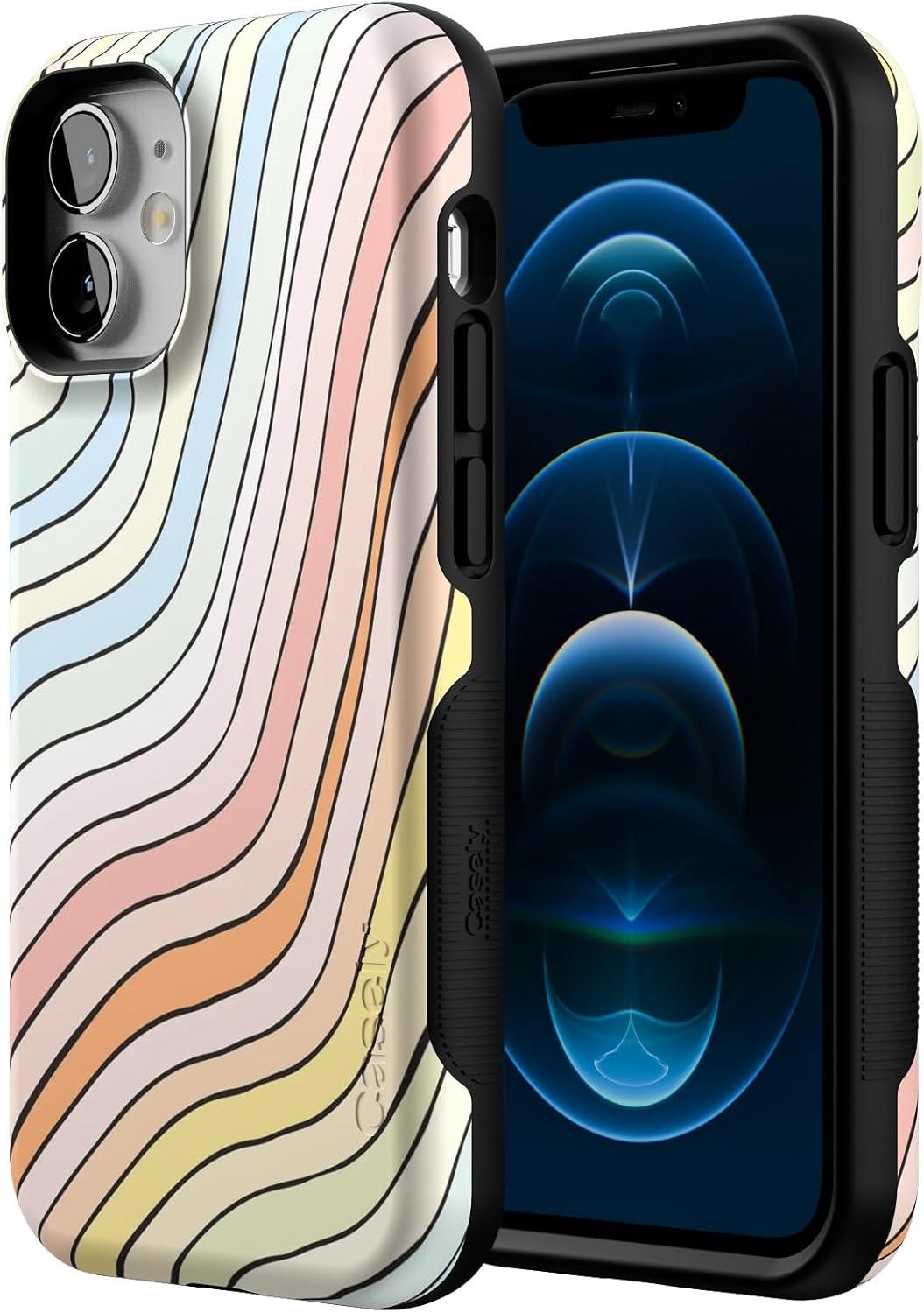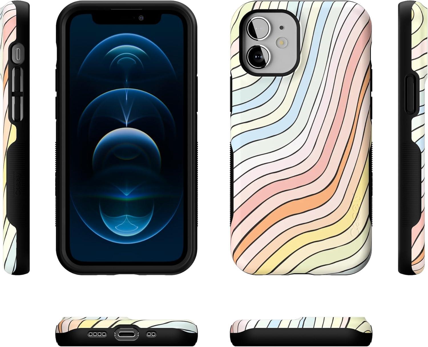 Casely iPhone 12 Mini Case | Viva La Vida | Frida Kahlo Collage | Compatible with MagSafe | Bold Protective Design(Ride The Wave | Pastel Rainbow Lined)