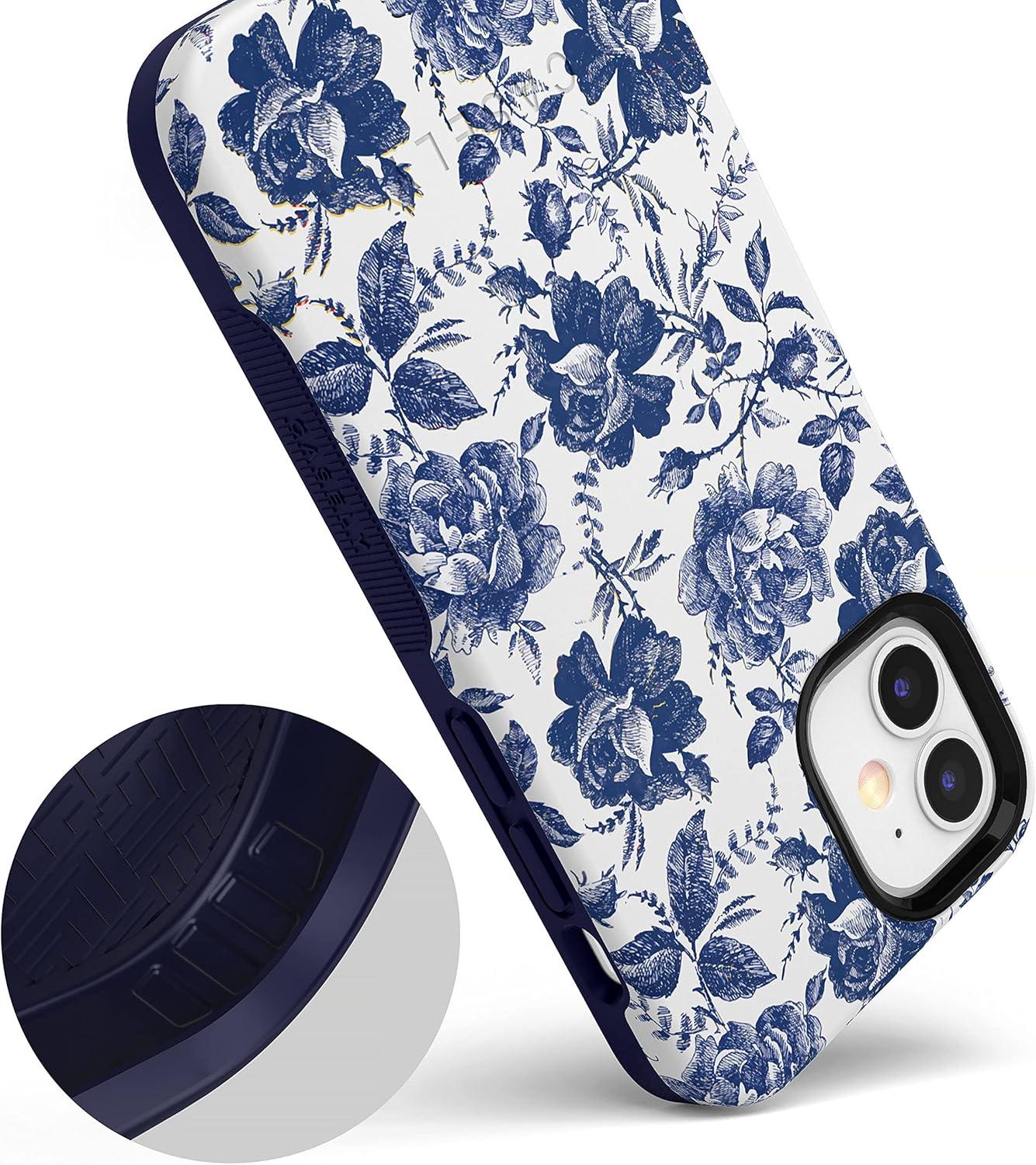 Casely iPhone 12 Mini Case | Viva La Vida | Frida Kahlo Collage | Compatible with MagSafe | Bold Protective Design(Rose to Fame | Blue & White Rose Floral)
