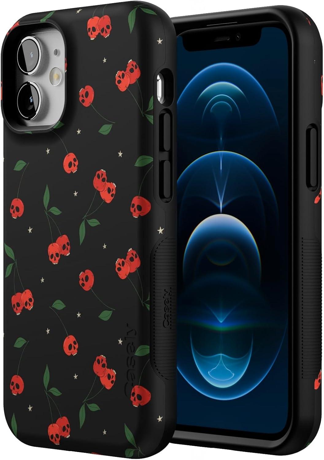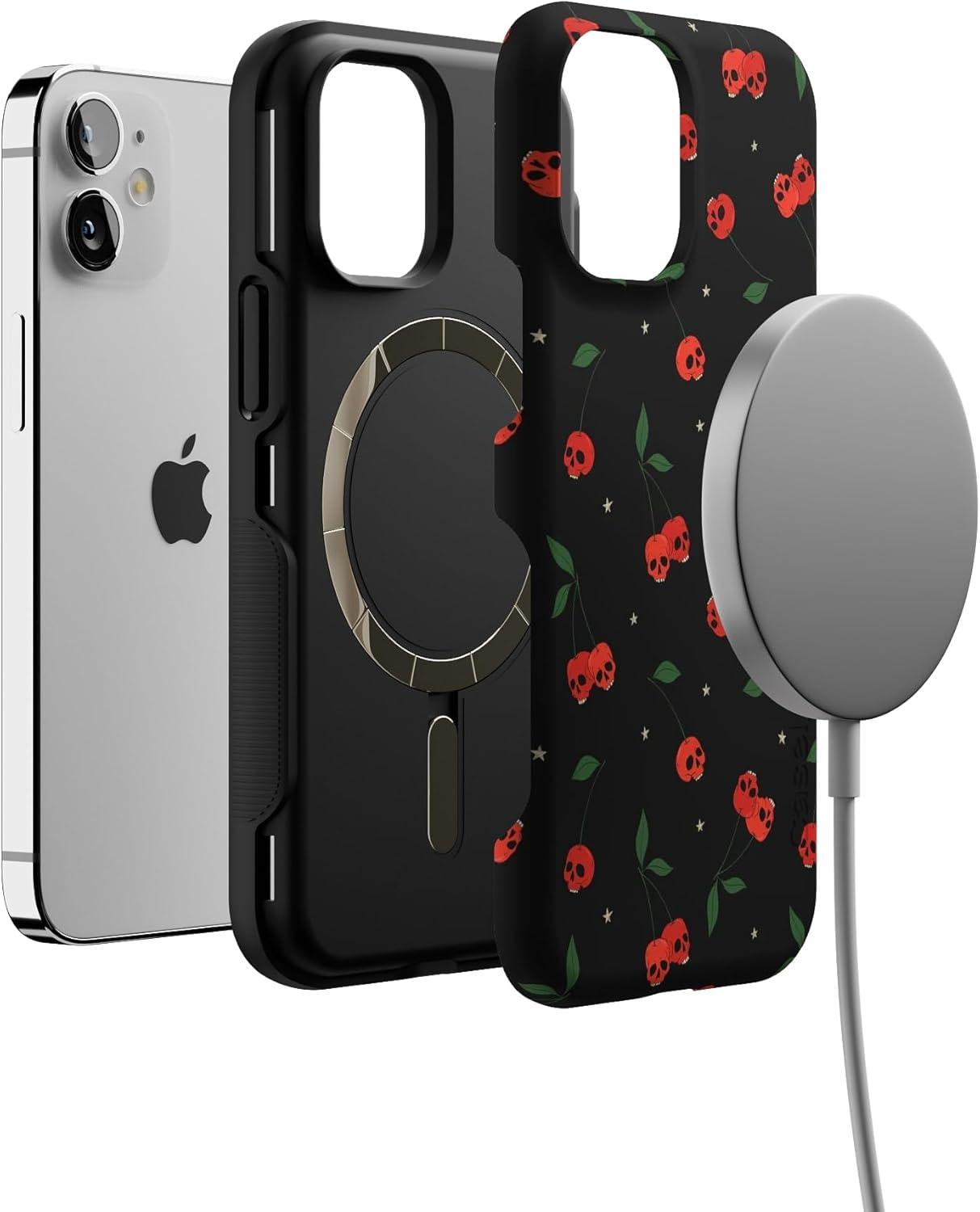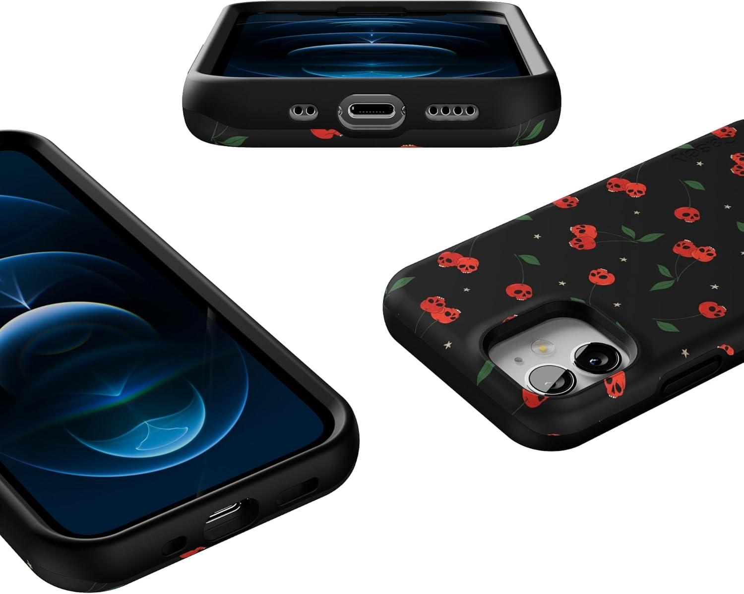 Casely iPhone 12 Mini Case | Viva La Vida | Frida Kahlo Collage | Compatible with MagSafe | Bold Protective Design(Sweet Revenge | Cherry Skulls)
