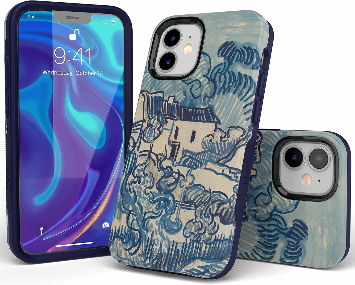 Casely iPhone 12 Mini Case | Viva La Vida | Frida Kahlo Collage | Compatible with MagSafe | Bold Protective Design(Van Gogh | Landscape With Houses)