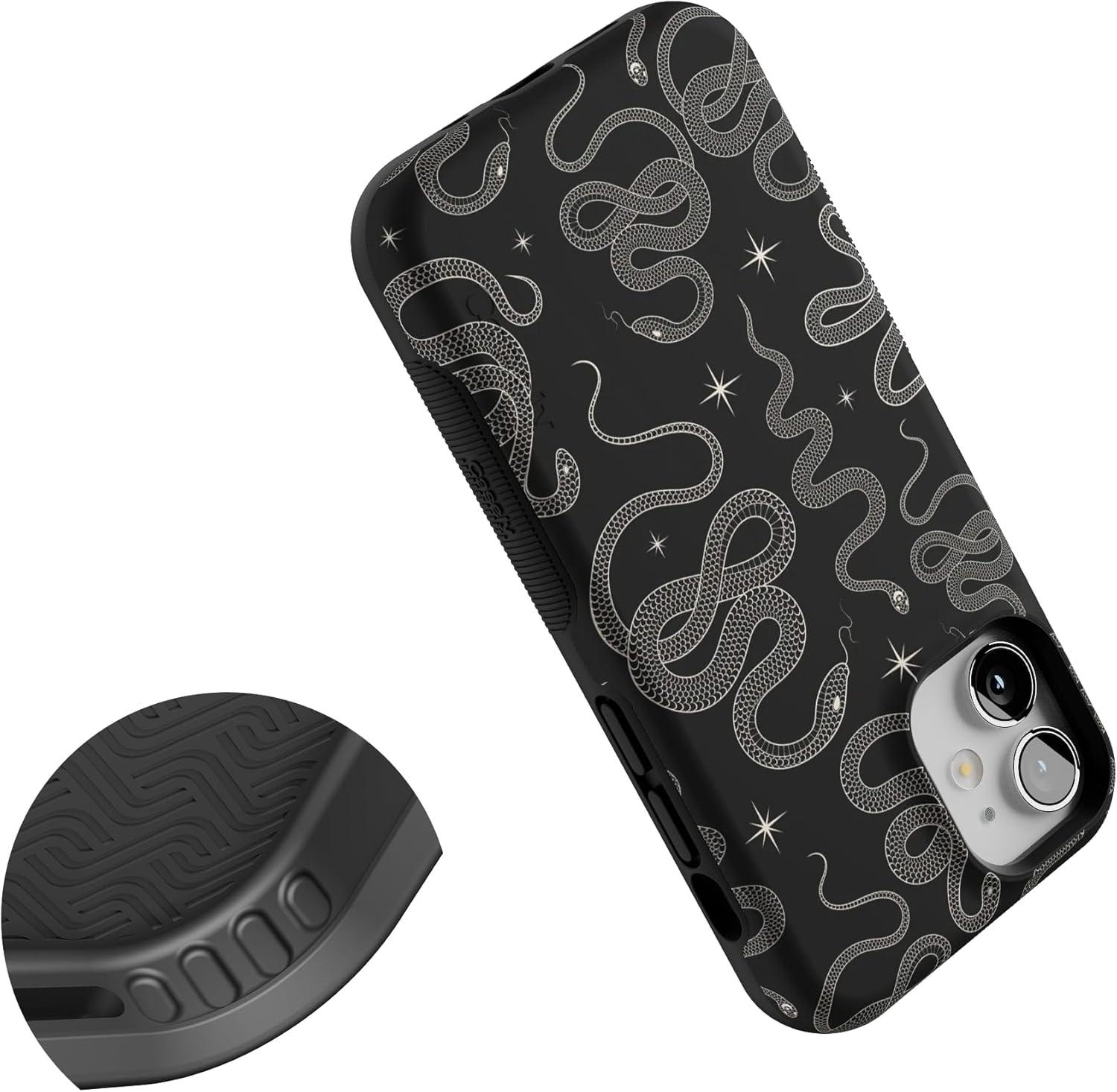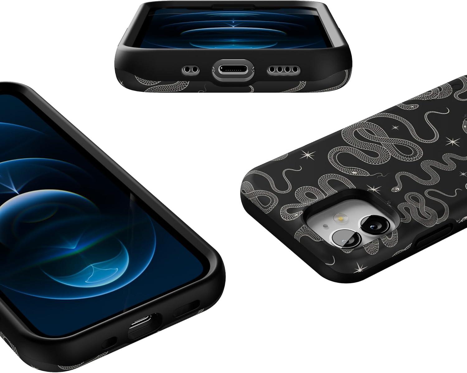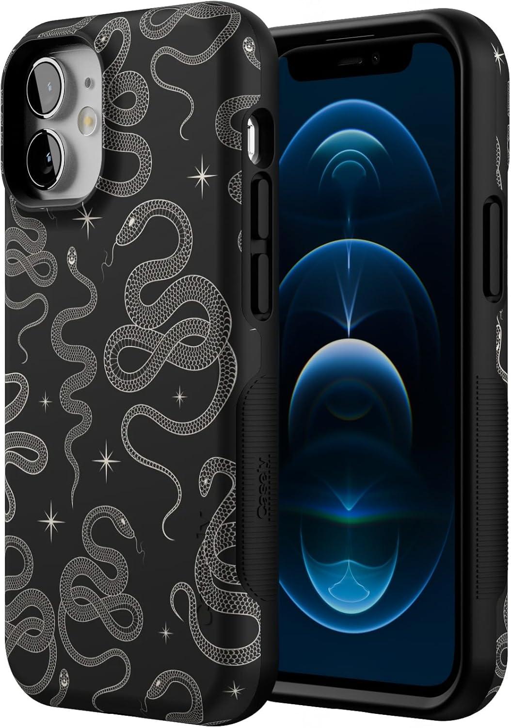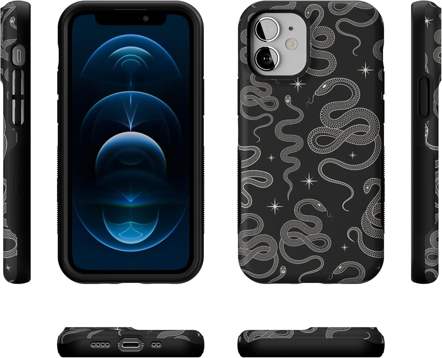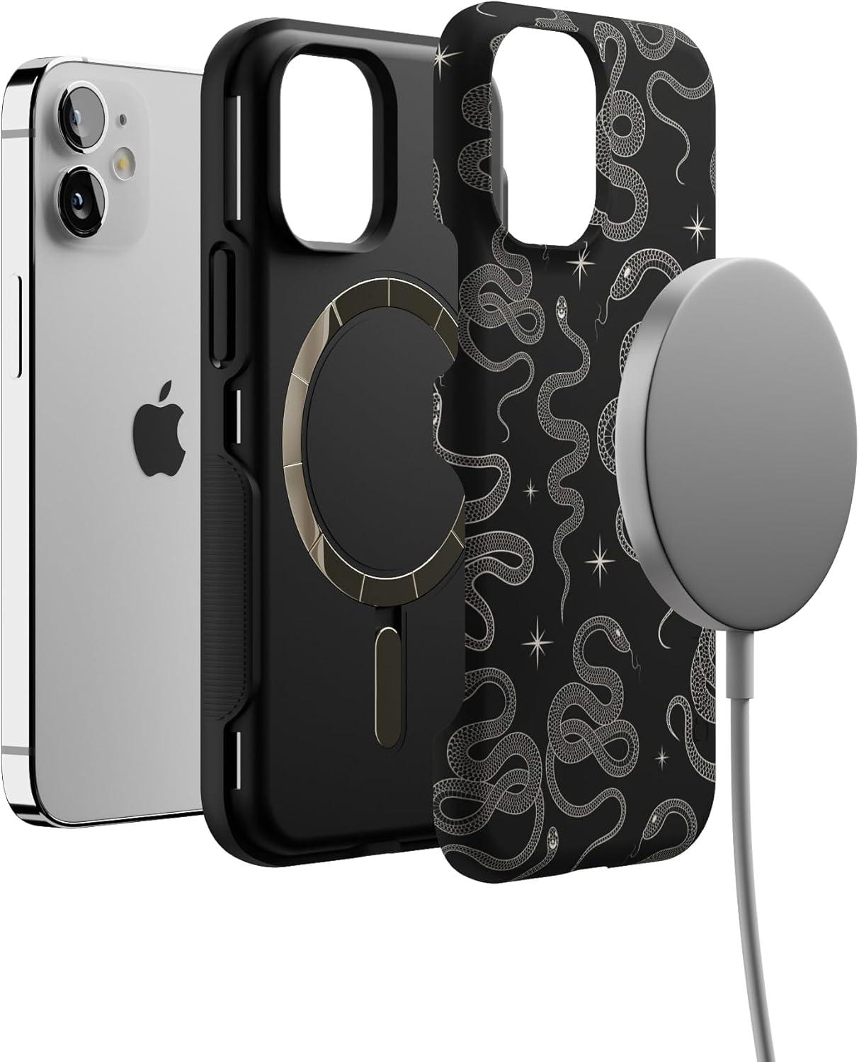 Casely iPhone 12 Mini Case | Viva La Vida | Frida Kahlo Collage | Compatible with MagSafe | Bold Protective Design(We’re Ready For It | Black Serpent)