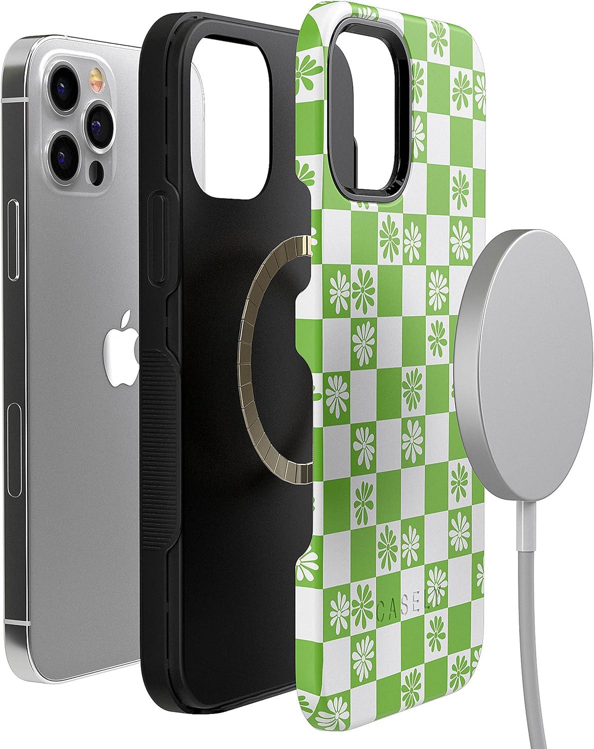 Casely iPhone 12 Pro Max Case | Denim Cowgirl | Fun on Weekdays | Compatible with MagSafe | Bold Protective Case Design(Check Mate | Daisy Checkerboard Floral)