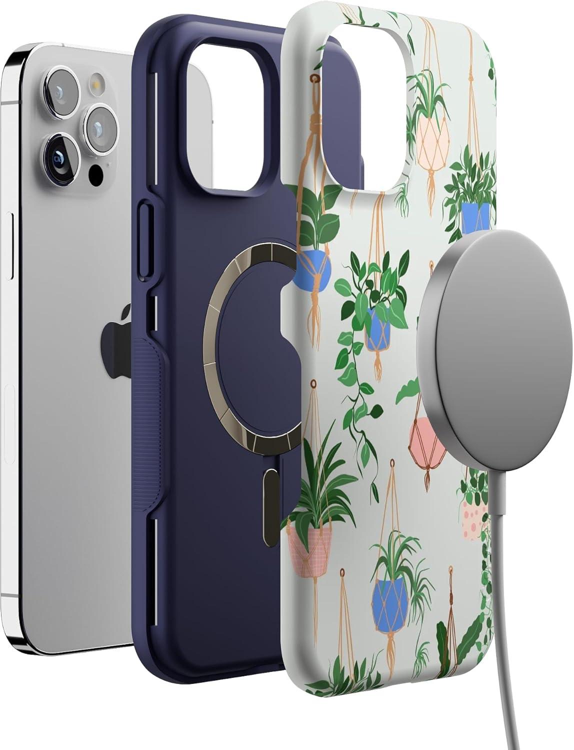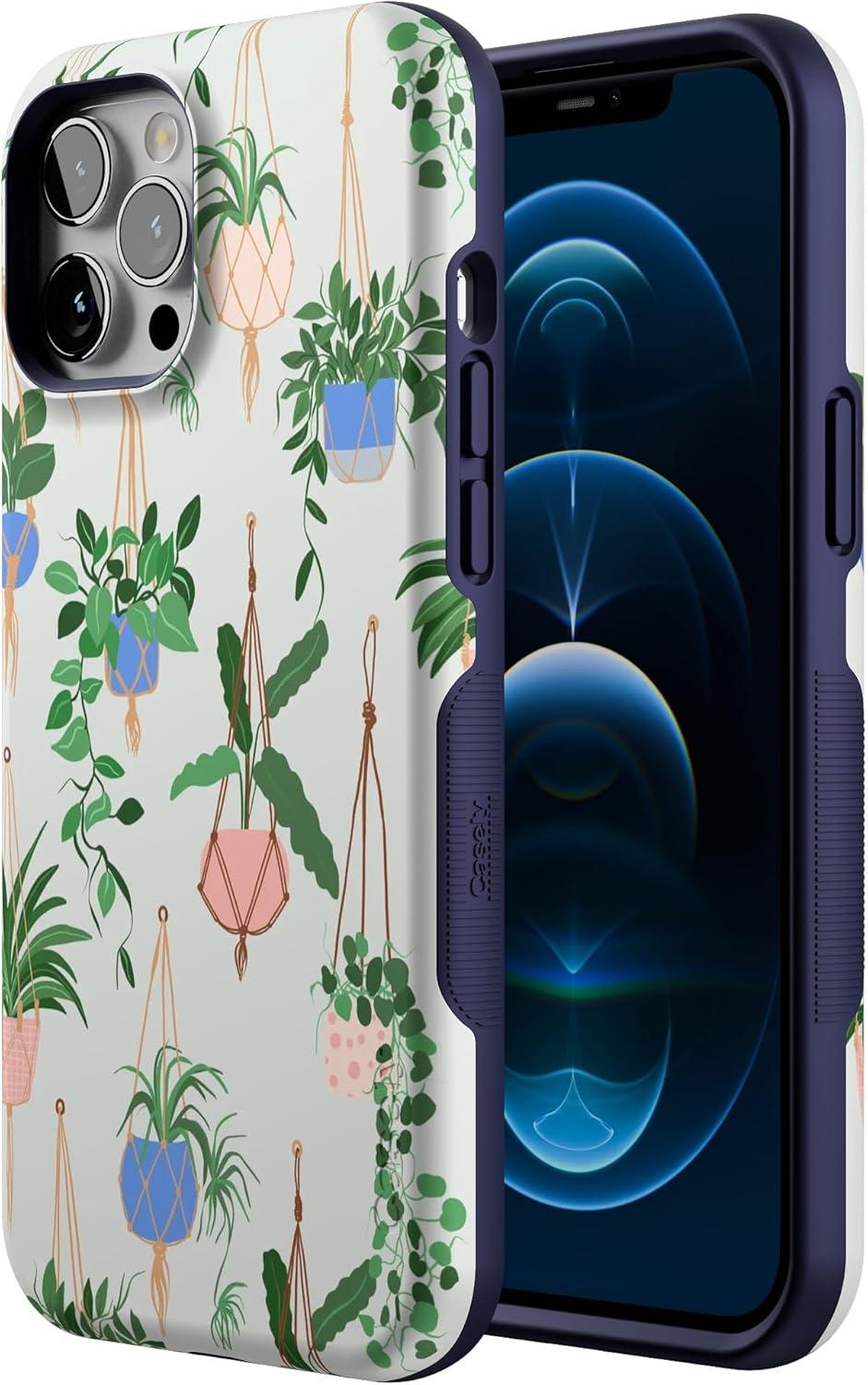 Casely iPhone 12 Pro Max Case | Denim Cowgirl | Fun on Weekdays | Compatible with MagSafe | Bold Protective Case Design(Hanging Around | Potted Plants Floral)
