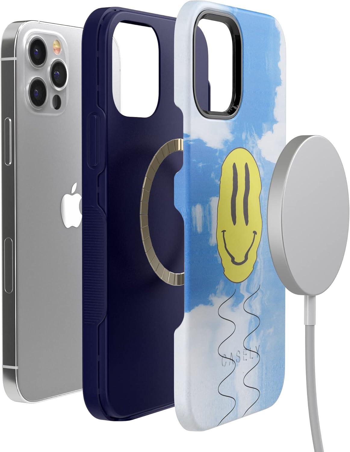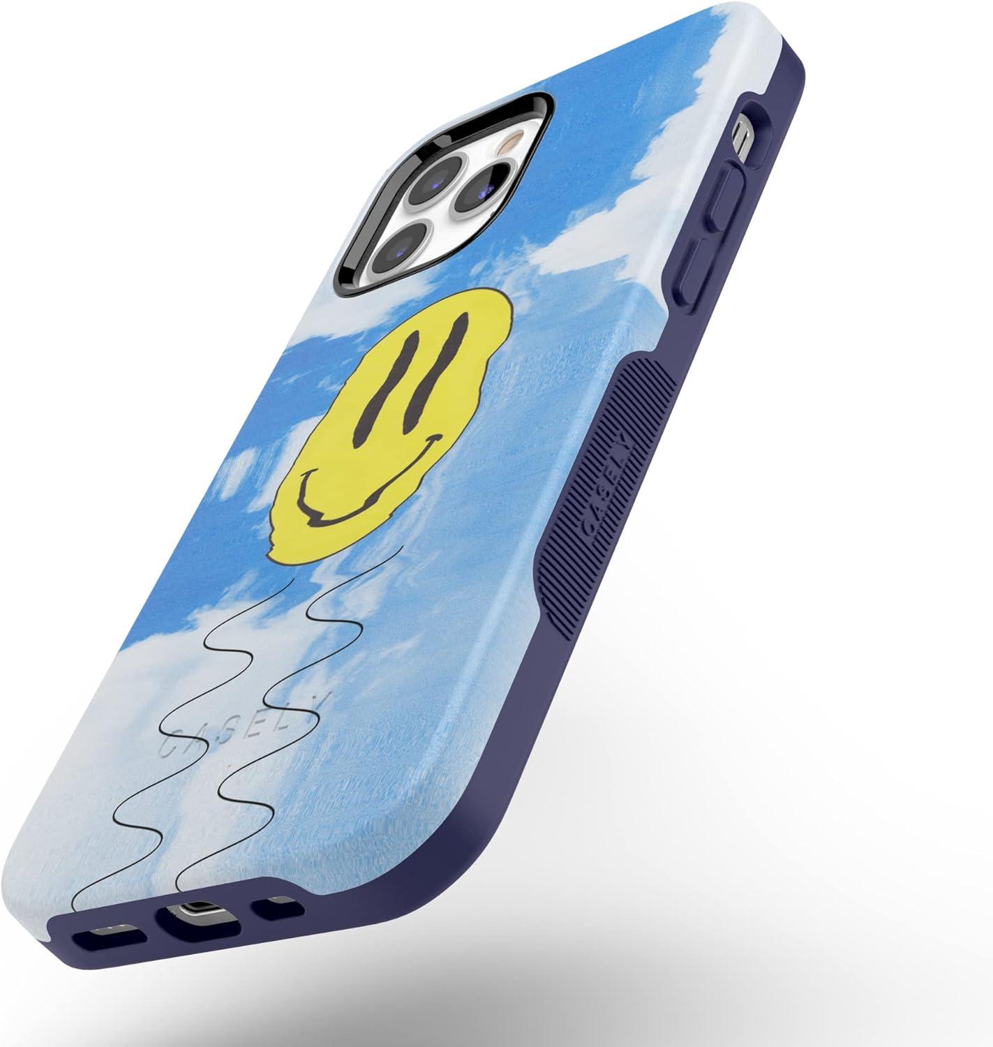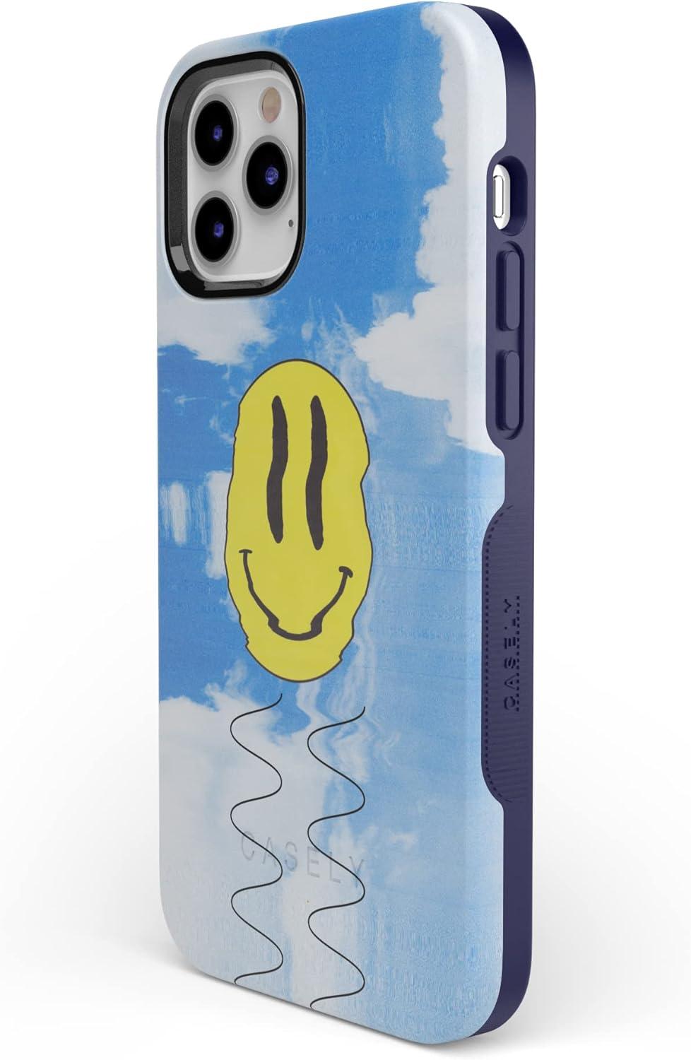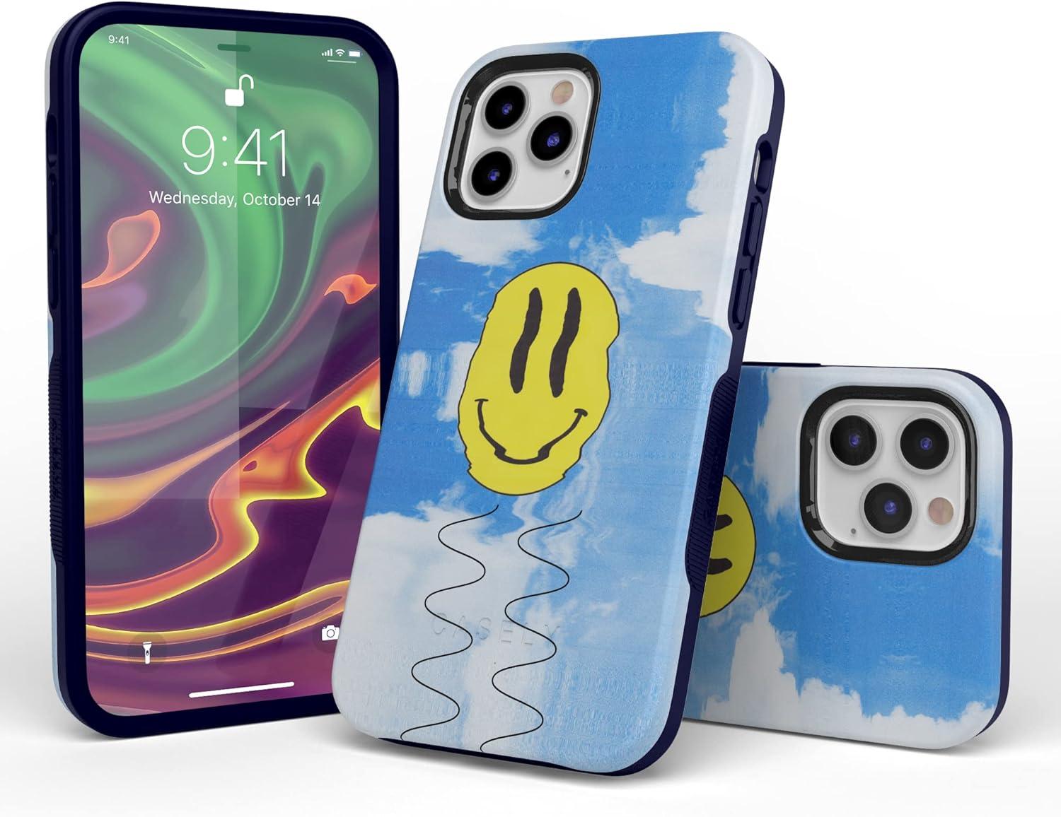 Casely iPhone 12 Pro Max Case | Denim Cowgirl | Fun on Weekdays | Compatible with MagSafe | Bold Protective Case Design(On Cloud Nine | Glitch Smiley Face)