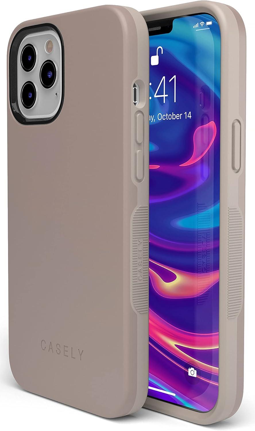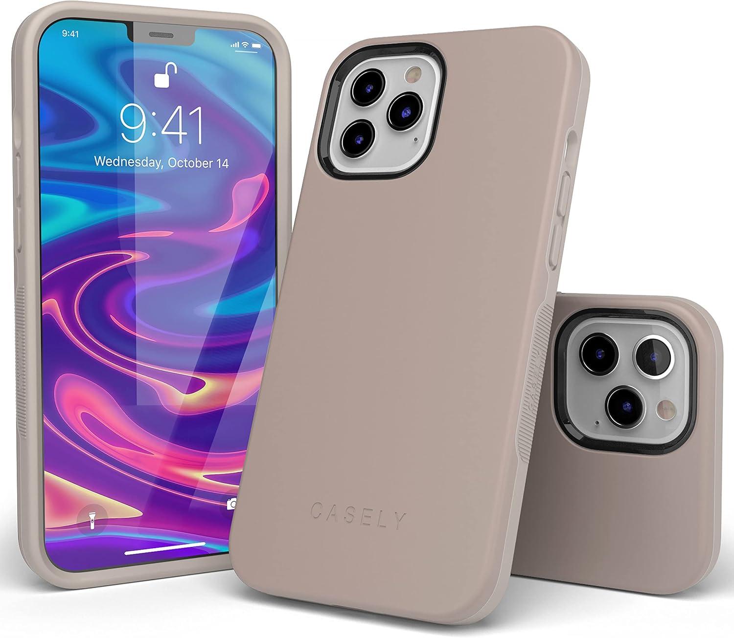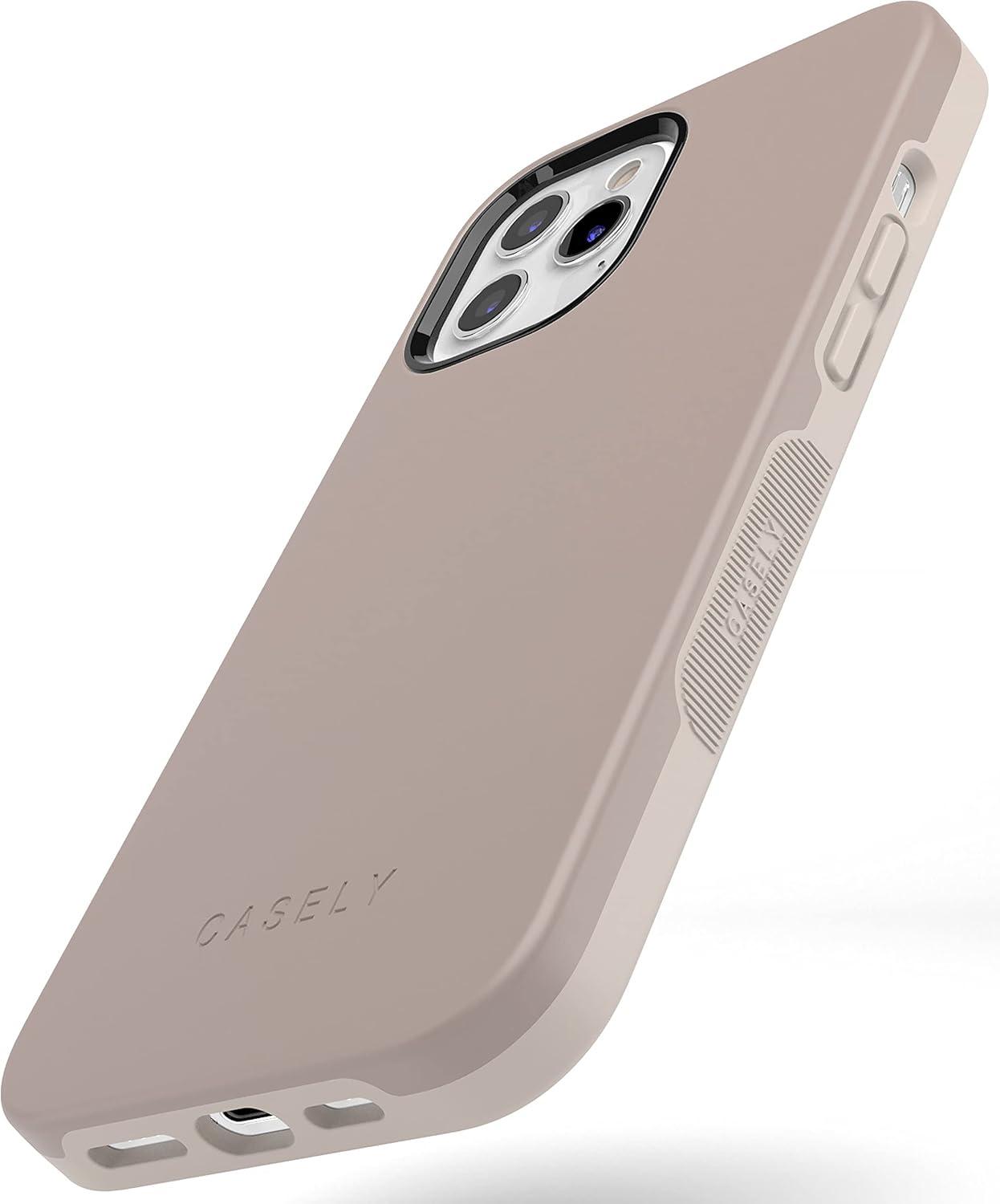 Casely iPhone 12 Pro Max Case | Denim Cowgirl | Fun on Weekdays | Compatible with MagSafe | Bold Protective Case Design(Taupe on Nude | Solid Beige Color Minimalist)