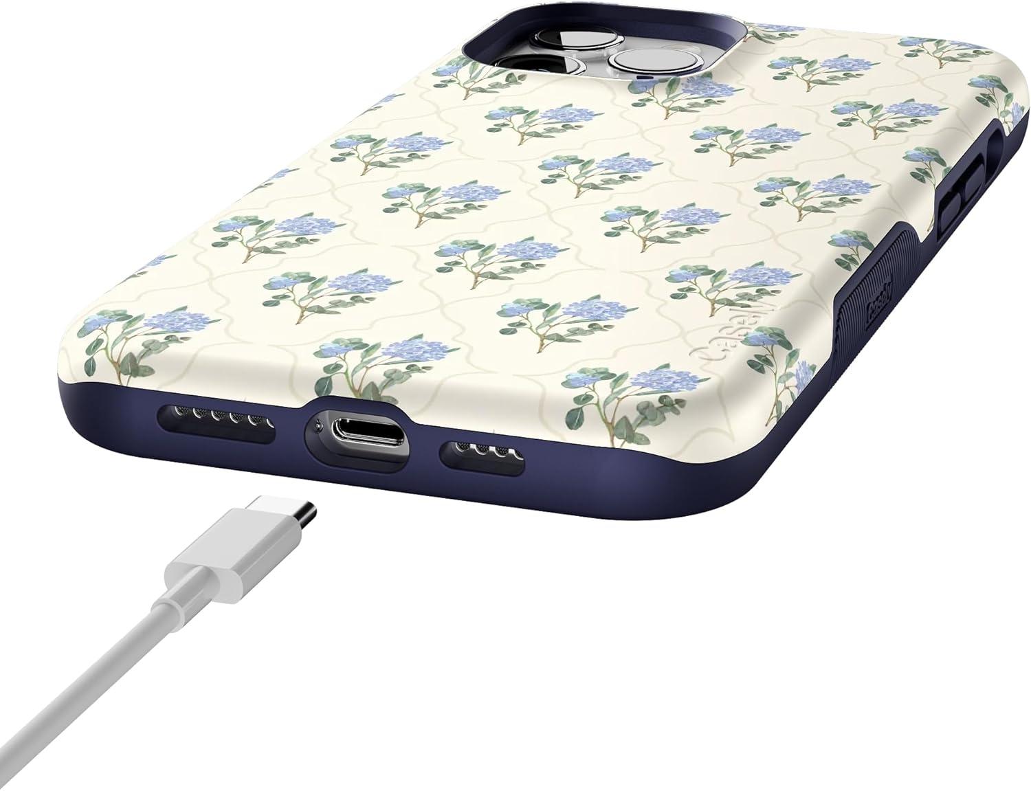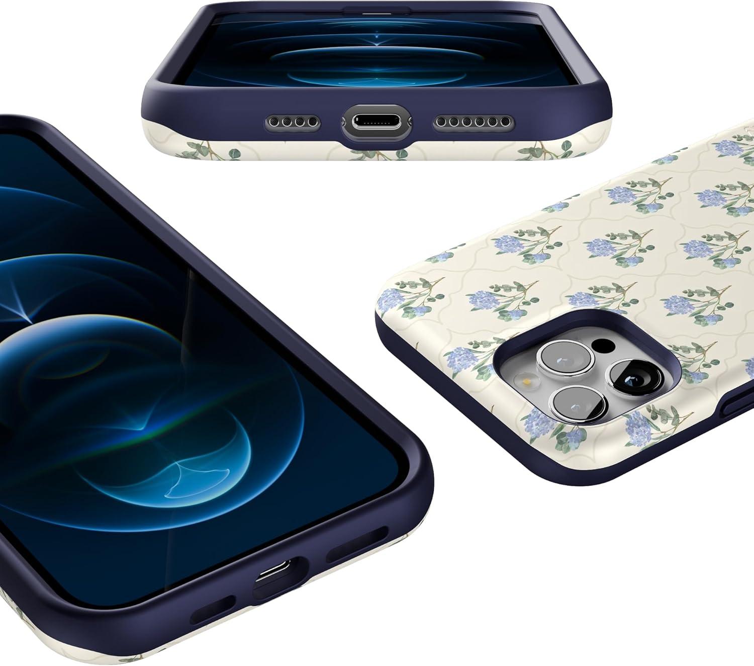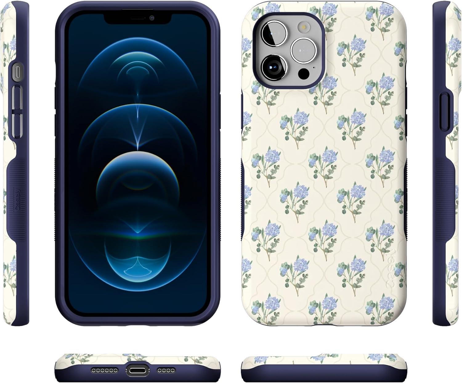 Casely iPhone 12 Pro Max Case | Denim Cowgirl | Fun on Weekdays | Compatible with MagSafe | Bold Protective Case Design(Vintage Garden | Blue Hydrangea)
