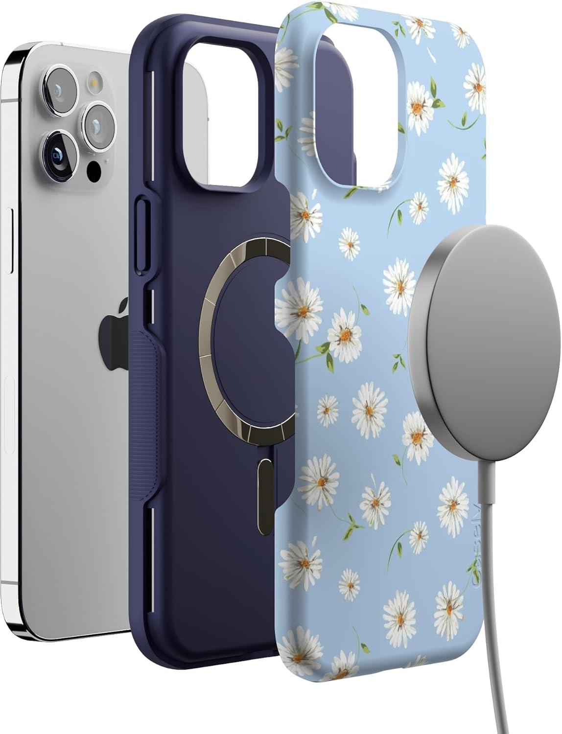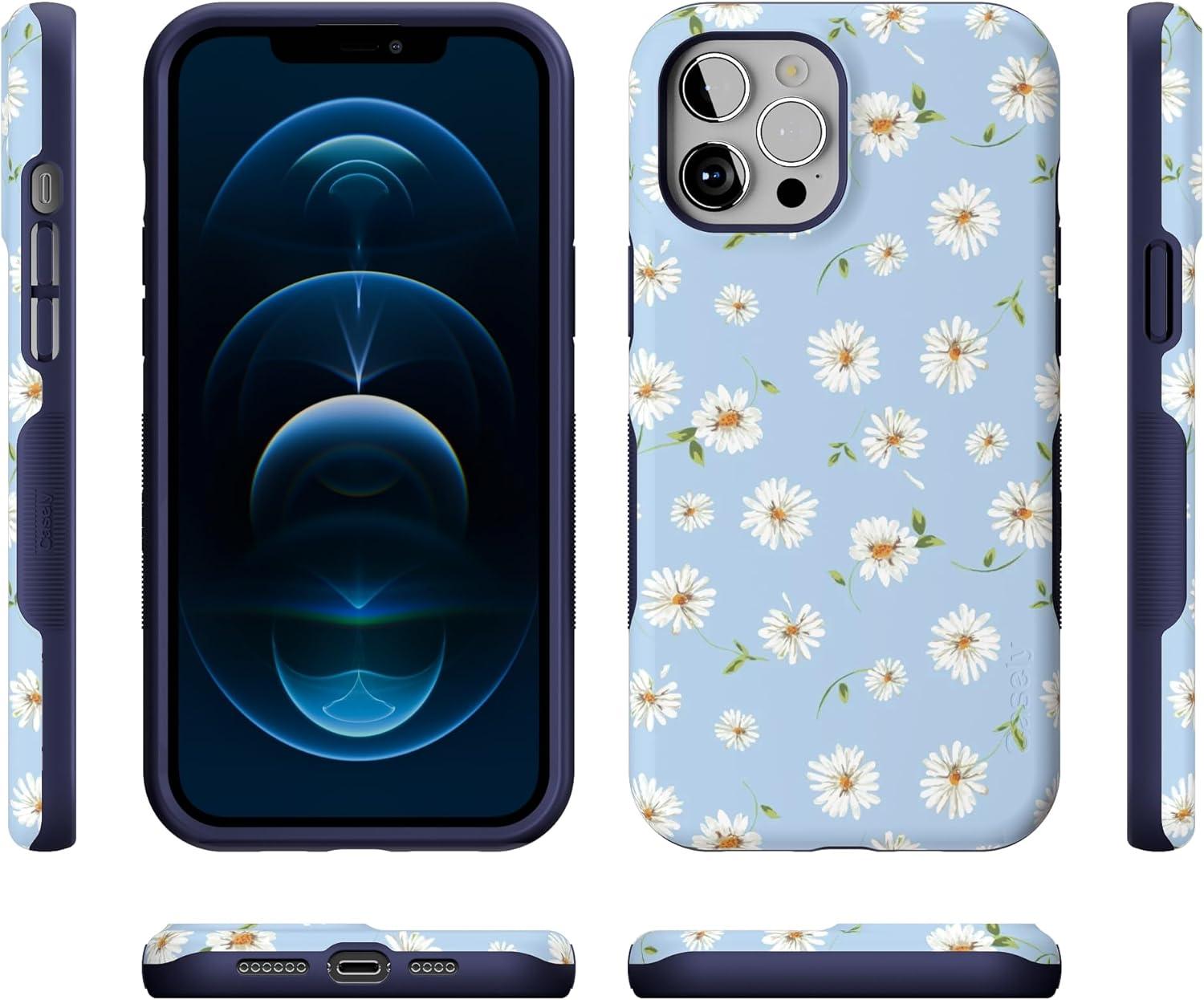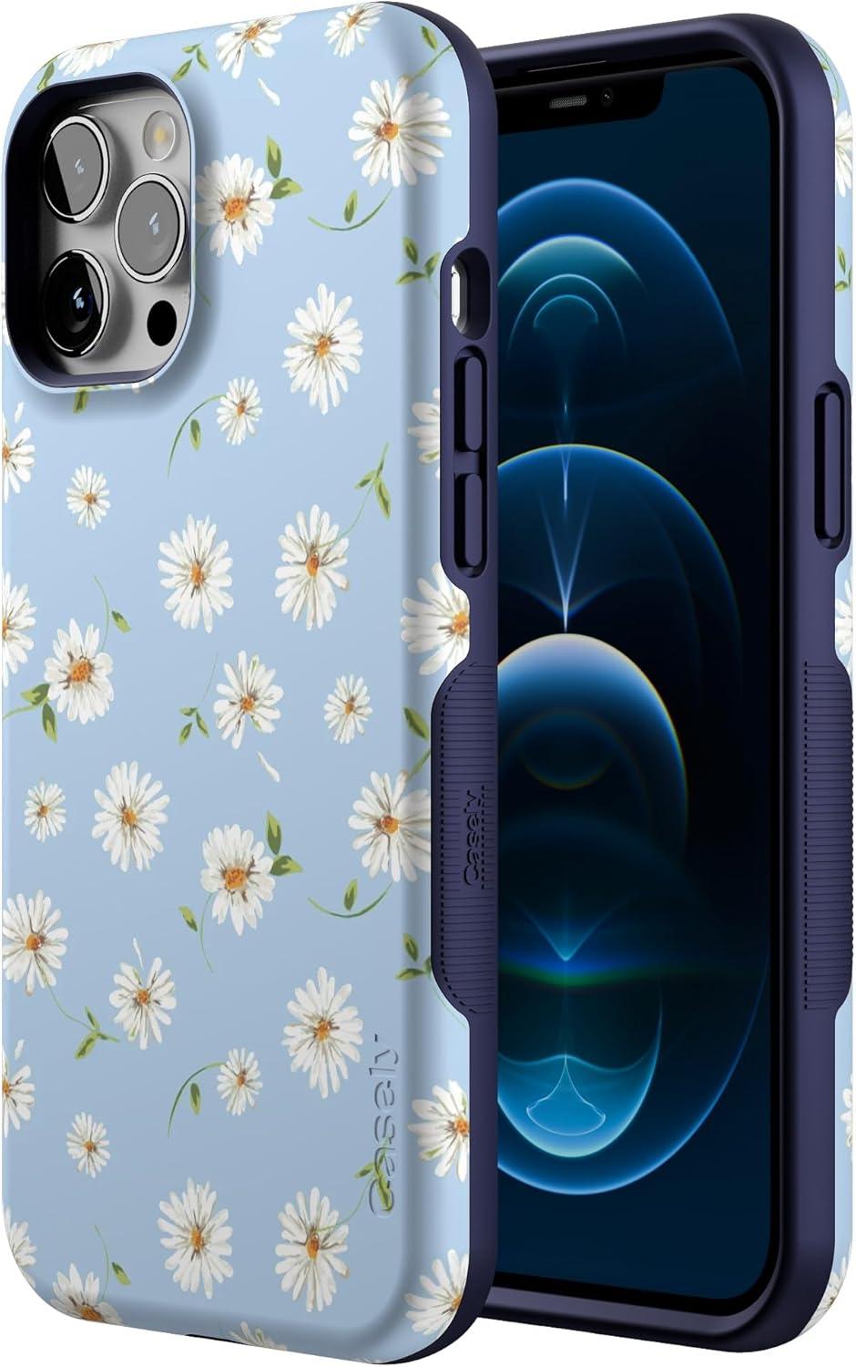 Casely iPhone 12 Pro Max Case | Mystic Meadow | Green Gardens | Bold Protective Design | MagSafe Compatible Design(Daisy Daydream | Baby Blue Floral)