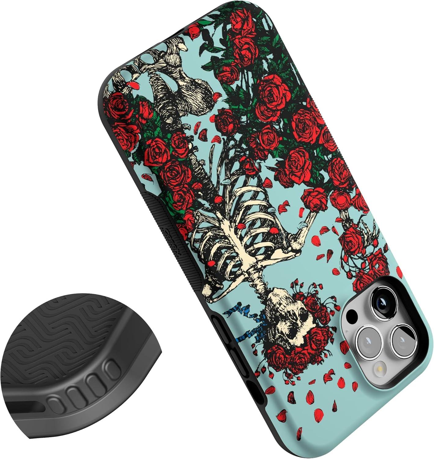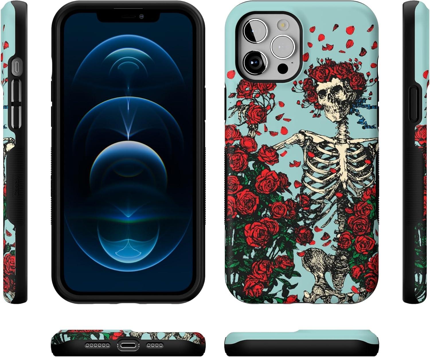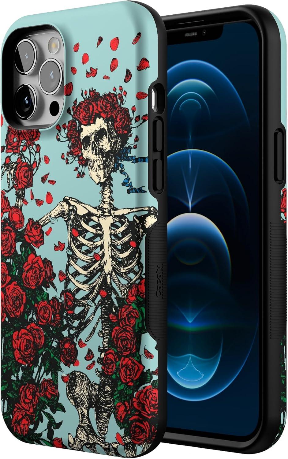 Casely iPhone 12 Pro Max Case | Mystic Meadow | Green Gardens | Bold Protective Design | MagSafe Compatible Design(Forever Grateful | Grateful Dead Skeleton Floral)