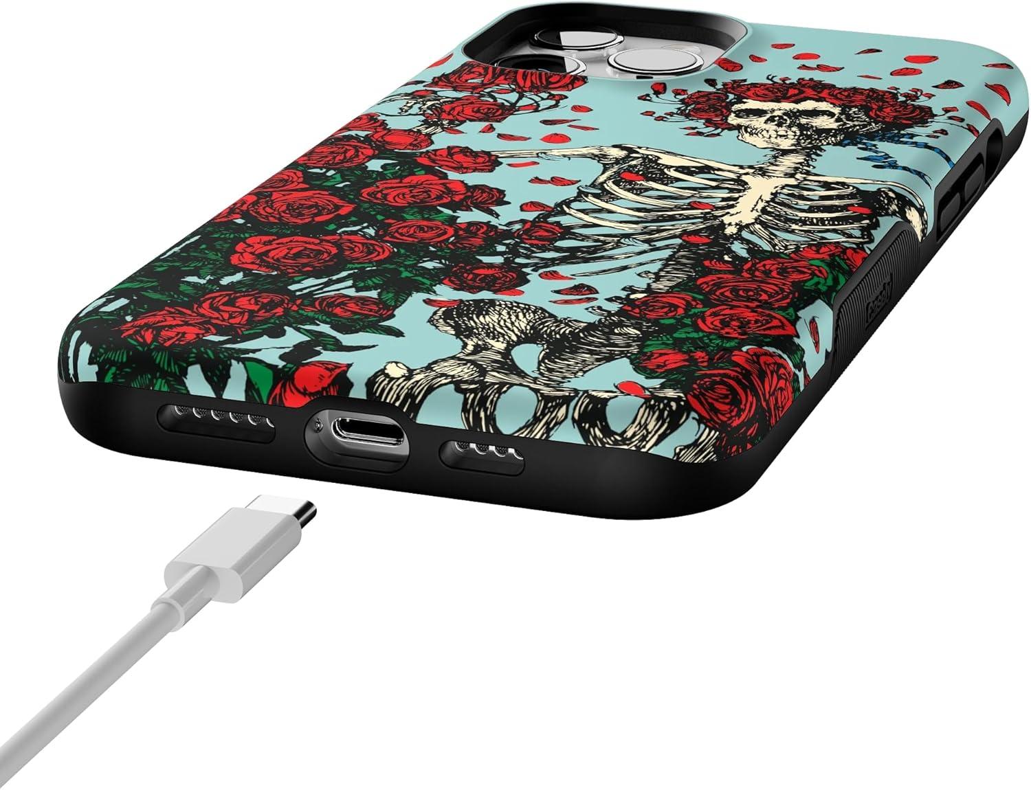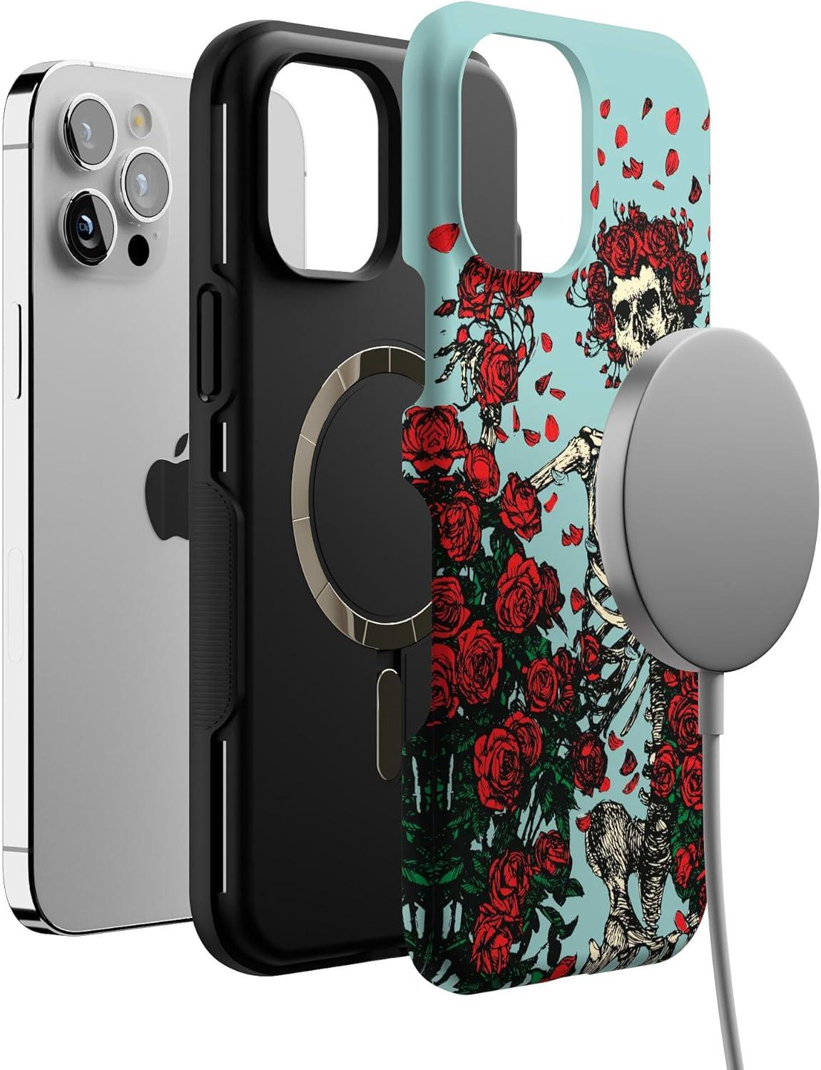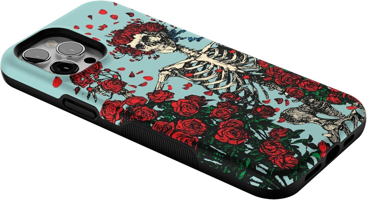 Casely iPhone 12 Pro Max Case | Mystic Meadow | Green Gardens | Bold Protective Design | MagSafe Compatible Design(Forever Grateful | Grateful Dead Skeleton Floral)