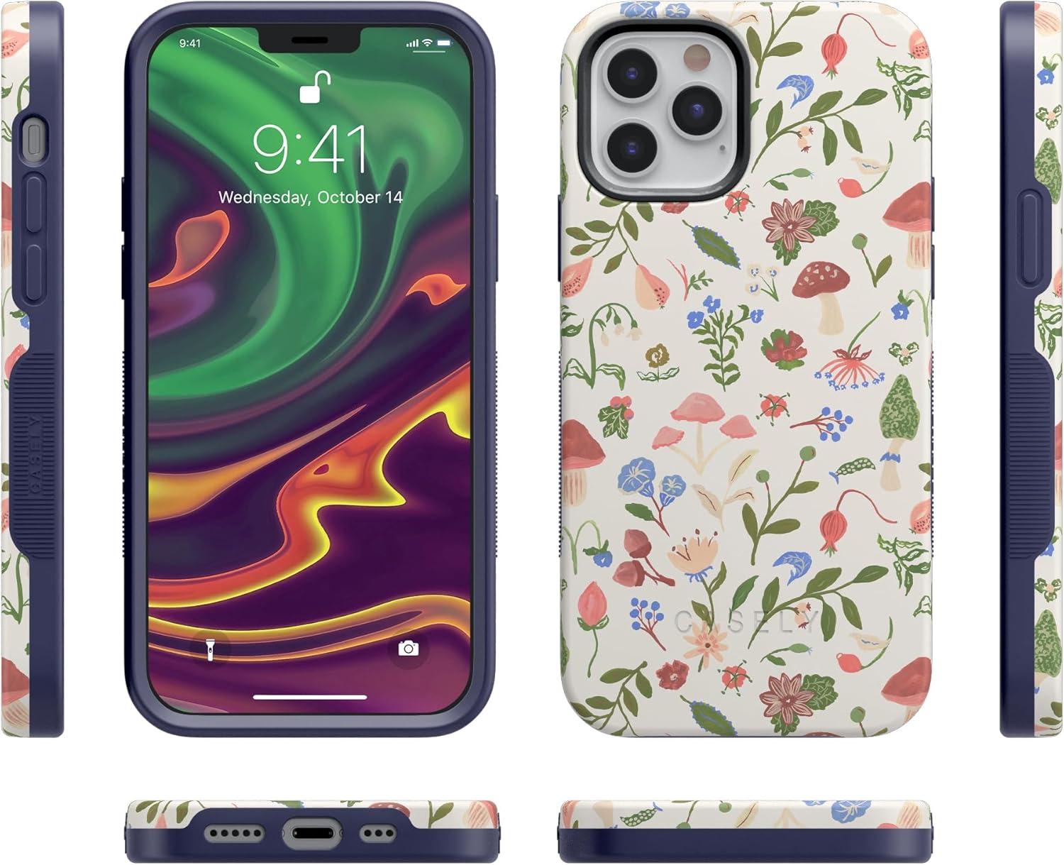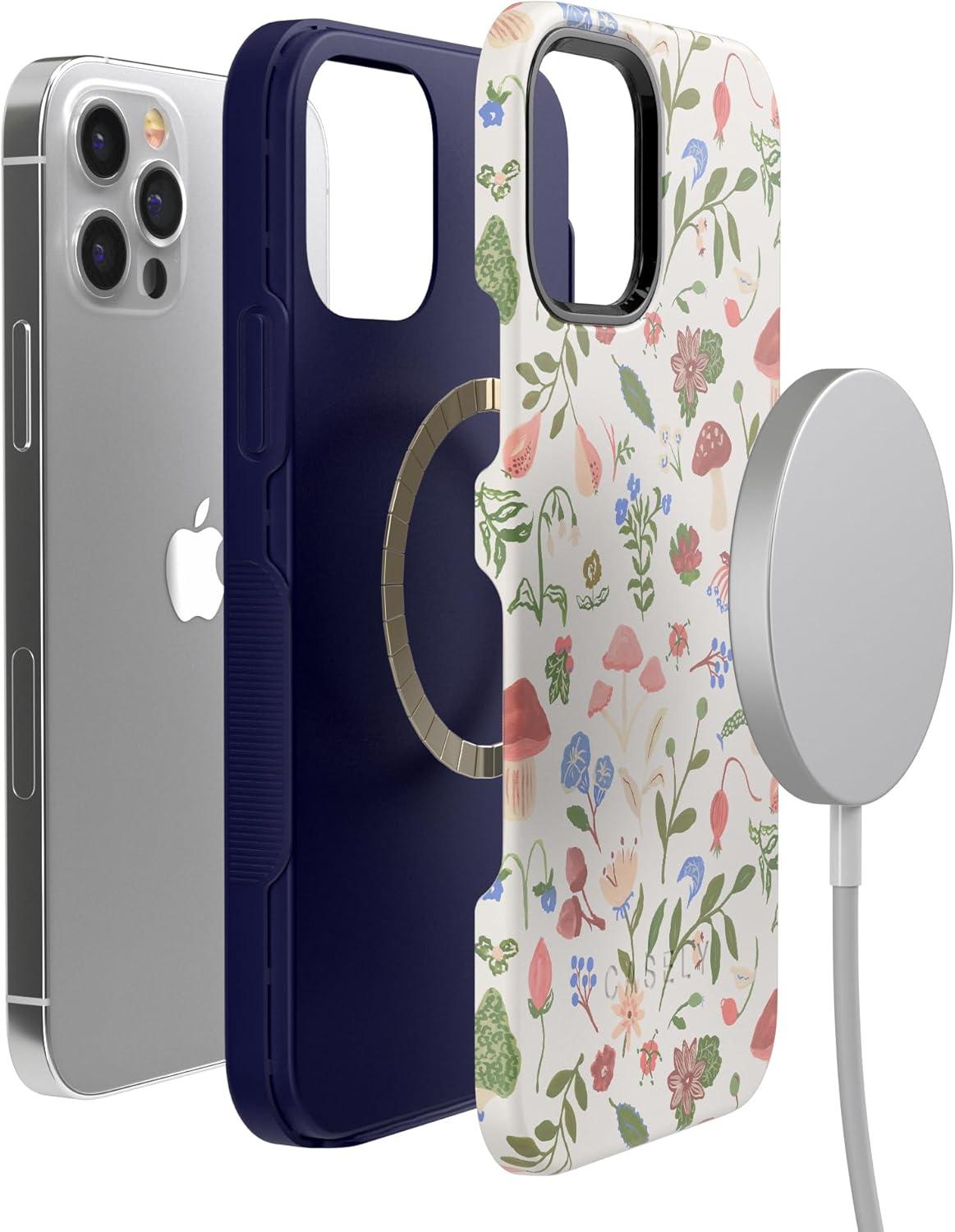 Casely iPhone 12 Pro Max Case | Mystic Meadow | Green Gardens | Bold Protective Design | MagSafe Compatible Design(Garden Party | Mushroom Floral)