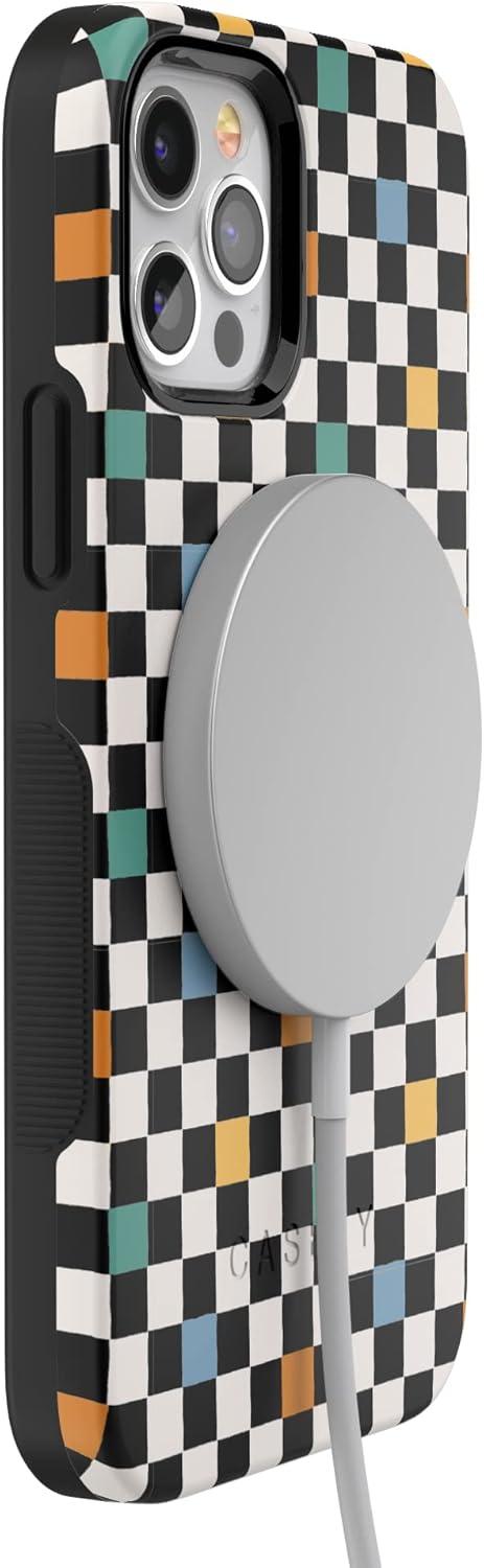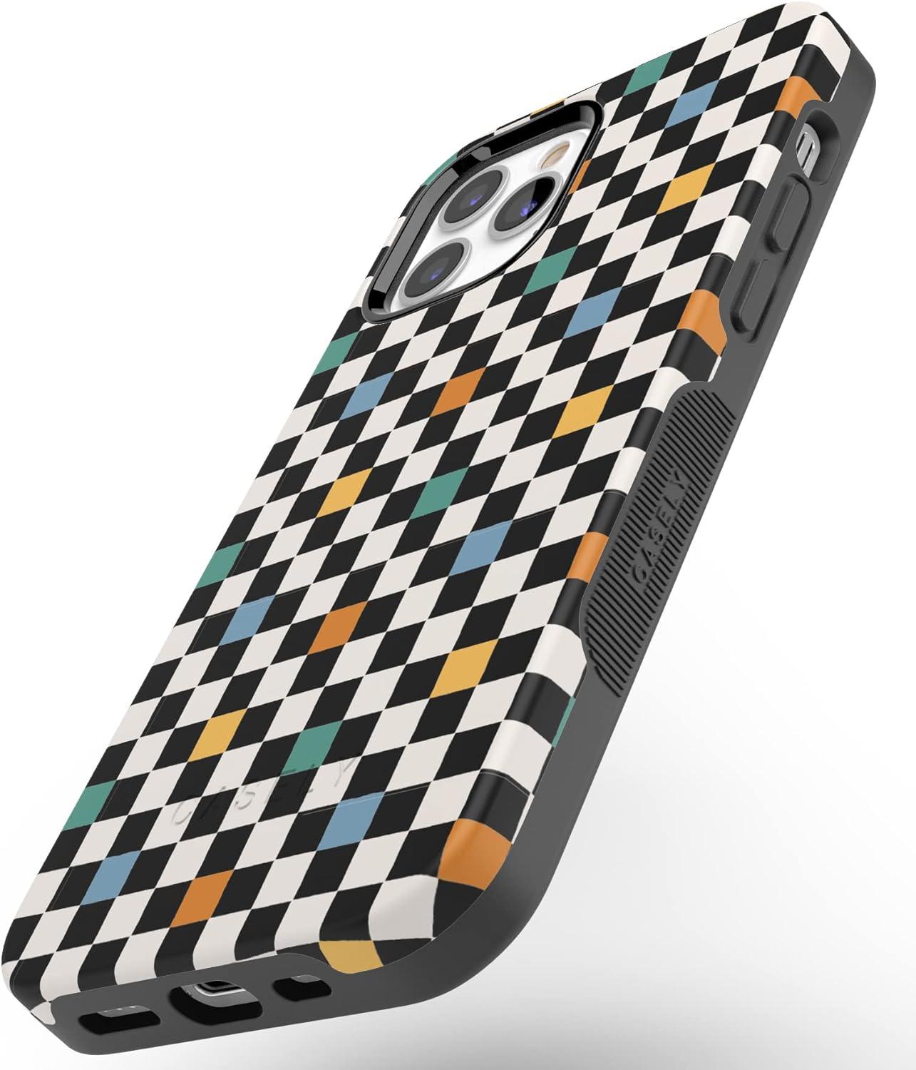 Casely iPhone 12 Pro Max Case | Mystic Meadow | Green Gardens | Bold Protective Design | MagSafe Compatible Design(Old Skool | Retro Checkerboard)