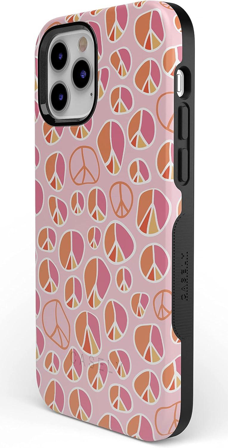Casely iPhone 12 Pro Max Case | Mystic Meadow | Green Gardens | Bold Protective Design | MagSafe Compatible Design(Peace Out | Groovy Peace Sign)